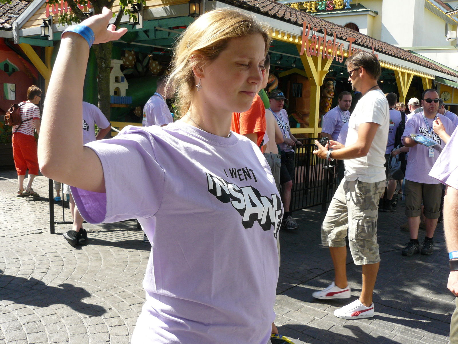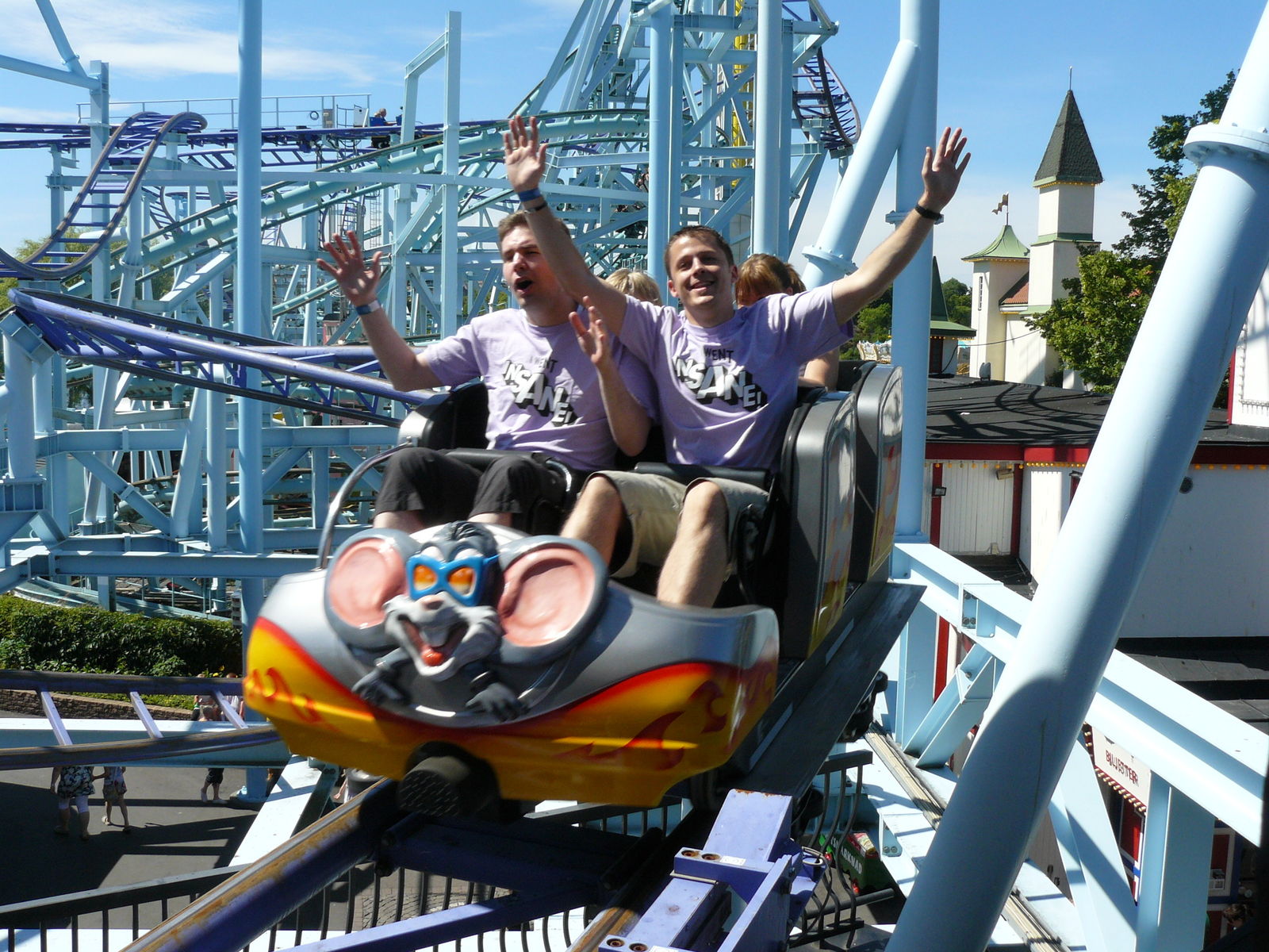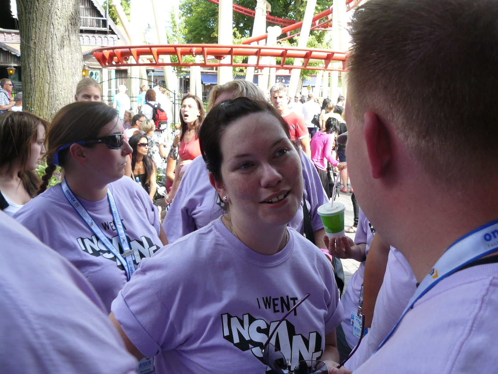 Die Verantwortlichen ließen sich auch nicht Lumpen und hatten noch ein paar Überraschungen parat. So wurde der heutige Tshirt day gleich in Insane- Shirts abgehalten, die uns vom Park geschenkt wurden und die es in dieser Art auch nicht im Park zu kaufen gibt.