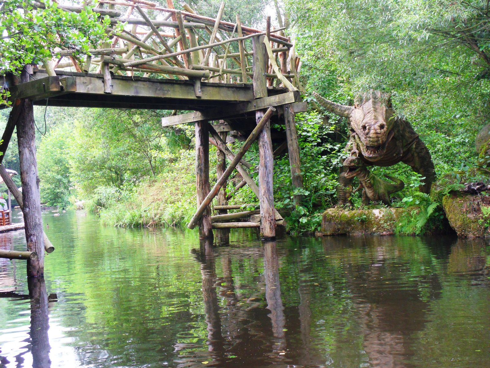 Einer der älteren Attraktionen ist die Floßfahrt über einen See, vorbei an Dinosaurieranimatronics. Diese sind schon etwas älteren Baujahres, doch immer noch gut in Schuss.