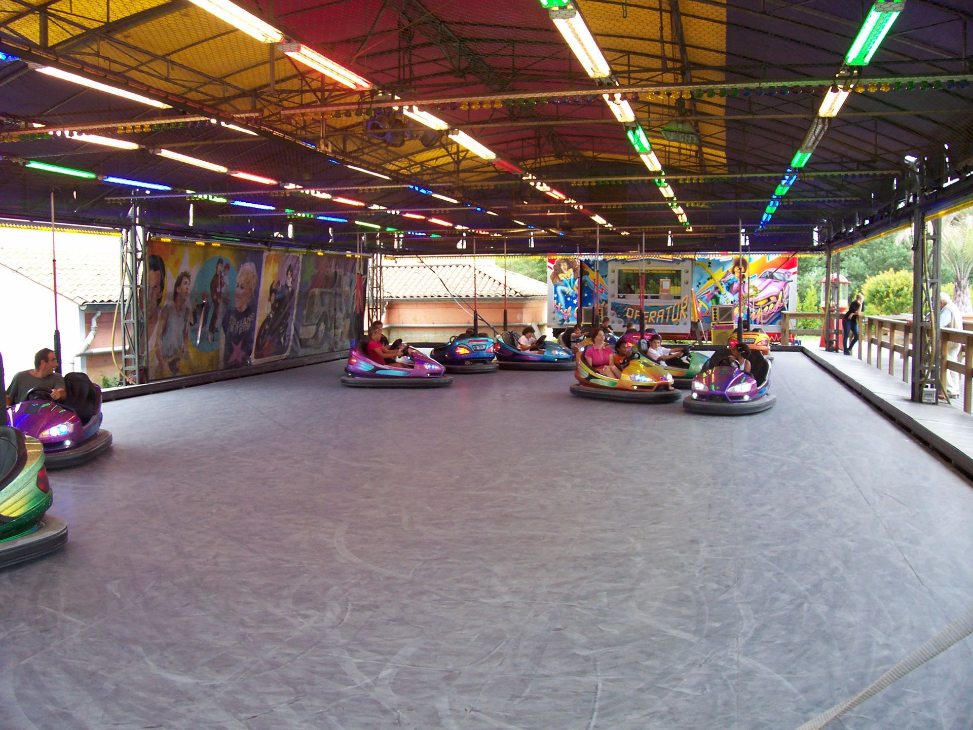 ...zu den anderen Fahrgeschäften. Da es inzwischen angefangen hatte zu regnen war der Autoscooter natürlich gut besucht.