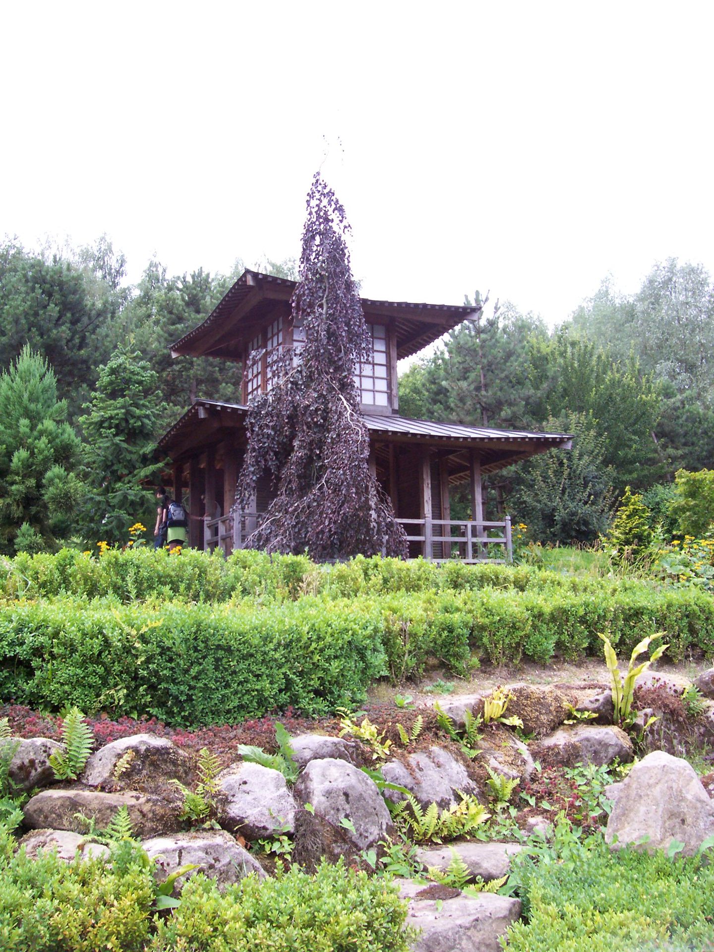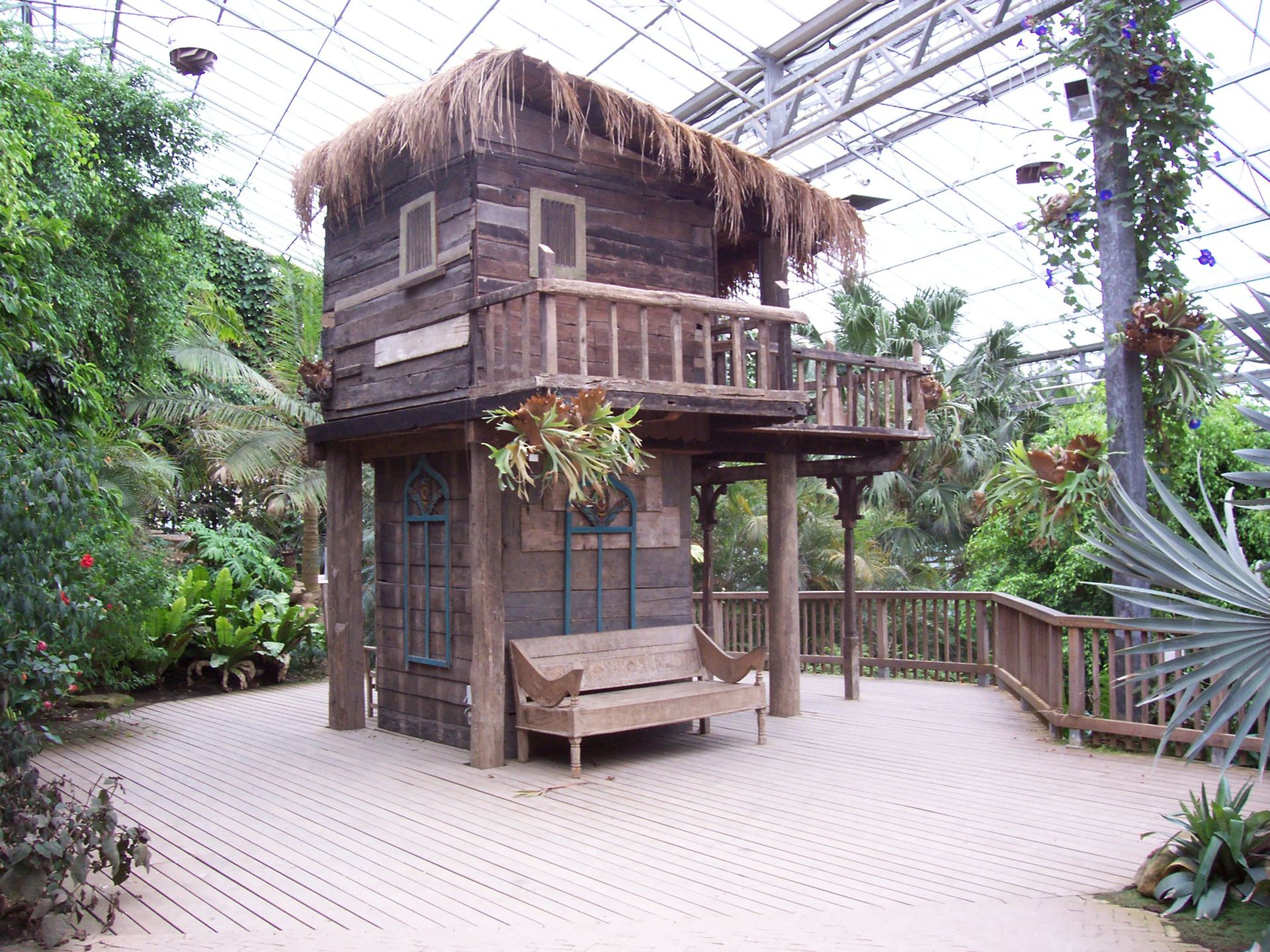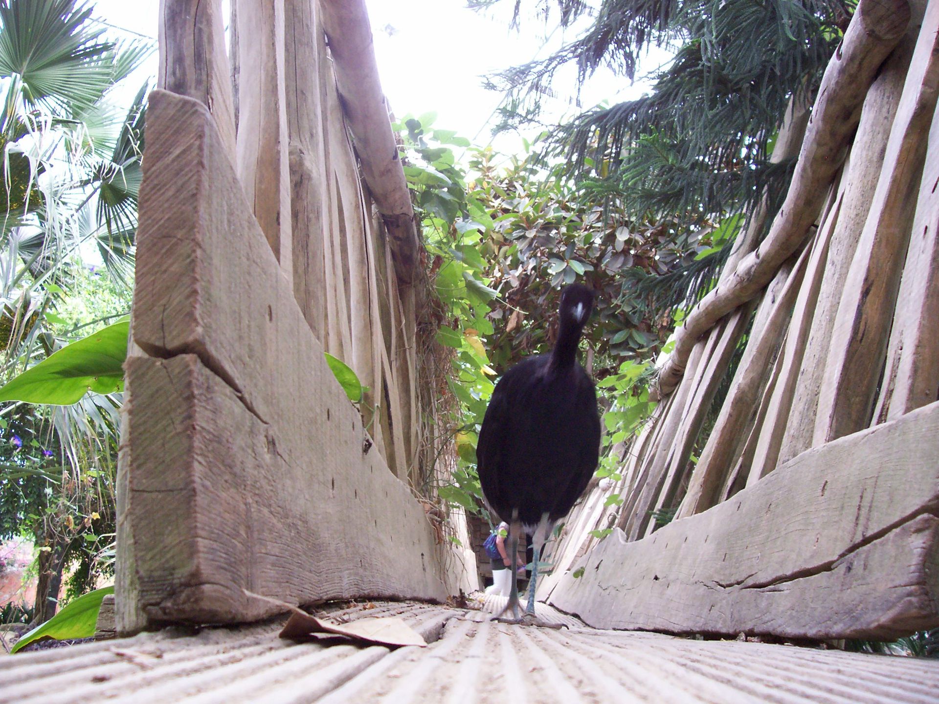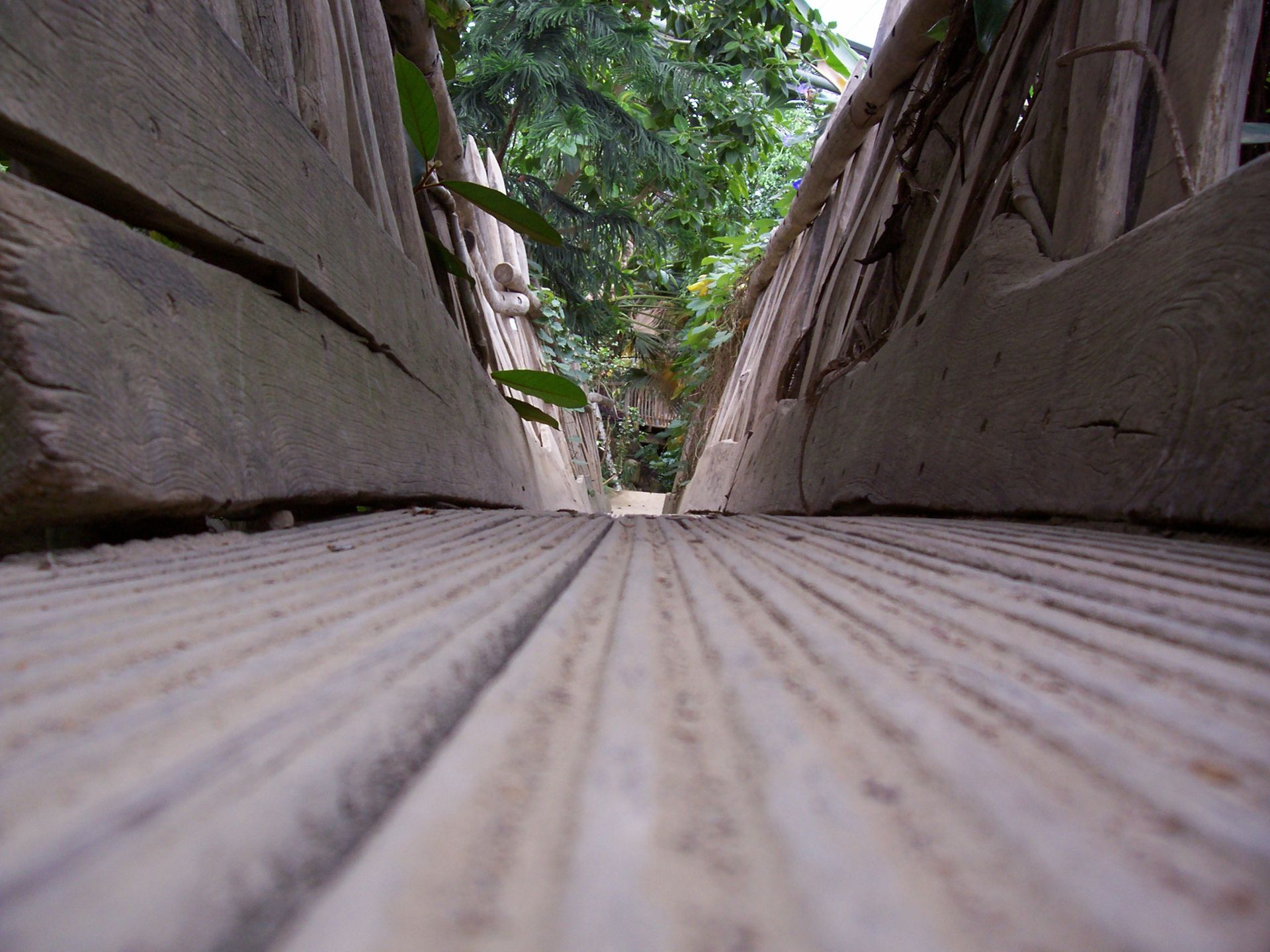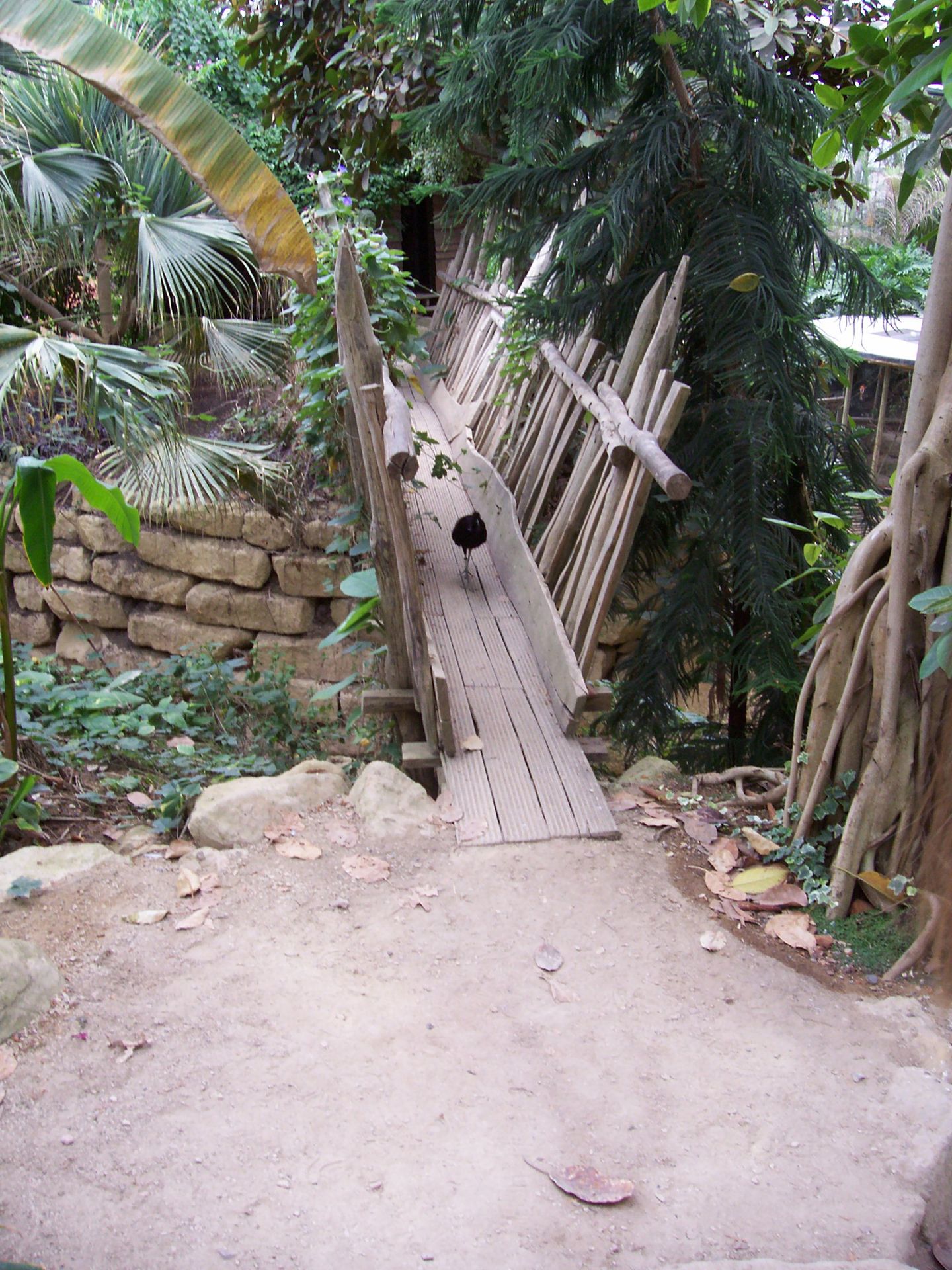 Um zum Ausgang der Tropenhalle zu gelangen muss man entwerder noch einige Treppen steigen oder über diese schmale Holzbrücke gehen.