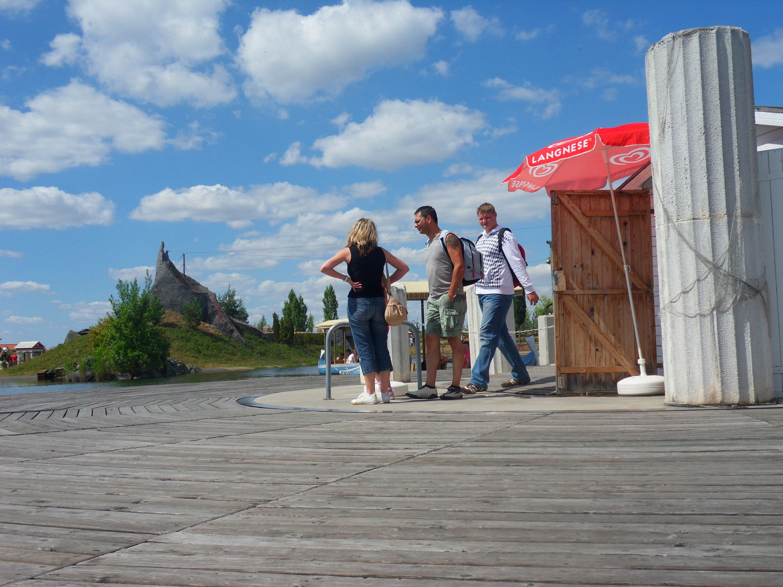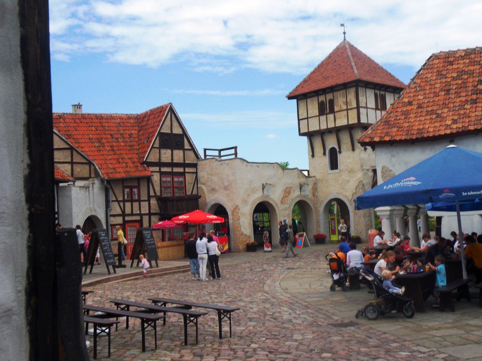 Ein paar Schritte weiter gibt es eine Goldwaschstation. Dahinter schließt sich gleich das mittelalterliche Dorf an. Man könnte das Dorf auch als schön thematisierte Pommesbude bezeichnen.