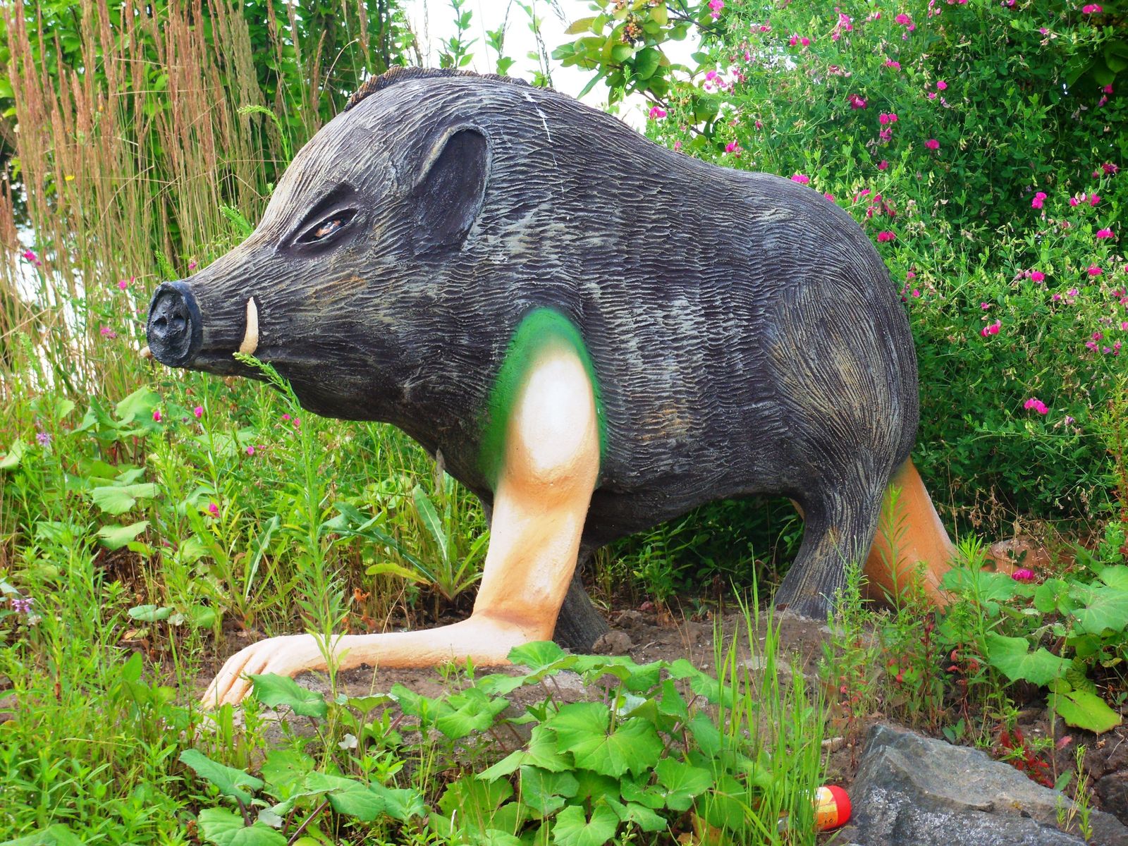 Dieses Schwein, wo du wissen wolltest was das ist, ist ein Teil einer Sage. Die Mannen des Odysseus wurden auf den Insel Aiaia von der Zauberin Circe (oder auch Zirze oder Kirke) in Schweine verwandelt. Das stellt diese Szene also gerade dar - irgendwie.