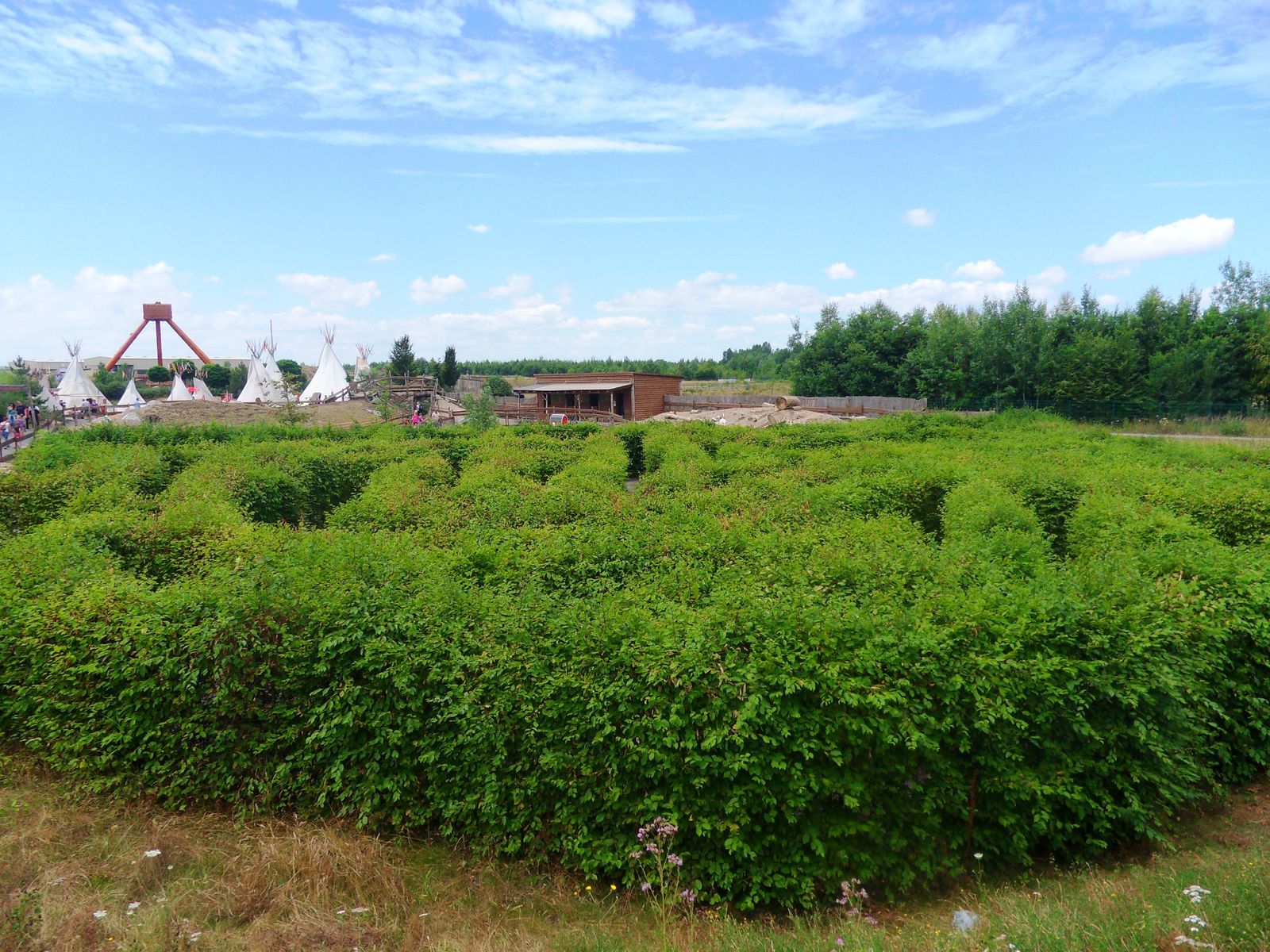 Im Hintergrund konnte man schon unser nächstes Ziel erkennen: Die Prärie der Indianer. Die Zuwegung ist etwas umständlich zur Hälfte durch das Heckenlabyrinth.