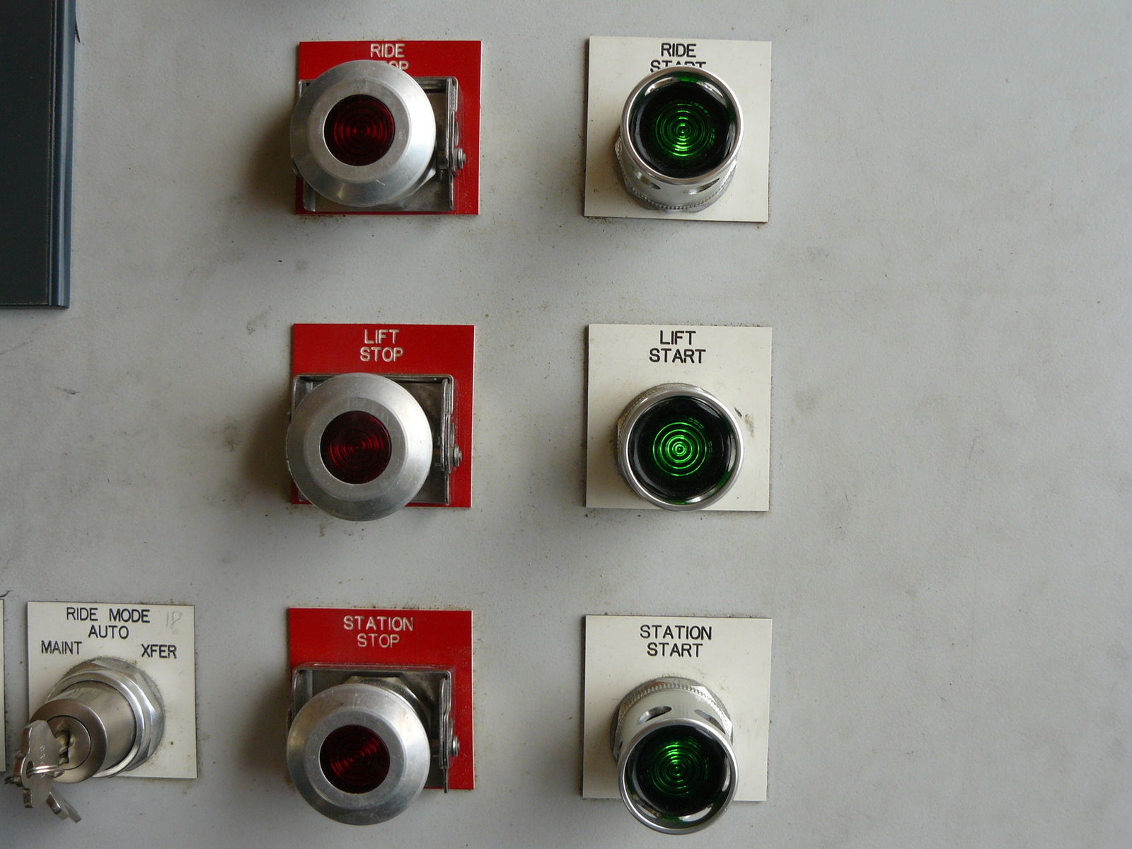 Ein- und Ausschalter der Motoren für die Bahn (Blockbremse und Transfergleis), den Kettenlift und die Antriebe in der Station.