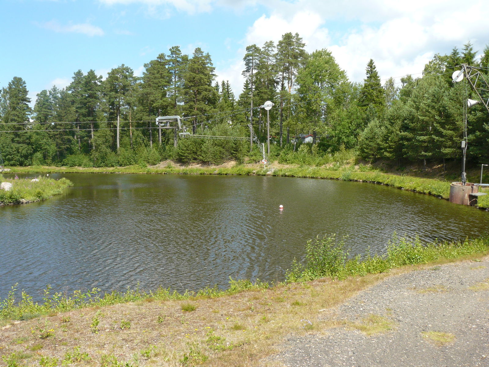 Die Wasserskianlage des Parks. Die meisten Fahrer, die es überhaupt bis hier geschafft hatten, traten von hier den Rückweg zu Fuß an.
