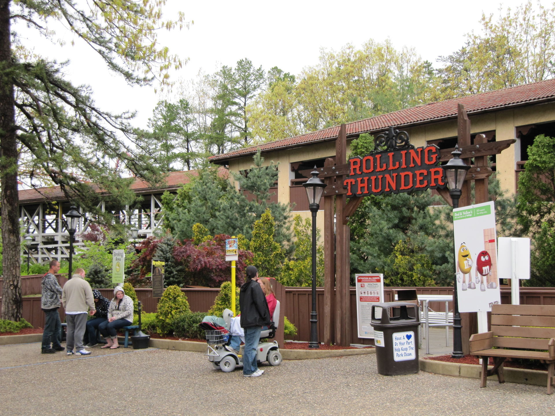 Anschließend war dann der direkte Nachbar Rolling Thunder an der Reihe. Da nichts los war, konnte man auch hier durchgehen und direkt einsteigen. Leider war deshalb nur eine Seite geöffnet. Im gesamten Park musste man, wenn überhaupt auf den Zug warten.