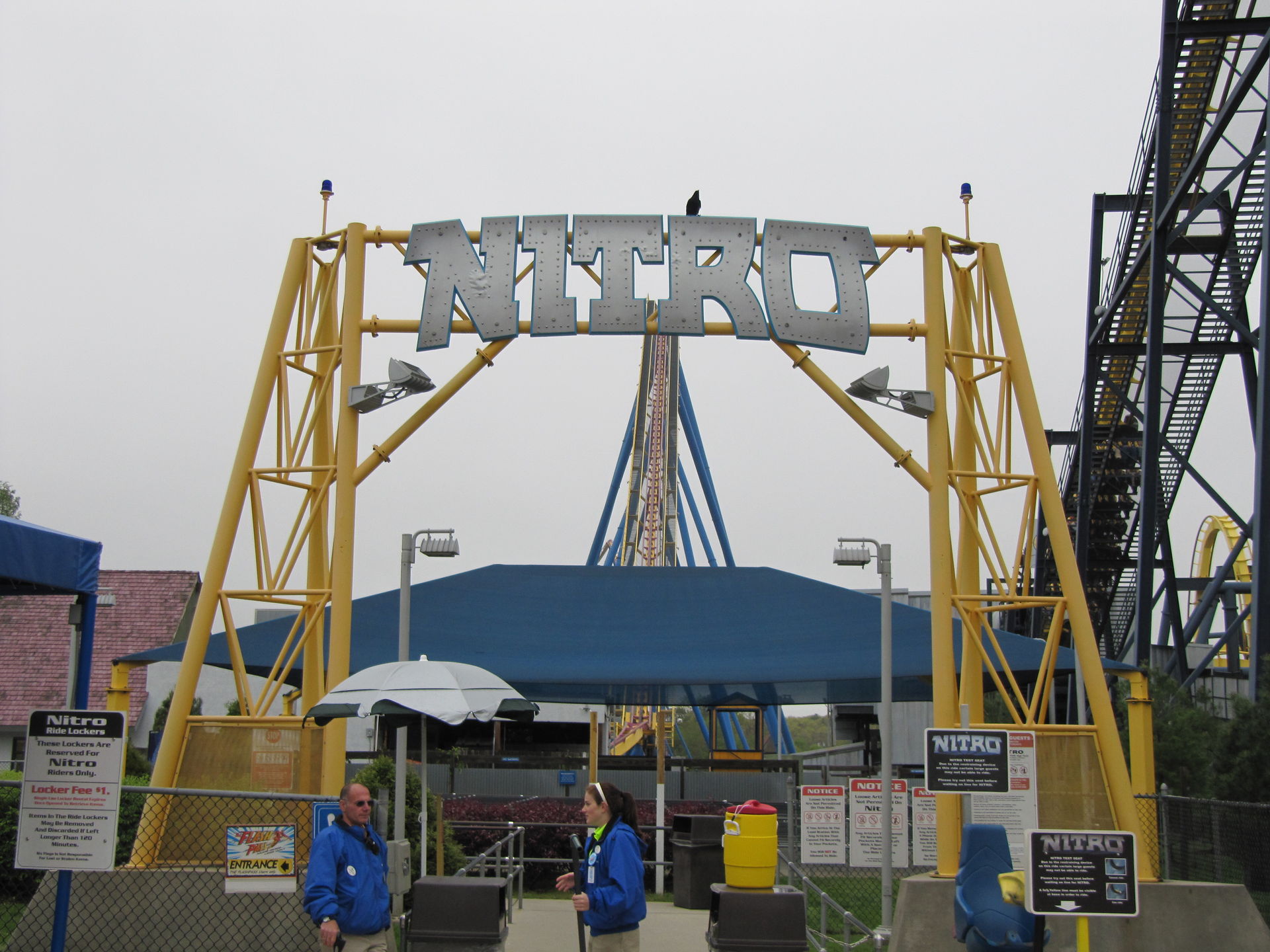 Jetzt aber endlich zu Nitro. Da ich nur an Bahnen dieser Art bis dahin nur Silver Star kannte und die Bahn schon gut fand, war ich besonders gespannt auf die amerikanische Sorte. Auch hier wieder zur ersten Reihe durchgehen.