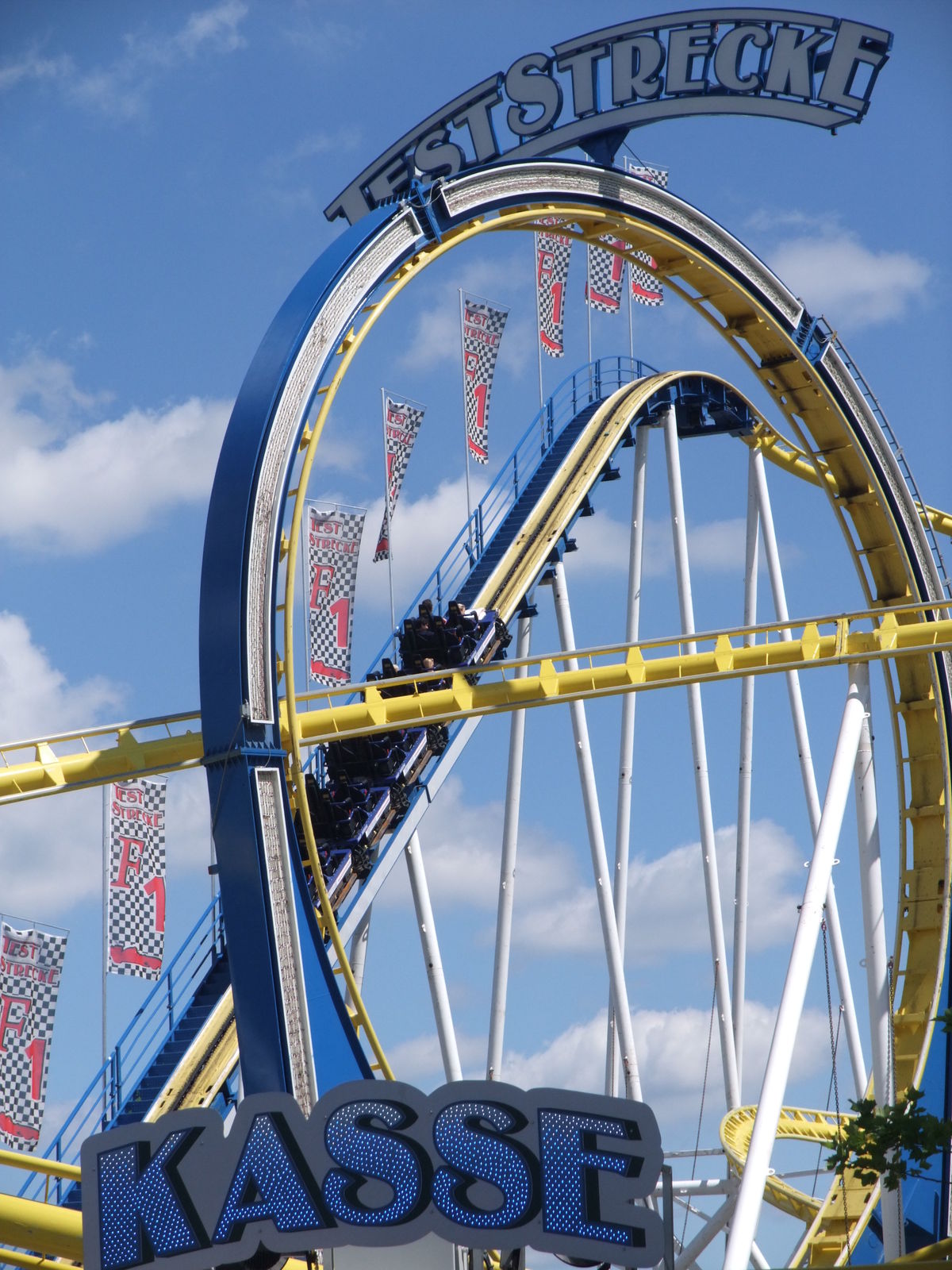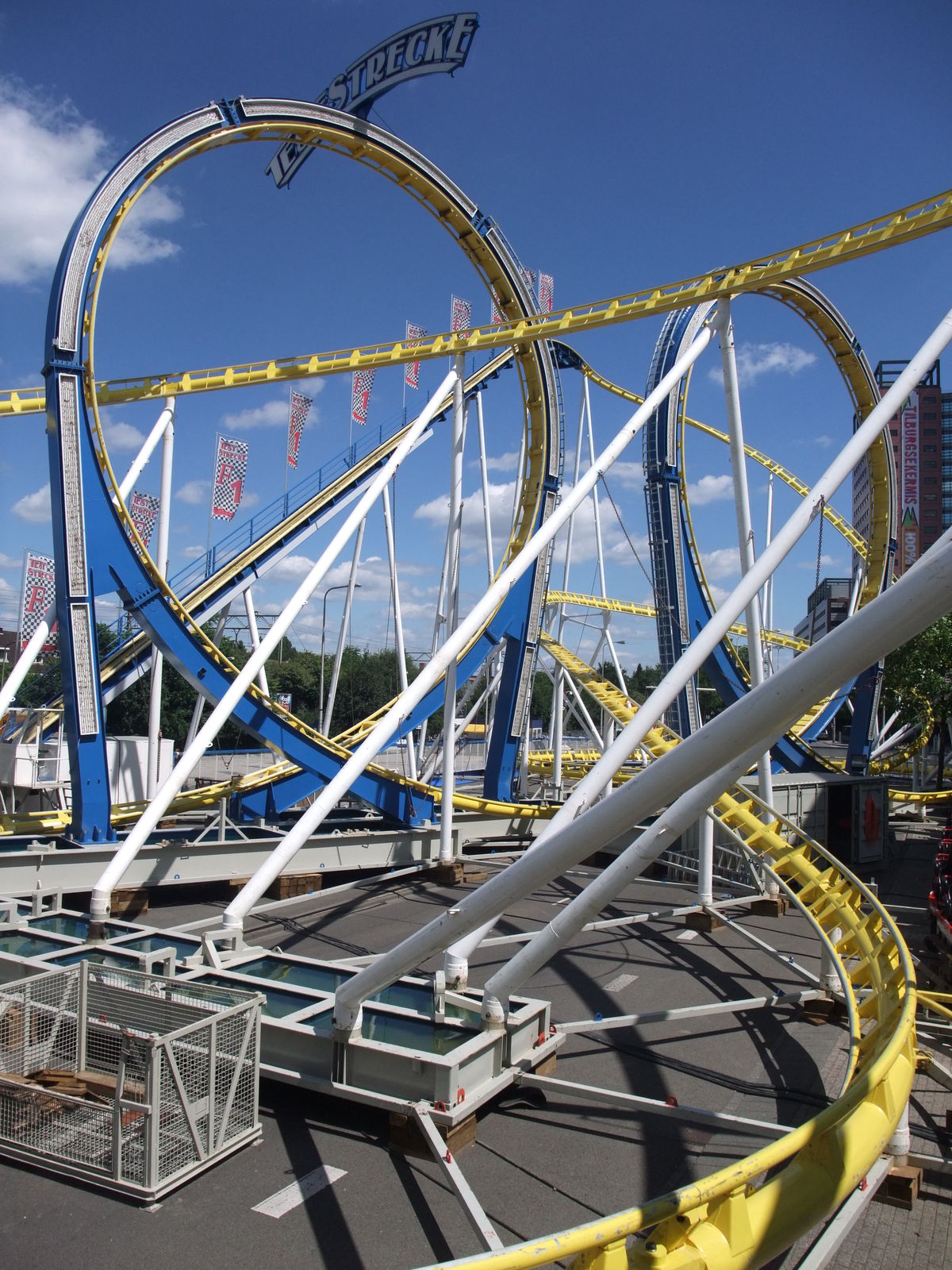 Bei schönstem Sommerwetter machten wir uns auf, um der Kirmes in Tilburg einen Besuch abzustatten. Da wir im Parkhaus Tivoli geparkt haben, welches sich direkt neben der Teststrecke befindet, fange ich mit meinem Bericht auch in der Mitte des Platzes an und arbeite mich zuerst Richtung Norden vor. Es sei zu erwähnen, dass ich hier nicht alle Attraktionen auflisten werde.