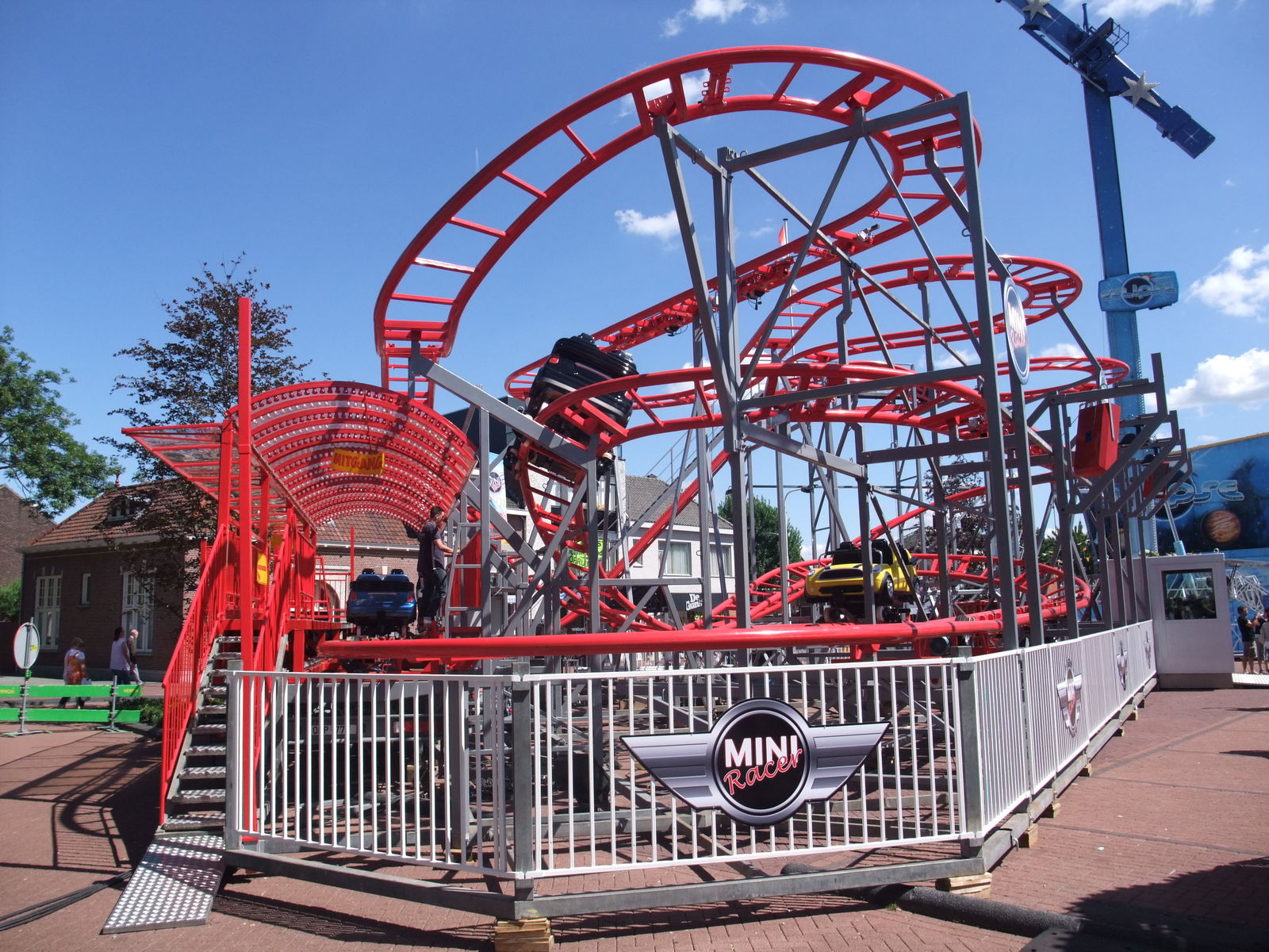 Eine optisch wirklich ansprechende kleine Familienachterbahn in einem schönen leuchtenden Rot. Die Einzelwagen sind hier als PKWs der Marke Mini gestaltet. Die Fahreigenschaften lassen aber leider zu wünschen übrig. Die Fahrt ist sehr ruppig und man hat einen schlechten Seitenhalt. Aber die Wagen sehen einfach toll aus!