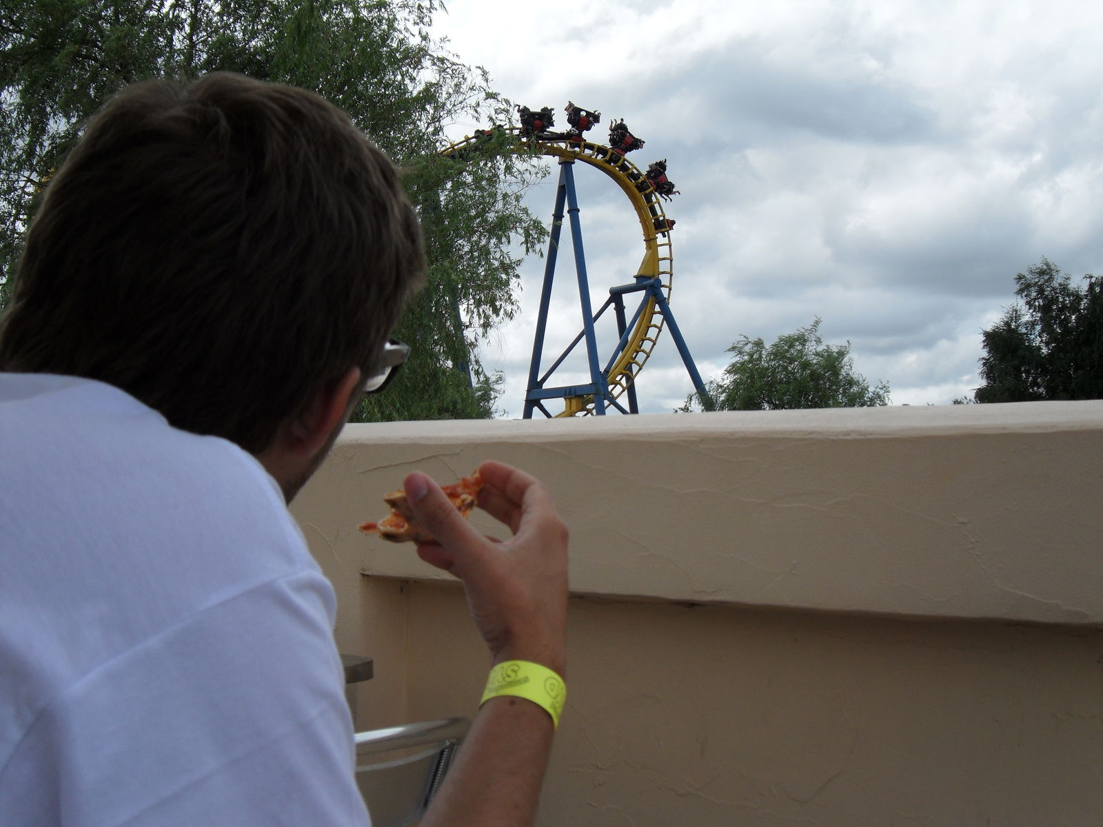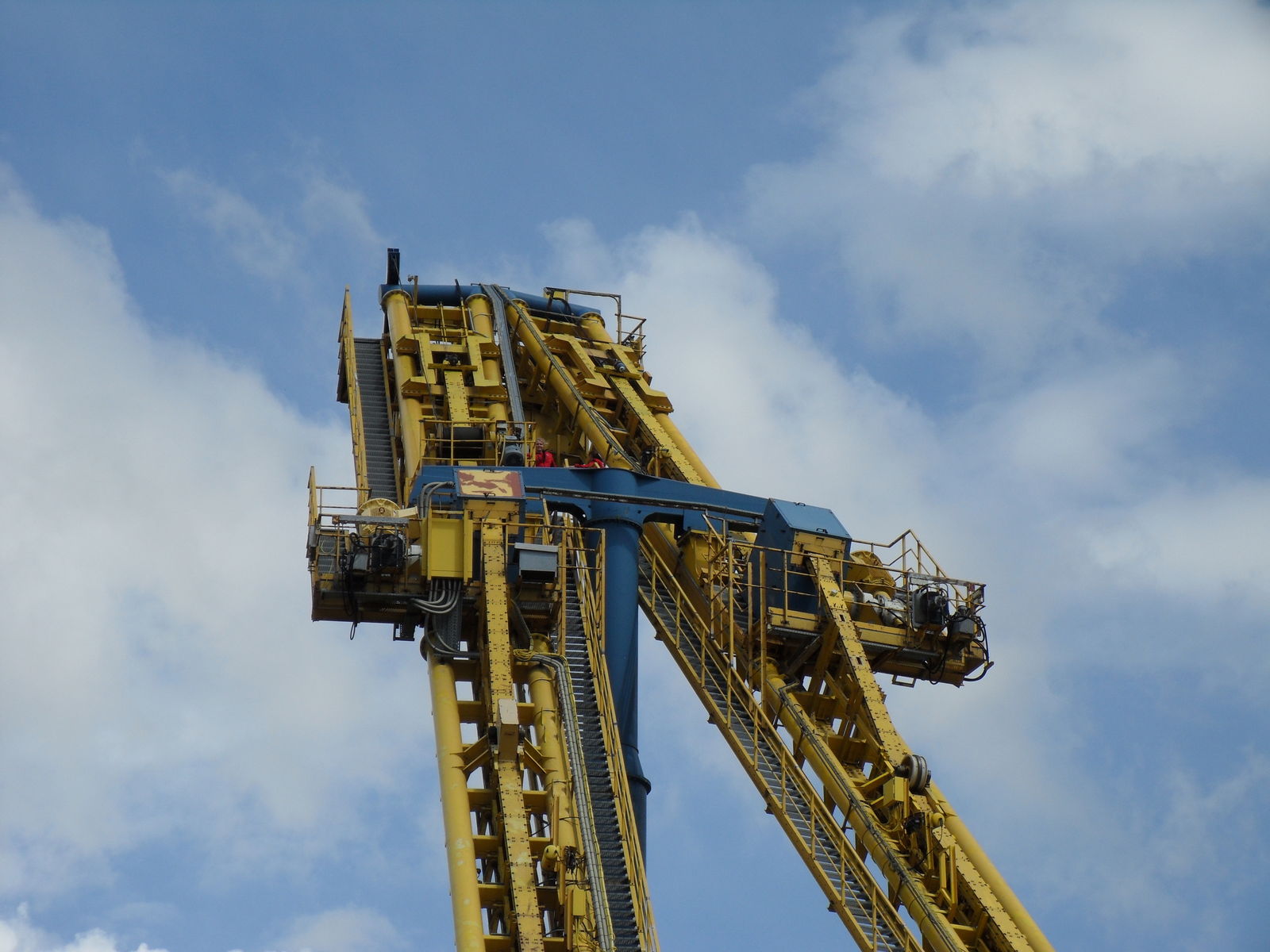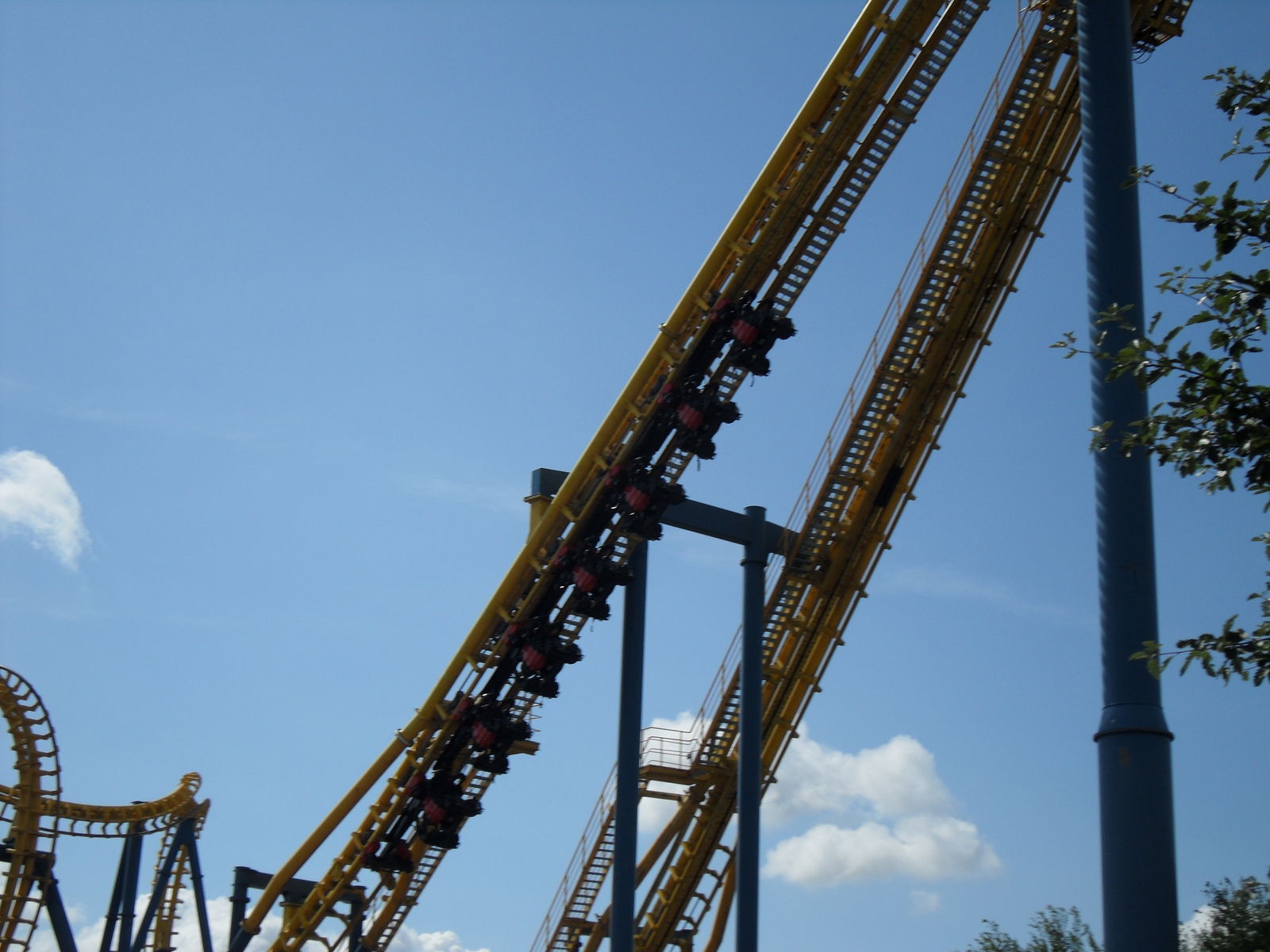 Um so ärgerlicher ist, dass es eine Fahrt nach uns einen Rollback gegeben hat. Aus irgendwelchen Gründen hatter Zug nicht genug Energie um den Looping zu schaffen. Als wir später nochmal zu Tornado gingen war der Zug wieder aufdem 2. Lift.