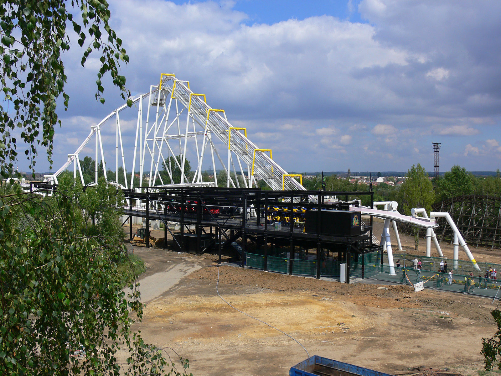 Ich finde, die "Thematisierung" zum jetzigen Zeitpunkt hat auch was. Hinter dem Coaster/Parkgelände sieht die Umgebung ziemlich abgewrackt aus, wozu diese etwas heruntergekommene Bahn, der aufgewühlte Boden und die großten Fundamente gut passen. Wie Simon heute so schön sagte, etwas Endzeitstimmung.
