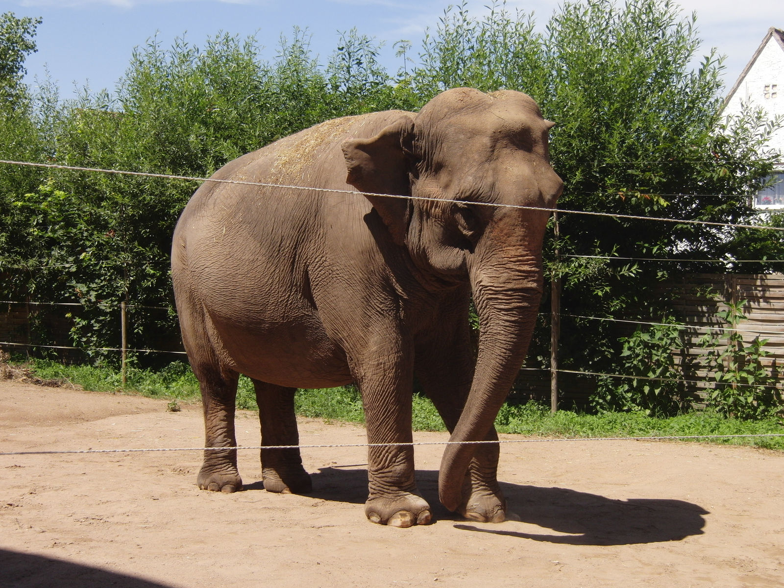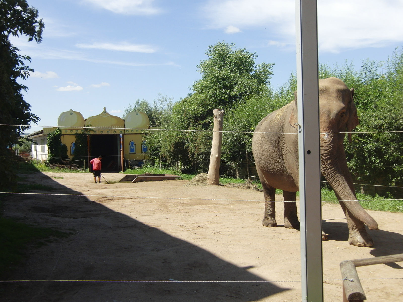 Zur Rechten nach dem Eintritt in den Park konnte man dann einen Elefanten sehen der für einige Vorführungen herhalten mußte.