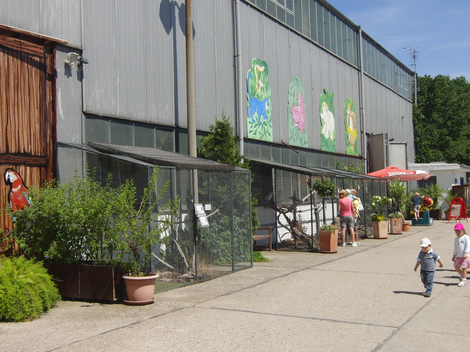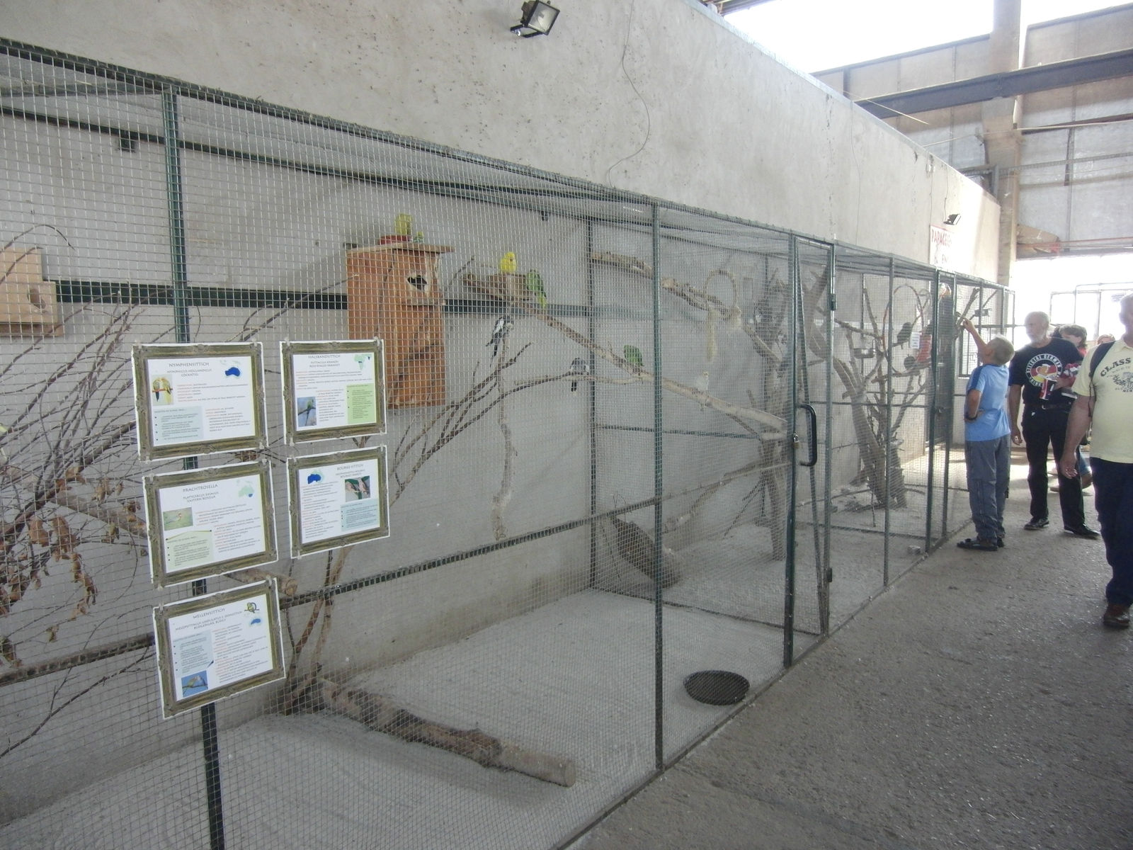 In den Außenkäfigen gibt es einige Papageien zu sehen.