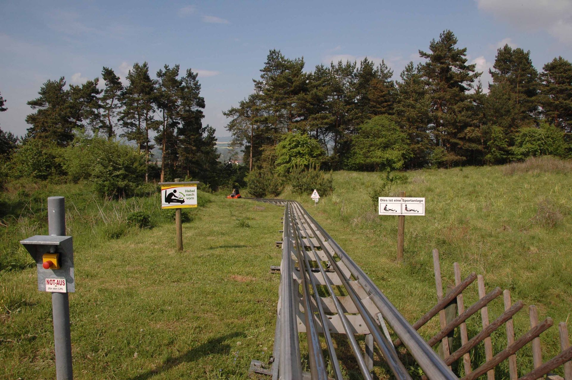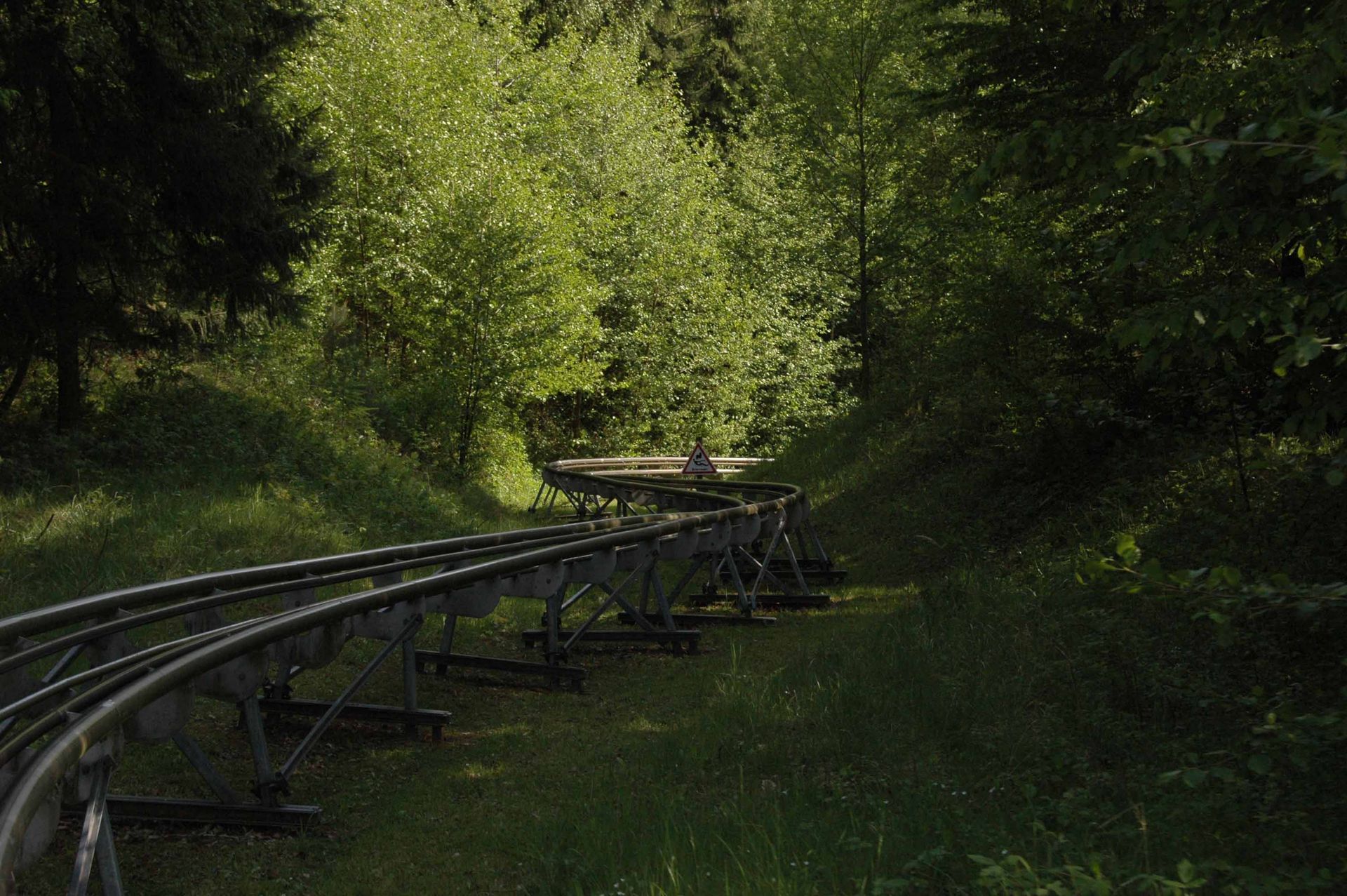 Was mir auffiel: ein weiterer Alpine-Coaster, bei dem die Zufahrtstraße einspurig ist, so dass man sich permanent am Straßenrand ins Feld stellen muss, um ein entgegenkommendes Fahrzeug vorbeizulassen. Ist das irgendwie Bedingung von Wiegand, damit die überhaupt so eine Bahn da hinbauen?