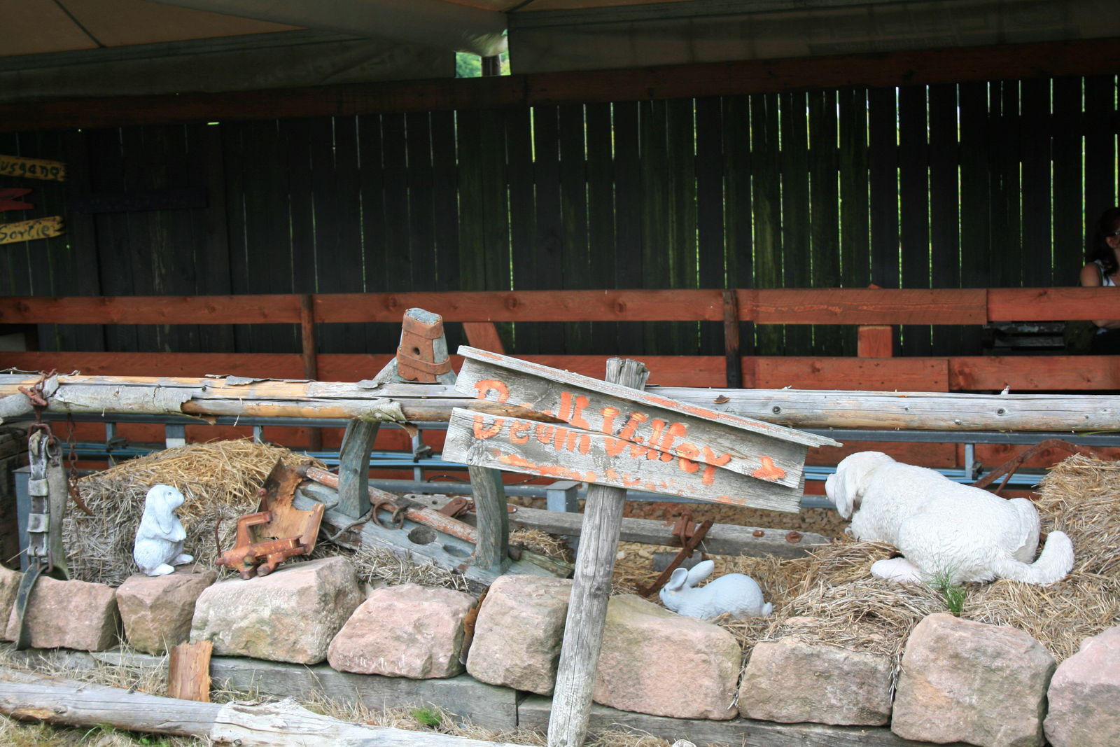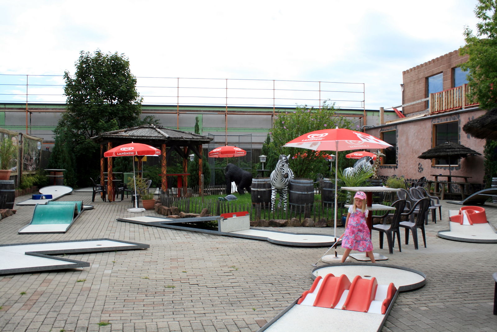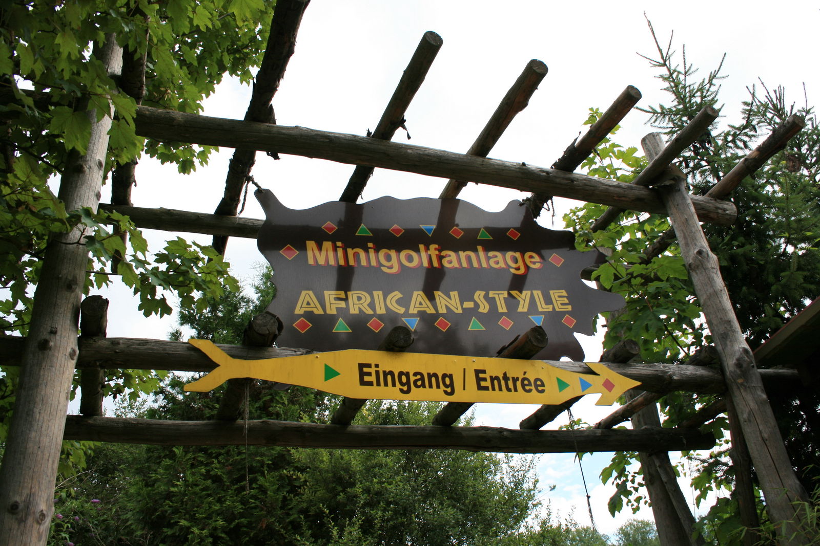 Hatte ich schon erwähnt das Parken hier auf eigene gefahr ist!Gut das die wilden Tiere in der Minigolf Anlage gefangen sind.