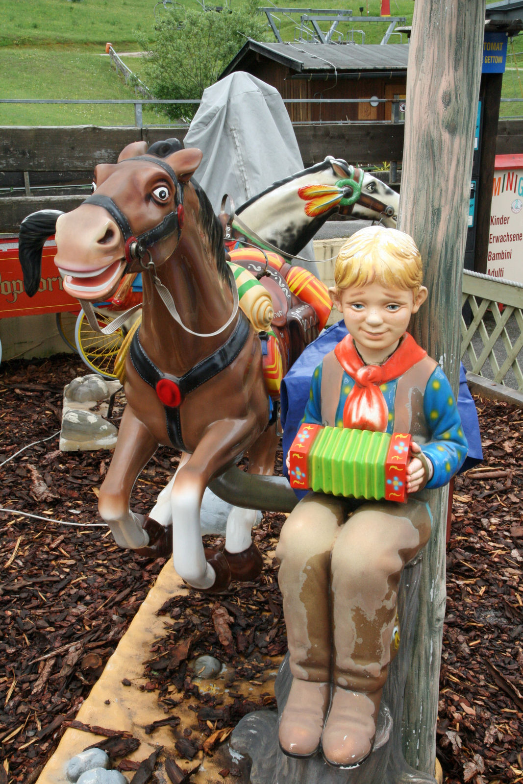 Pferdereitbahn - ich hätte es hier super gefunden, wenn anstatt der Indianerfiguren was klassisch österreichisches verbaut worden wäre. Eine Skulptur vom Bregenzer Milchpilz zum Beispiel. Oder Zandl hätte sich da hinstellen müssen!