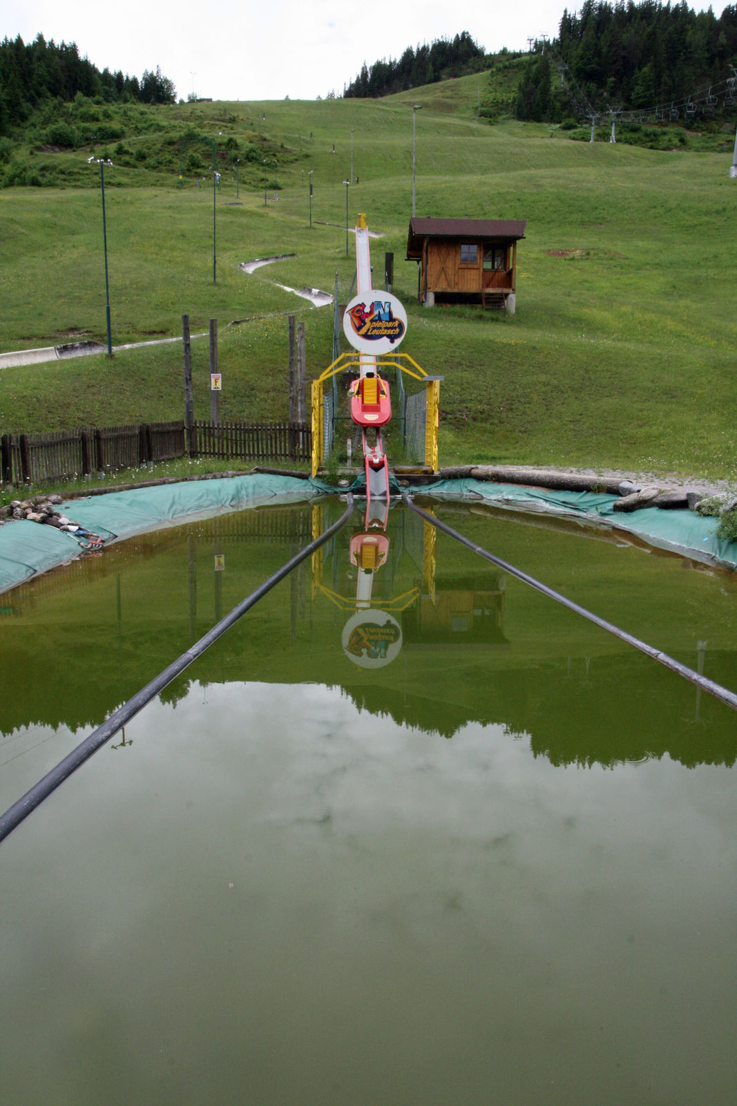 Heegemonie in Familienparks. Hier in Form der Wassersprungschanze, der Schaukel...