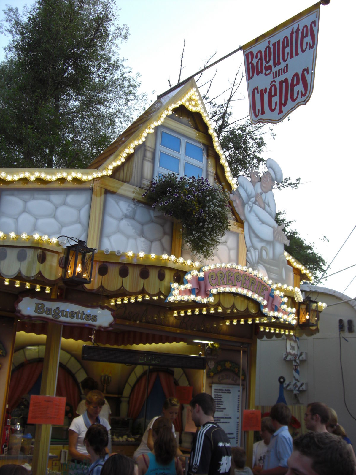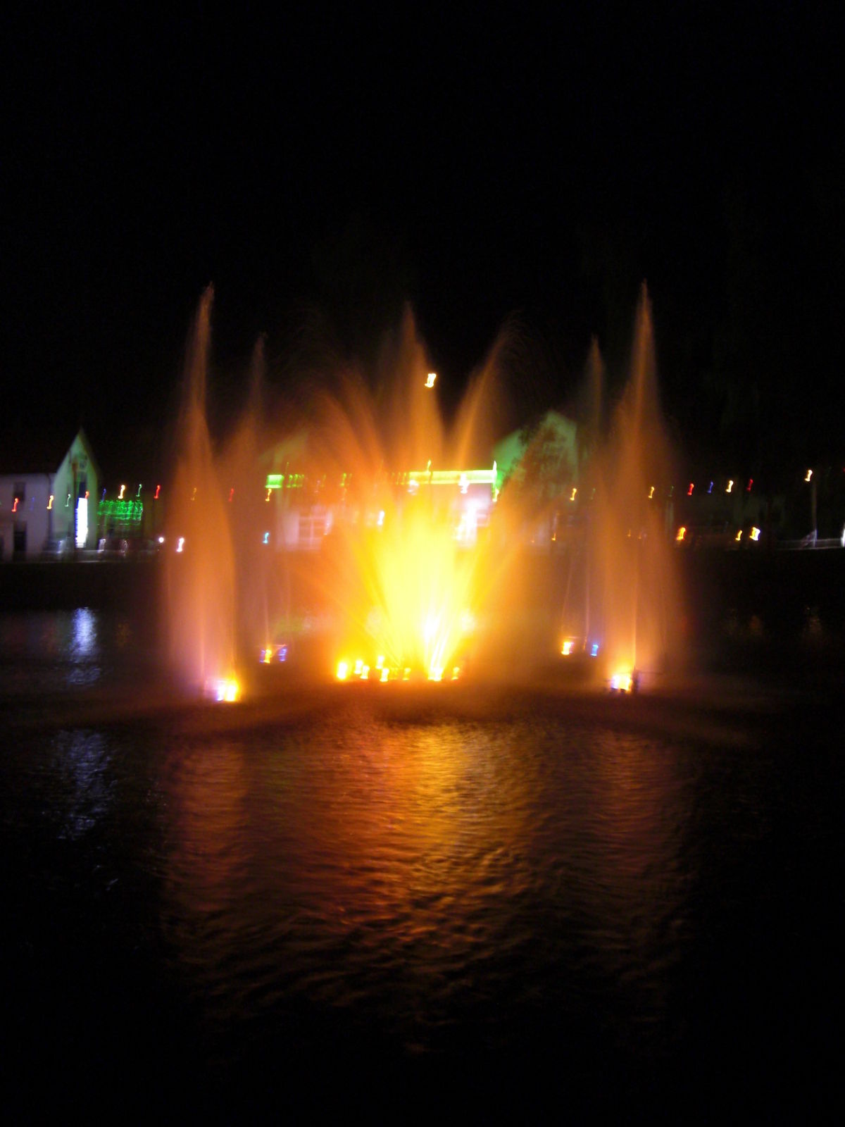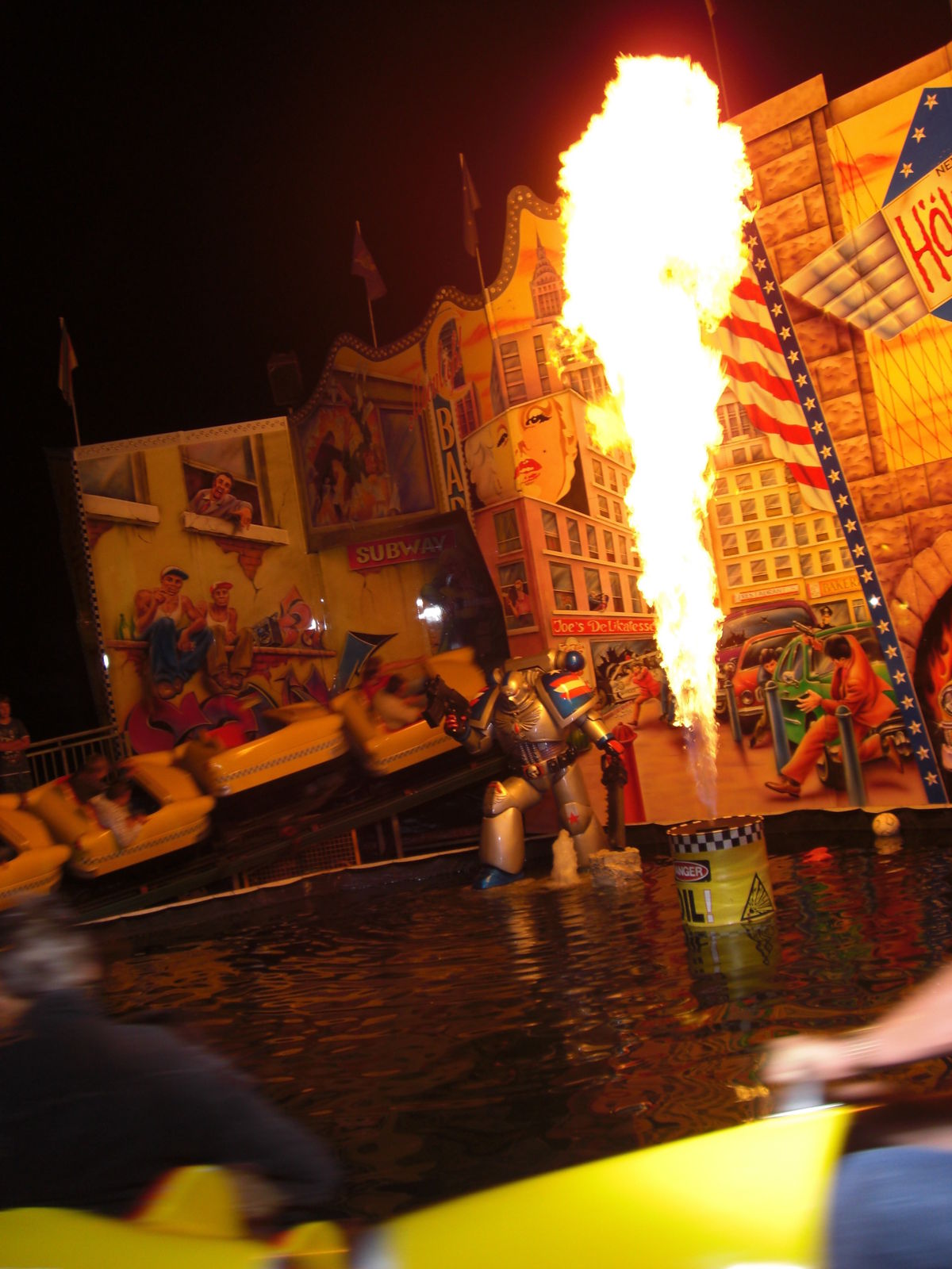 Das macht auch den Reiz des Festes aus. Es liegt wie gesagt direkt am Fluss, die beiden Plätze sind mit einer kleinen Fußgängerbrücke verbunden. Weiter ist das Fest auch mitten in der Stadt Regen. Auf dem Fluss sind die Wasserspiele aufgebaut.