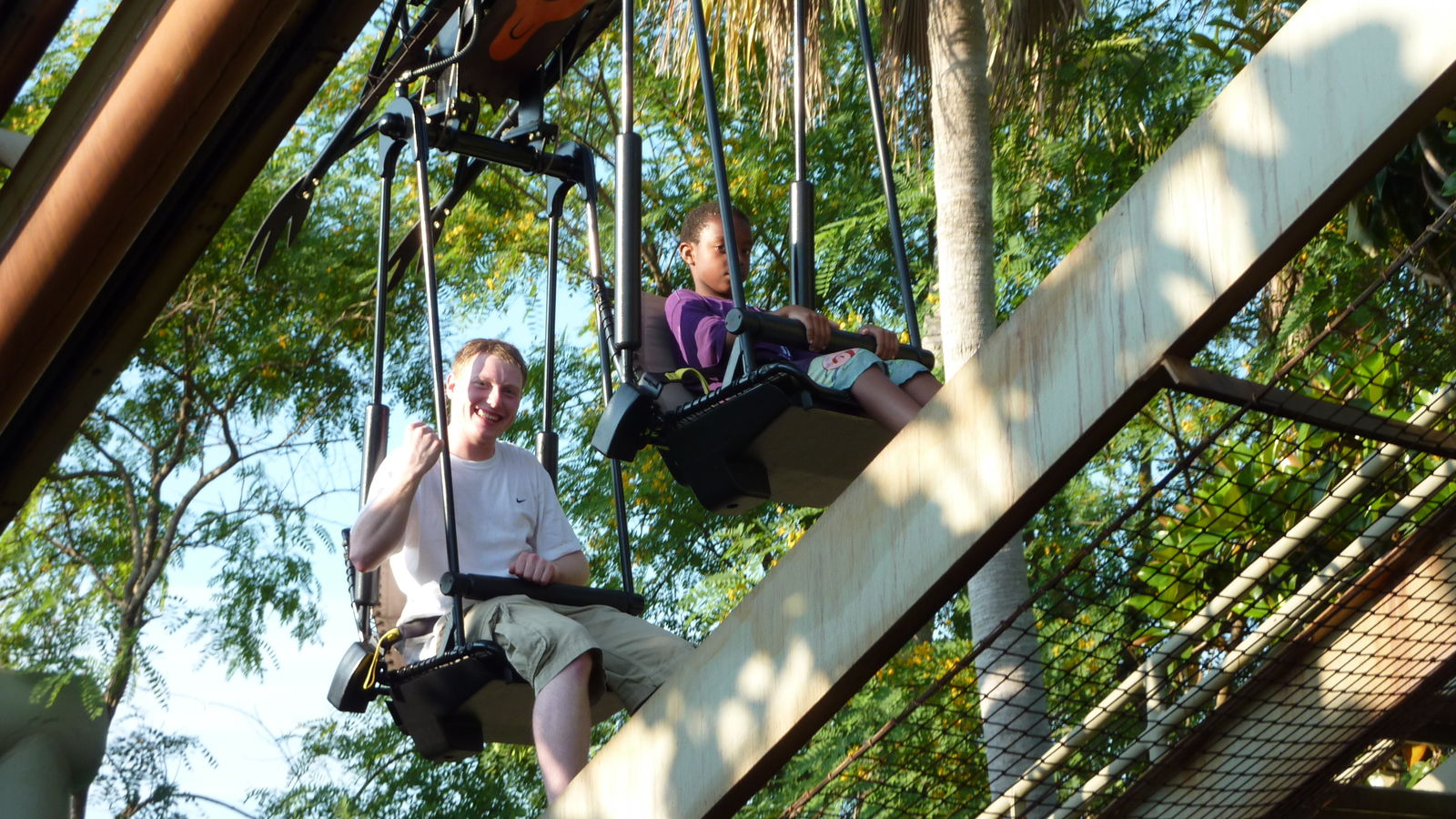 Die Ptedingsda Flyers mit dem unausprechlichen Namen waren leider nur für Kinder aufgrund der begrenzten Kapazität geöffnet. Die Dame ließ mich weder durch liebes Bitten und Betteln, noch unter Einsatz meines nicht vorhandenen Charmes rein. Die Masche "Arme Deutsche zum ersten Mal in den USA" klappte auch nicht. Ich wäre für Tips sehr dankbar. Sahen nämlich echt spaßig aus die Teile.