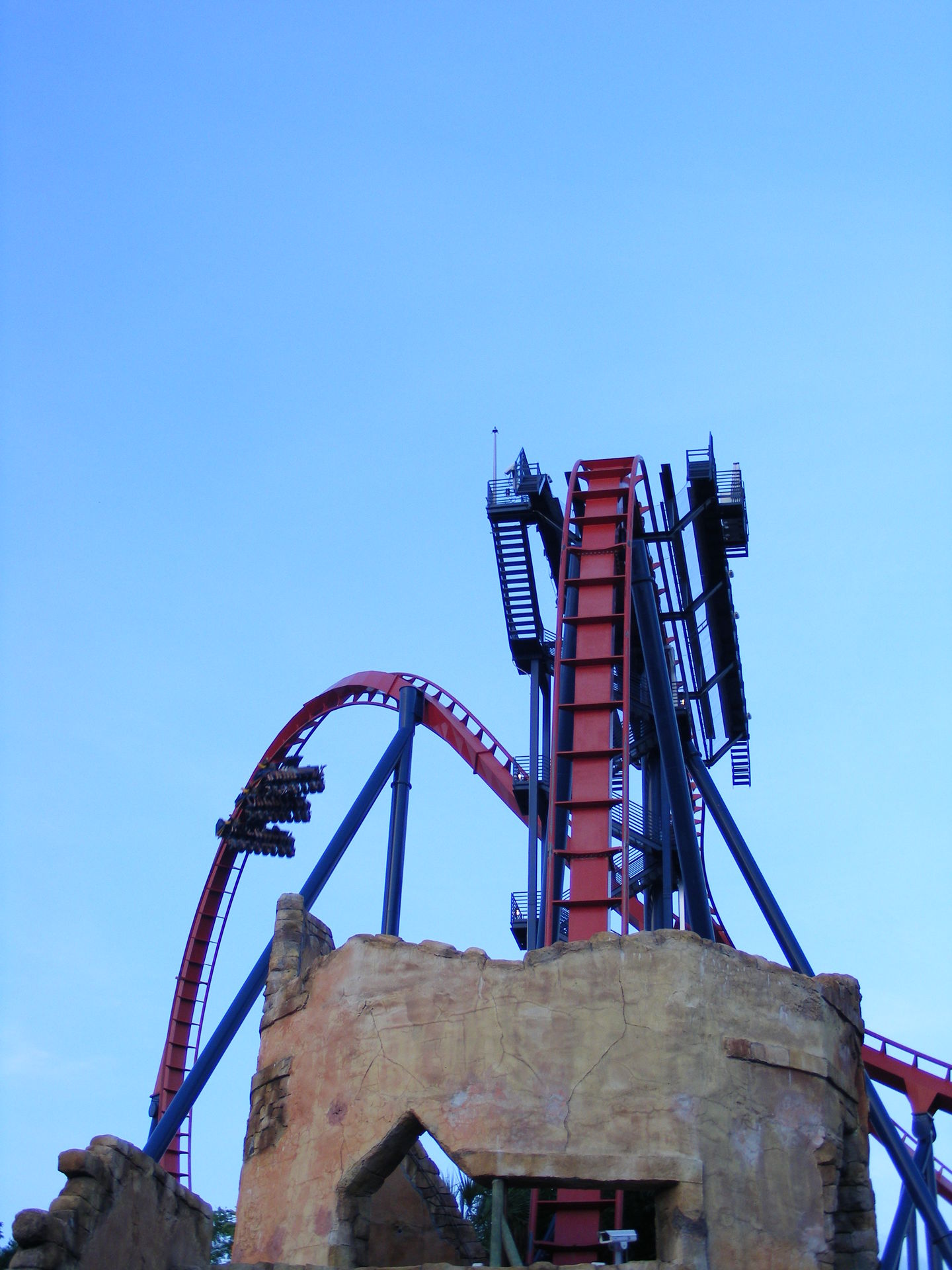 Sheikra ist super. Die beiden Drops sind für mich im Prinzip die Bahn. Der folgende Immelmann wird gaaaanz sanft durchfahren und kann fast schon als familienfreundlich eingestuft werden, keine extremen Kräfte wirken dort. Der Teil nach dem zweiten Drop dient imho nur noch für die Paparazzi, welche außerhalb auf einen vorbeifahrenden Zug warten. Alles zusammen machen ein rundes Achterbahnerlebnis aus, wenngleich die Bahn niemals die G-Keule rausholt und auch ein bissel das Silverstarsyndrom inne hat: Sieht außen mächtiger aus, als sie sich wirklich fährt. Aber das ist Jammern auf höchstem Niveau: Sheikra rockt! 9/10.