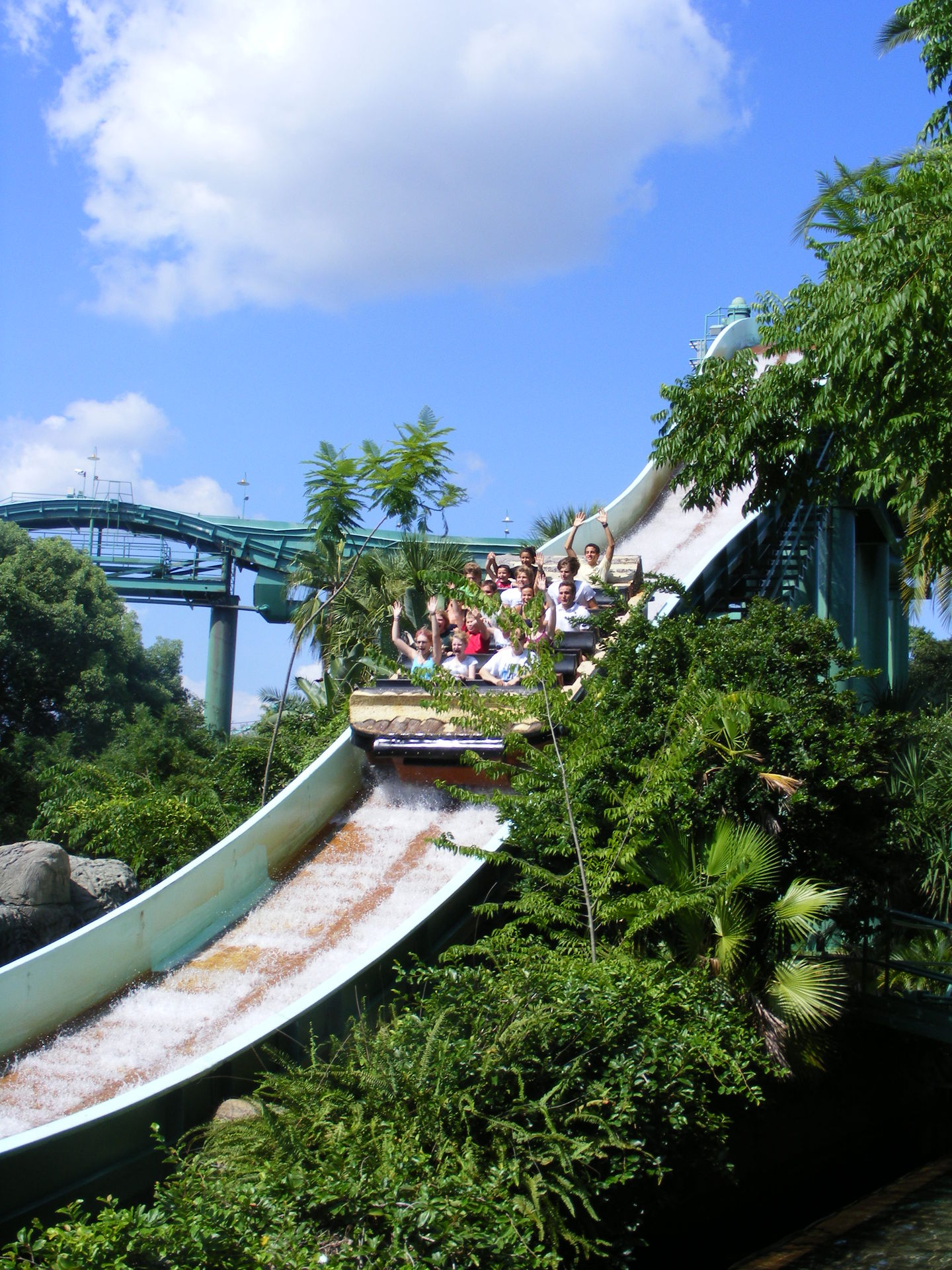 Vom Rafting hab ich leider keine Fotos. Soviel sei gesagt: Der Zusatz: "You will get soaked" ist treffend. Ich war bereits nach der Stationsausfahrt pitschenass. Wer es bis zum Förderband halbwegs trocken geschafft hat, dem wird durch Wasserfontänen und sich über den Köpfen der Fahrgäste entleerende Eimer der Rest gegeben. Die Fahrt selber ist toll, wild, bietet im Gegensatz zu deutschen Butterfahrtenraftings richtige Stromschnellen und ist dabei noch ansprechend thematisiert. Wertung: 9/10.