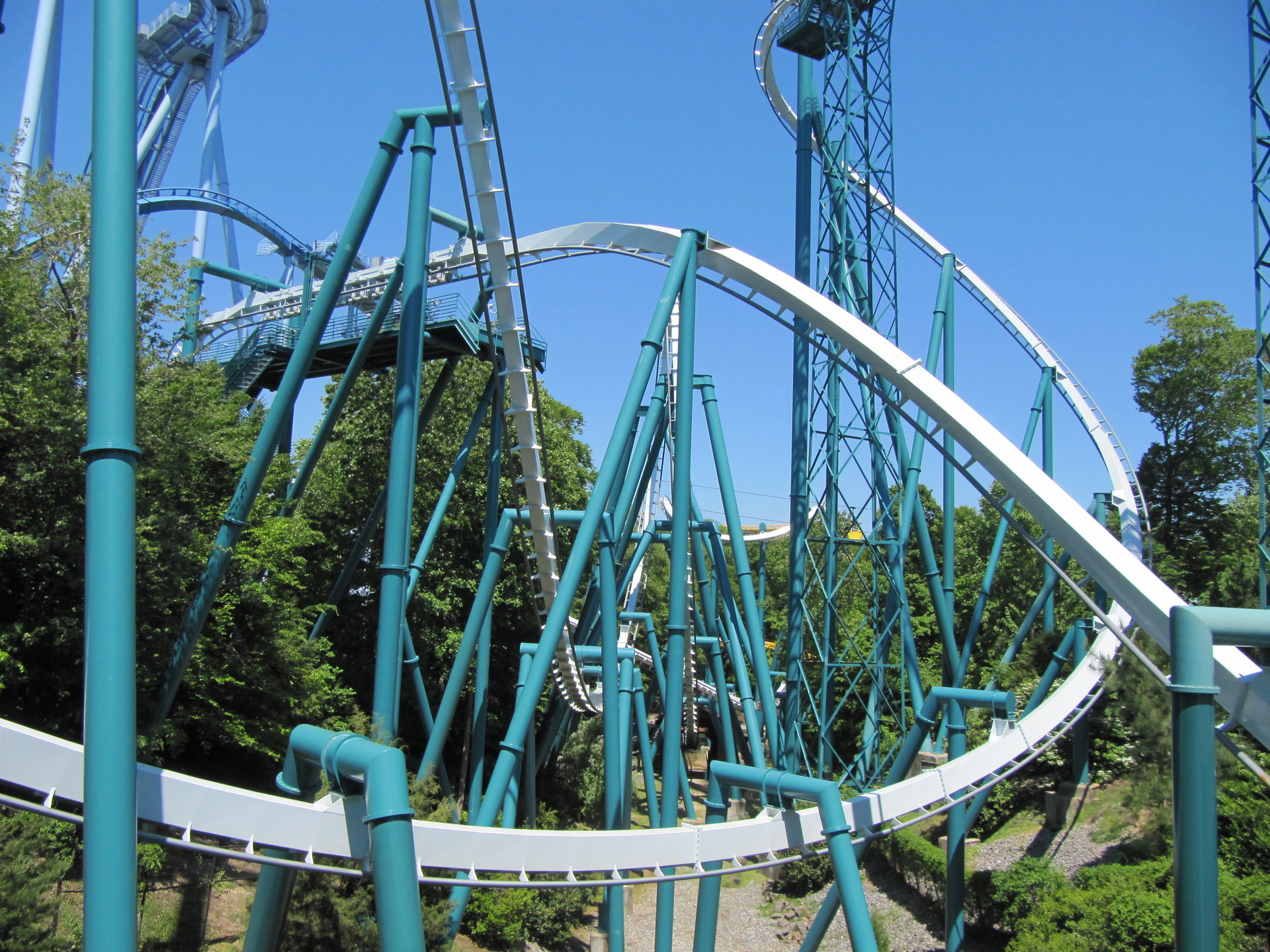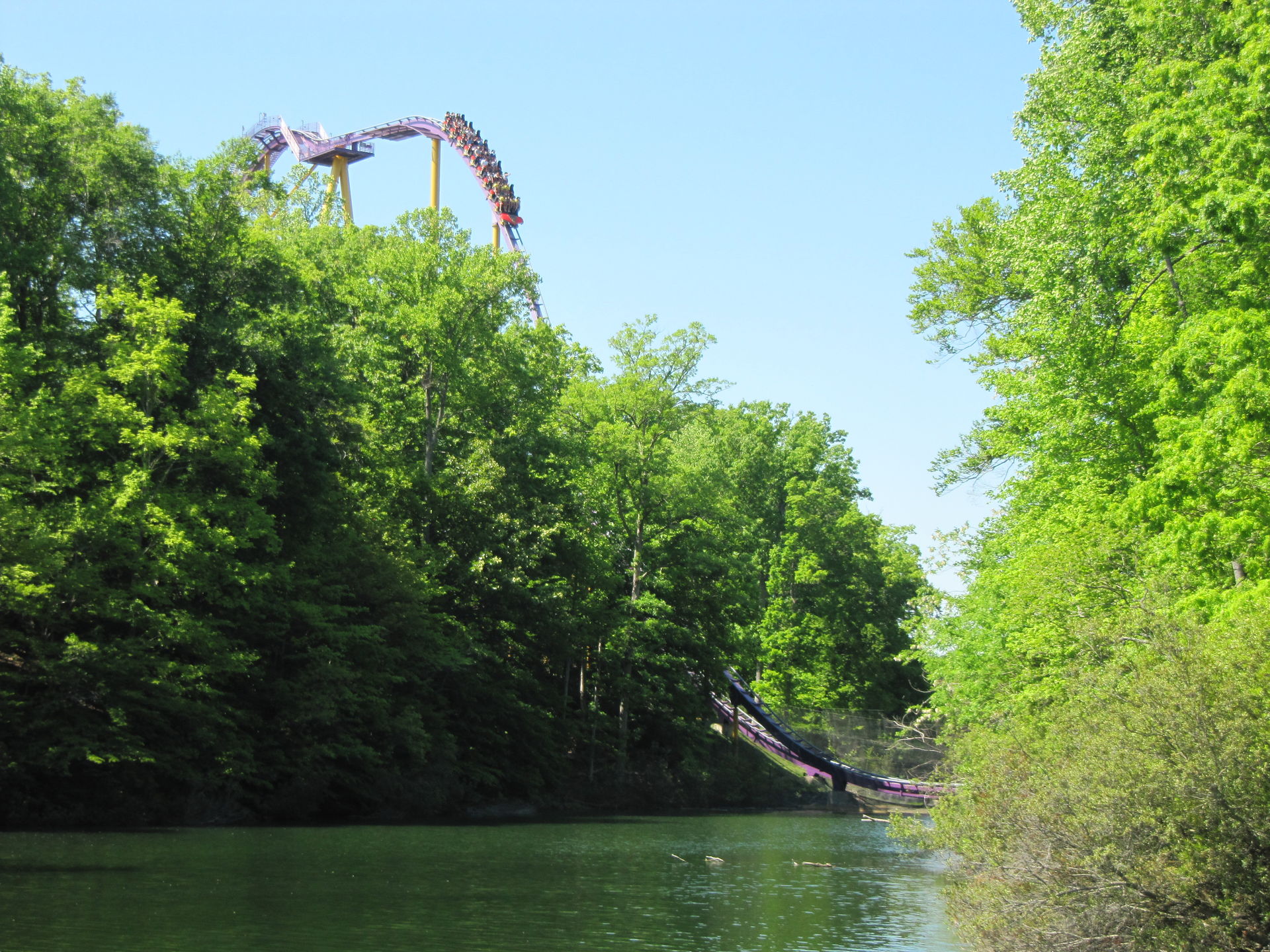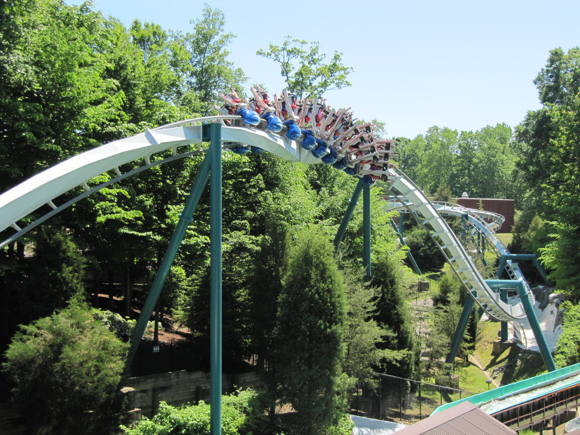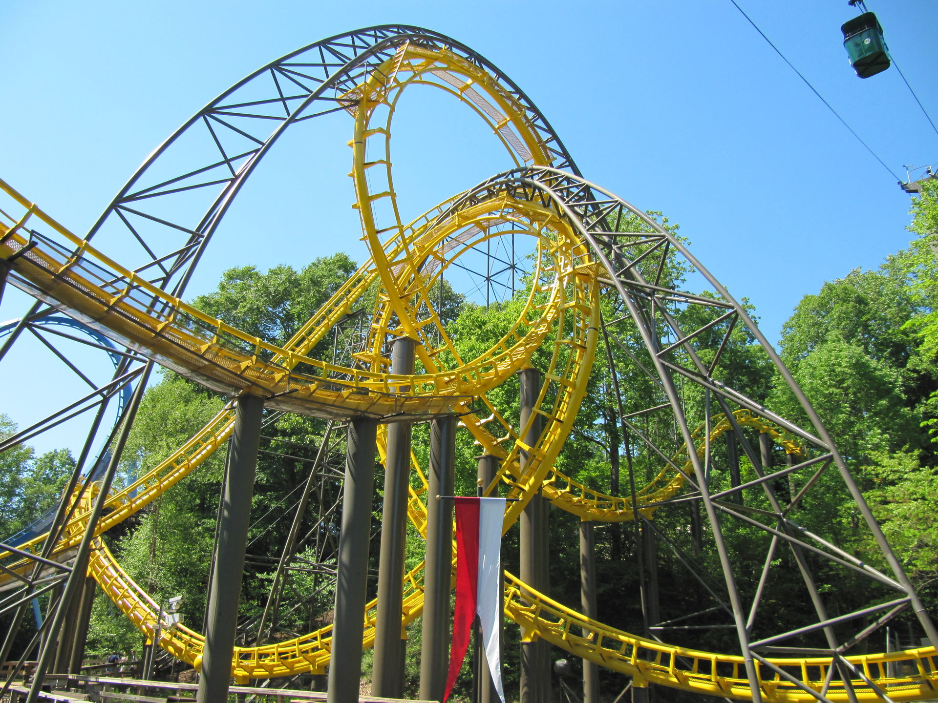 Auch die alte Arrow-Bahn "Loch Ness Monster", mit den Interlocking Loops darf nicht fehlen. Auch hier ist die Höhe nicht gleich erkennbar, da diese auch das Gelände gut nutzt.