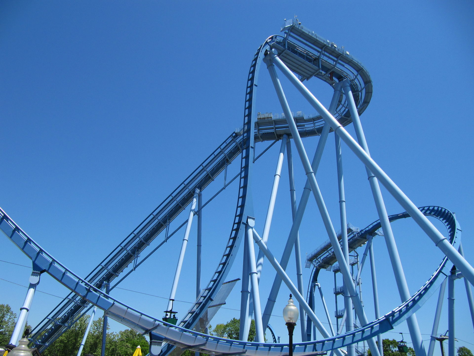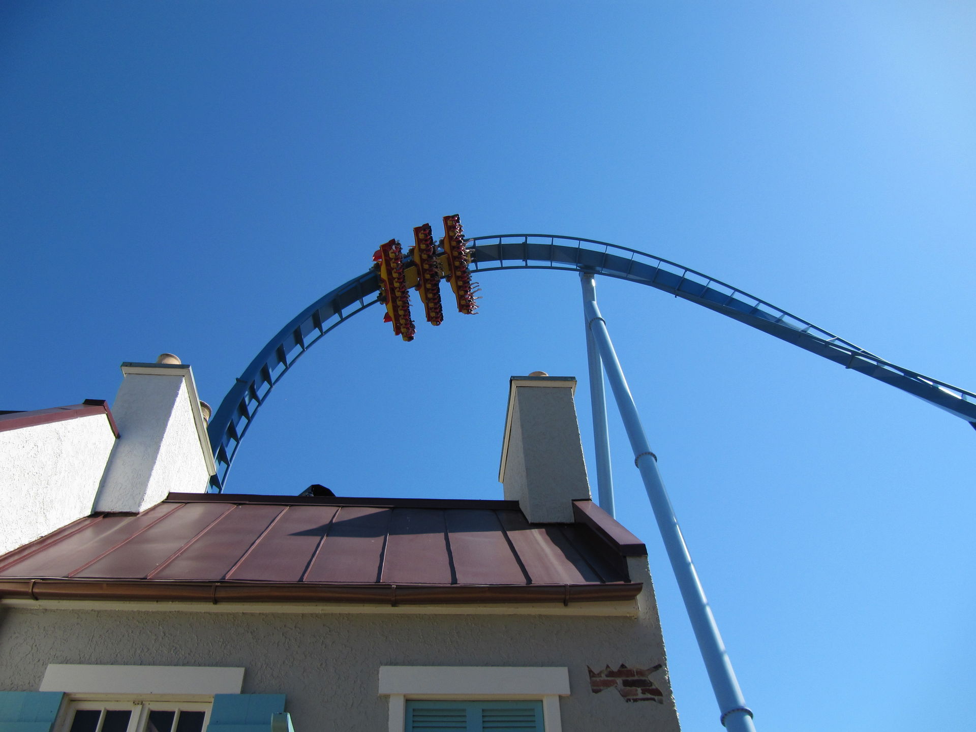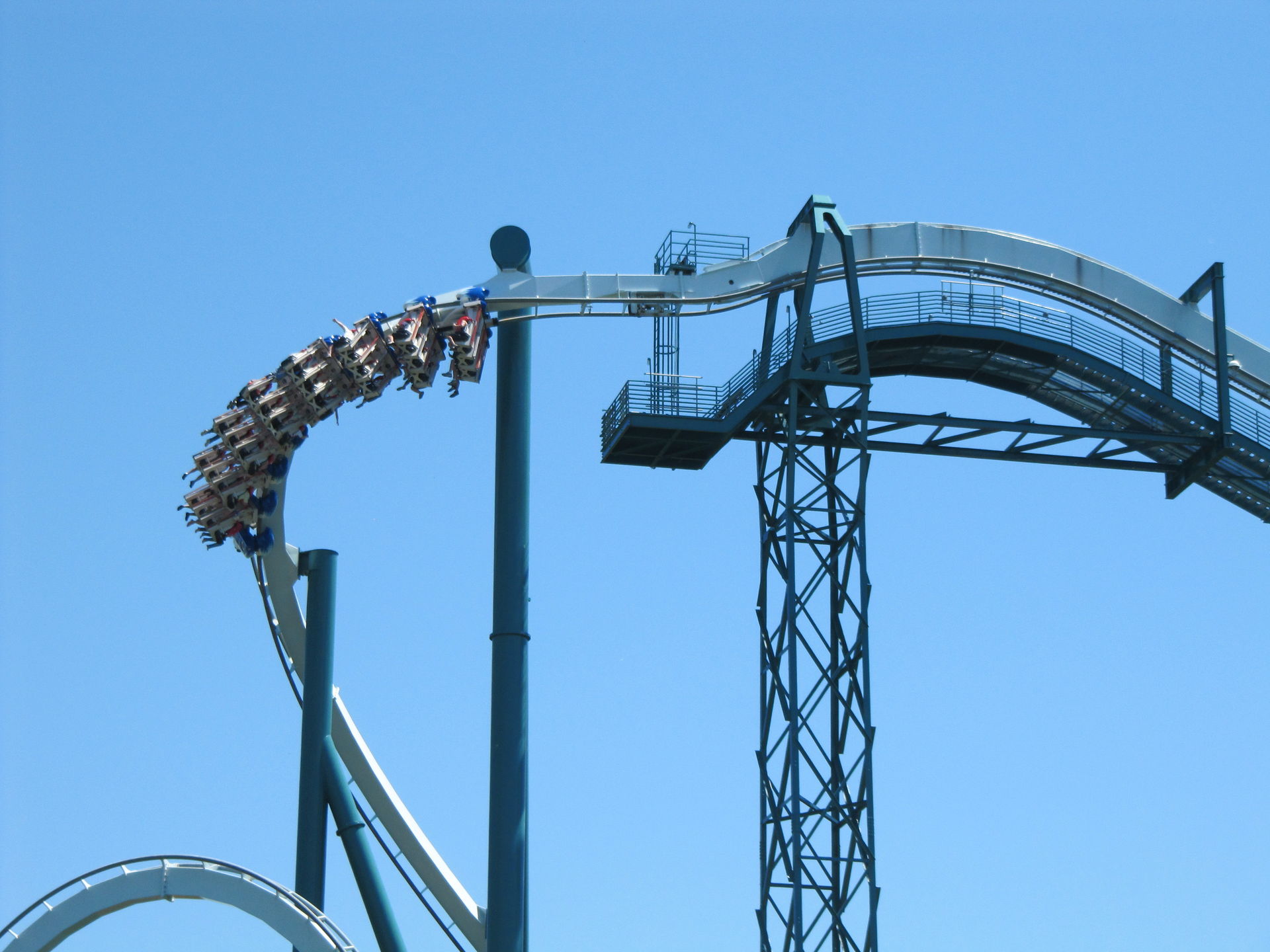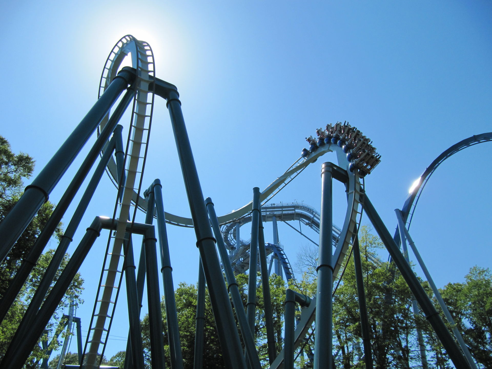Auch die alte Arrow-Bahn "Loch Ness Monster", mit den Interlocking Loops darf nicht fehlen. Auch hier ist die Höhe nicht gleich erkennbar, da diese auch das Gelände gut nutzt.
