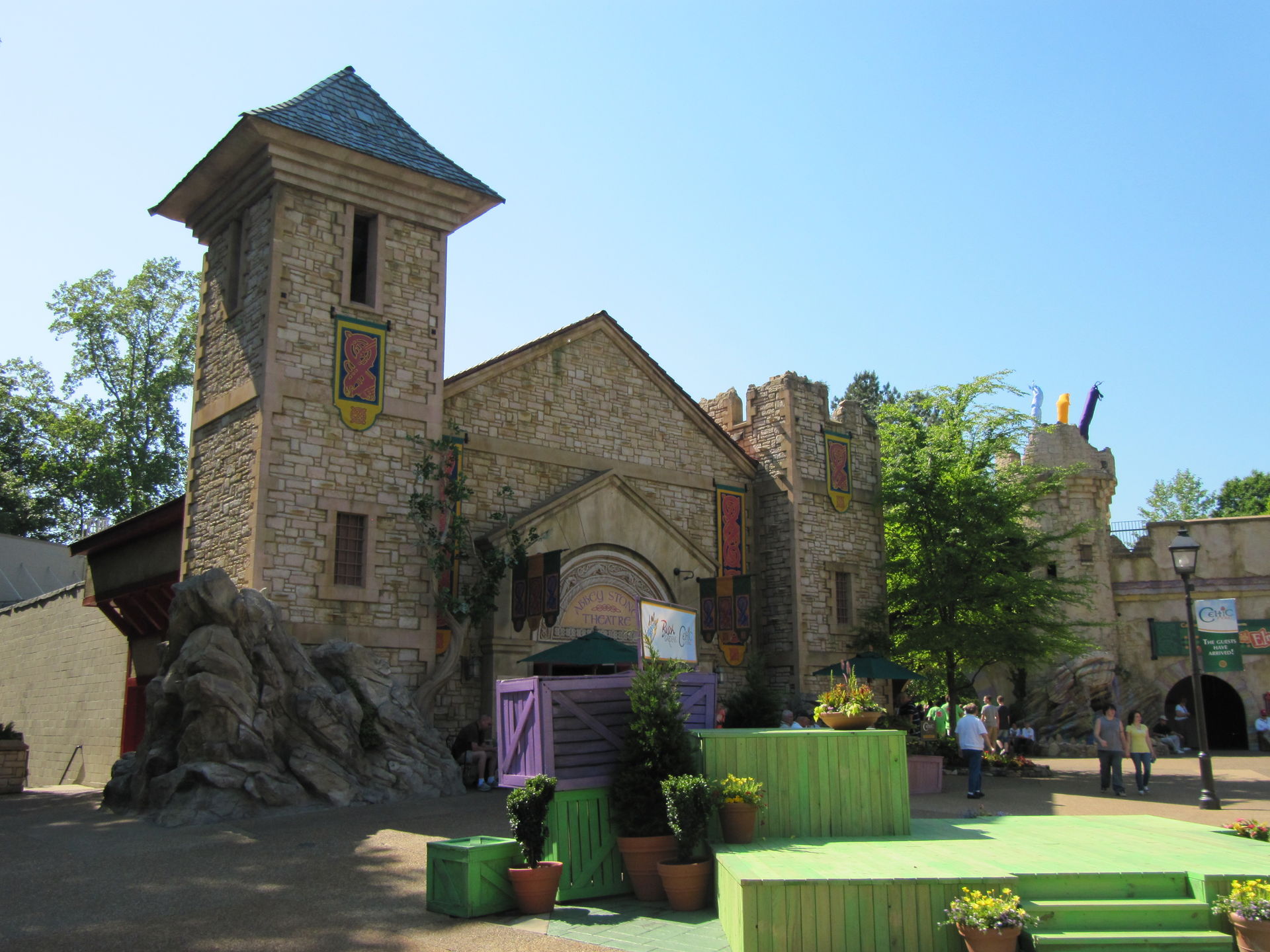 Da ich aber den Tag mit Griffon beginnen wollte, steuerte ich so den französischen Bereich an und ging erstmal durch Schottland und Irland, wo eine lange Warteschlange durch den halben Bereich für die Neuheit "Europe in the Air", die an dem Tag eröffnete, den Weg versperrte. Der Tag versprach auf den ersten Blick voll zu werden. Landschaftlich ist der Park ein Traum. Hügelig mit See in der Mitte und viel Wald.