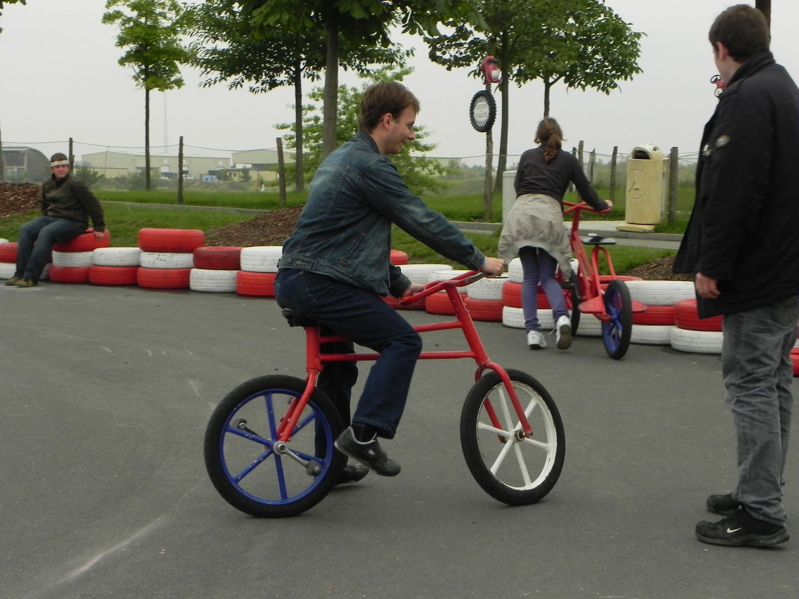 Nebenan kann man sein Geschick auf den Fahrrädern testen