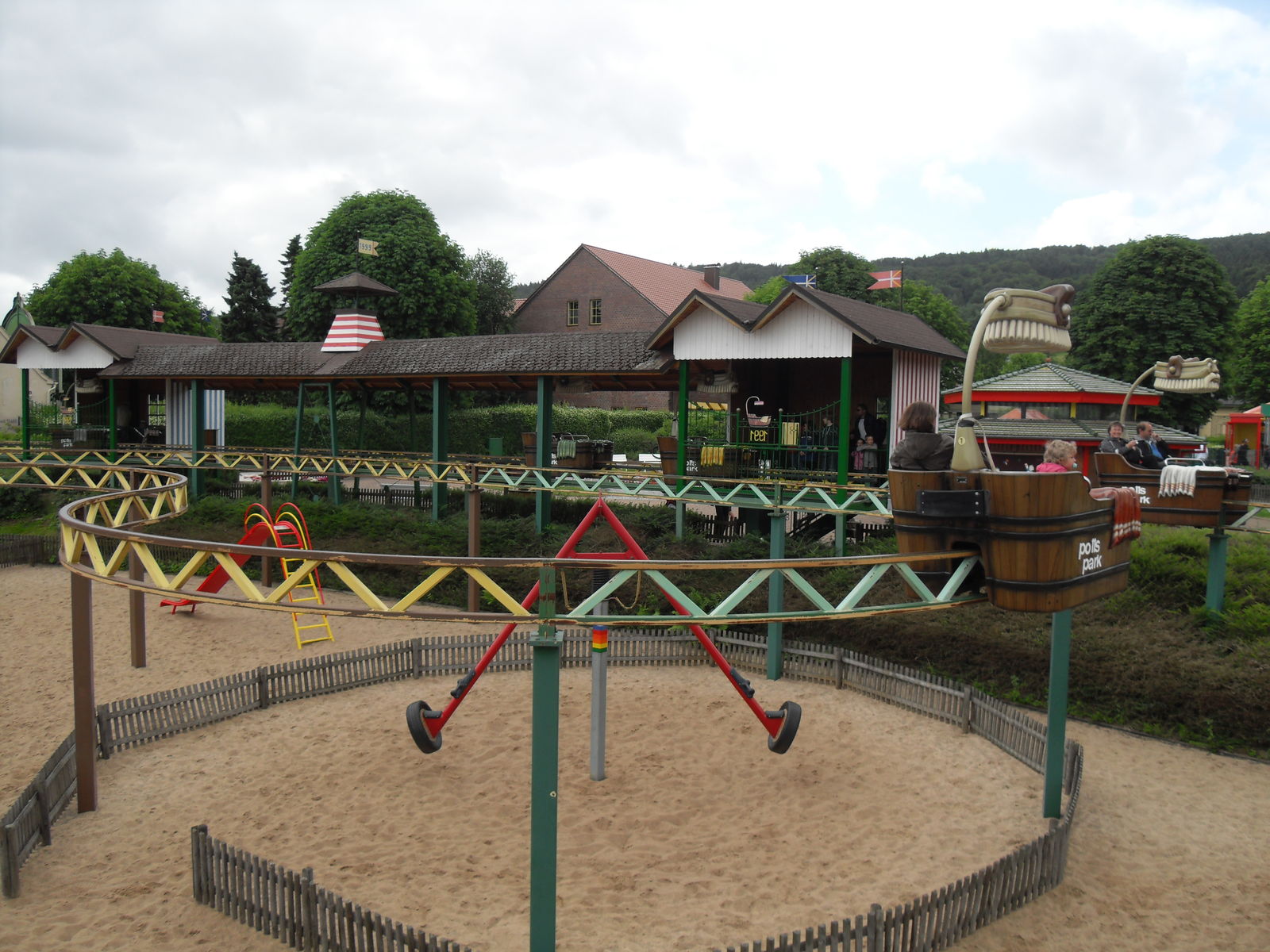Nach betreten des Parks haben wir uns ersteinmal einen kleinen Überblick über den Park verschafft und haben dann unsere Erkundungstour begonnen. Als erstes ging es vorbei an einem Ballbad bis wir zur ersten größeren Attraktion kamen, der Moorbottichfahrt. Es war zwar noch früh am Tag aber es war an der Zeit, die müden Knochen in Schwung zu bringen also nahmen wir Platz und traten eine Runde in die Pedale.