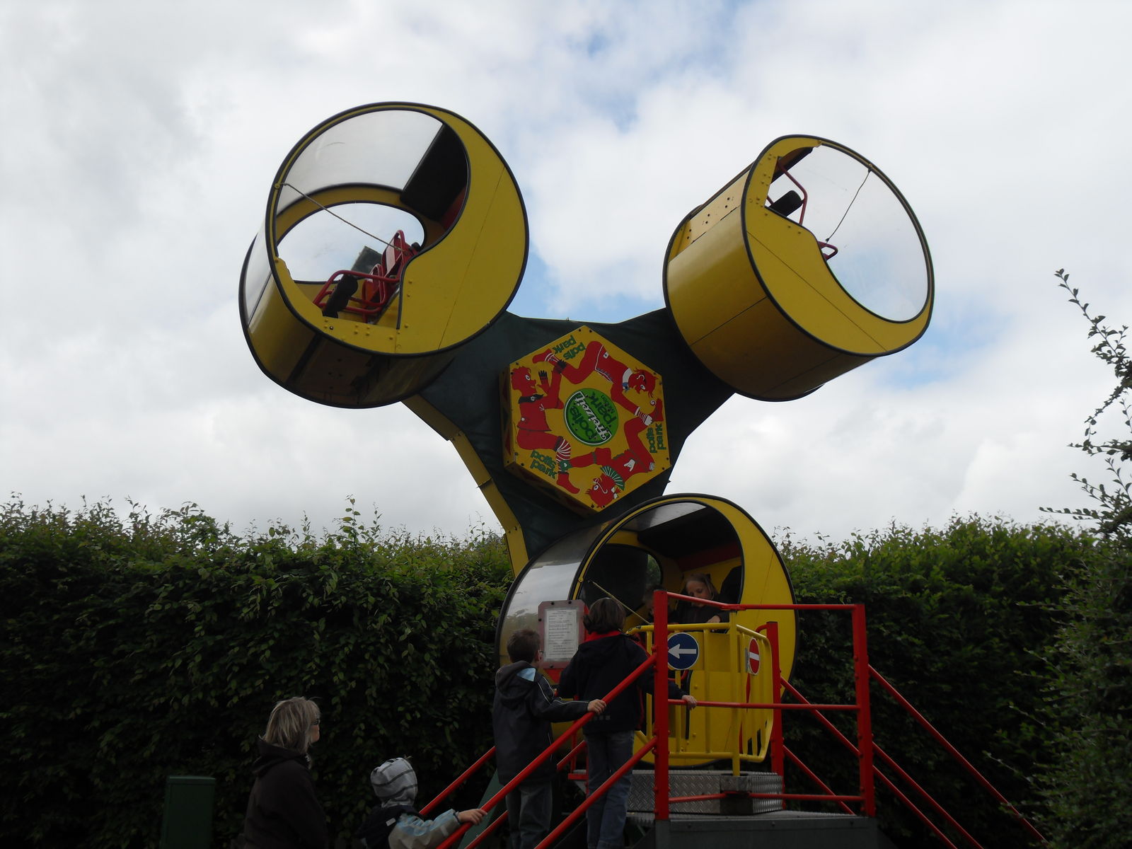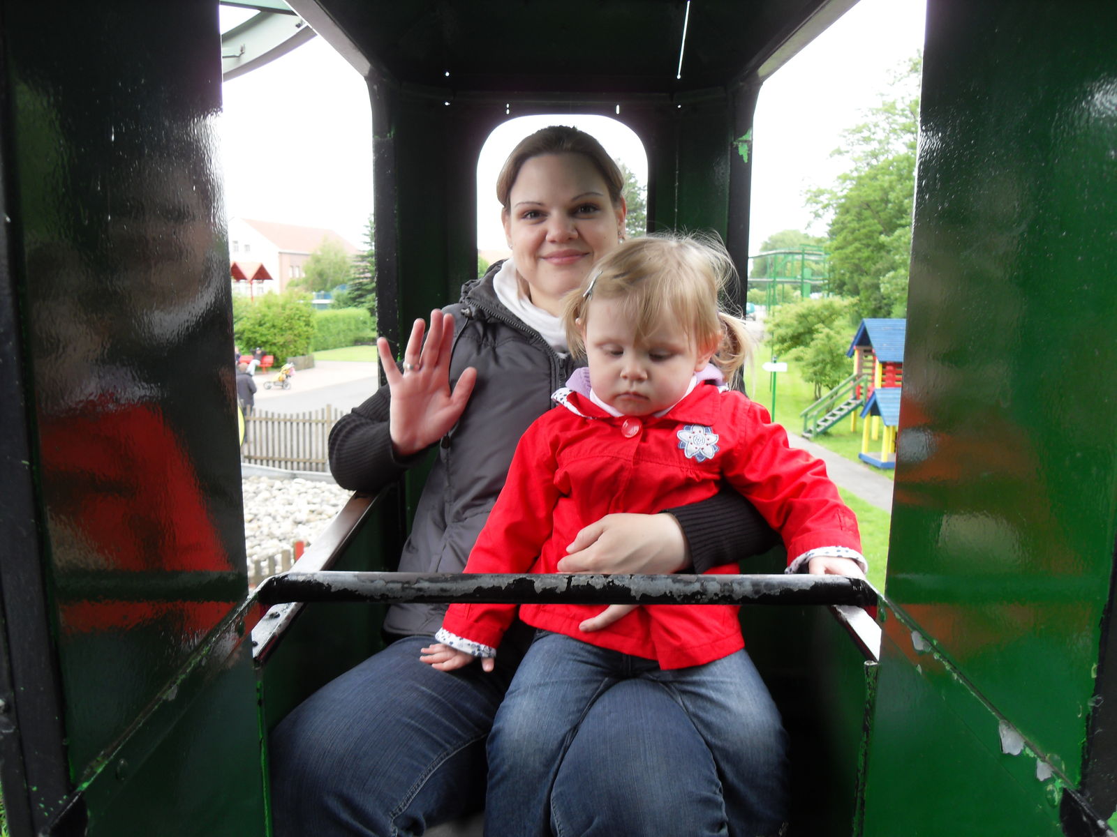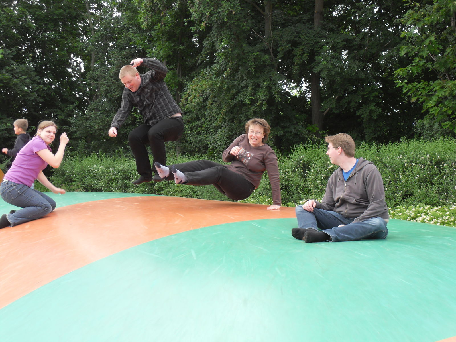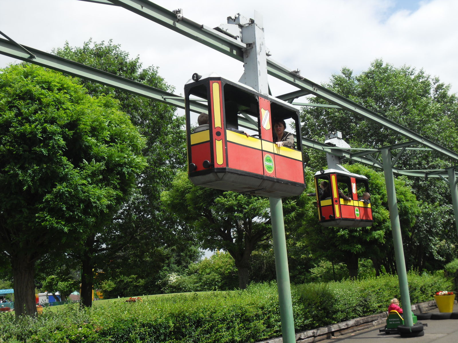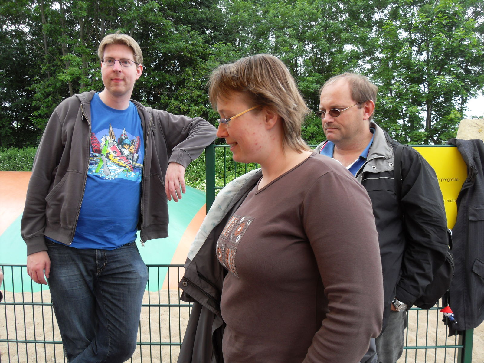 Anschließend tobten sich Jung und Alt wieder auf einem Spielplatz aus, um den herum auch eine merkwürdige Tret-Einschienen-Hängebahn fuhr, die natürlich auch angetestet wurde. Ganz schön anstrengend das Teil.