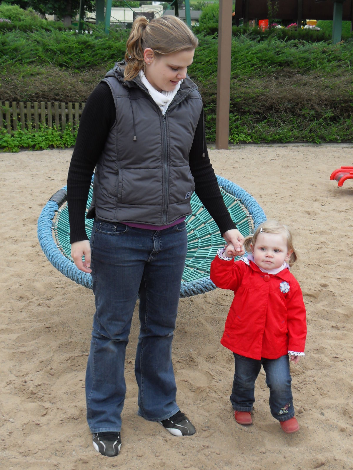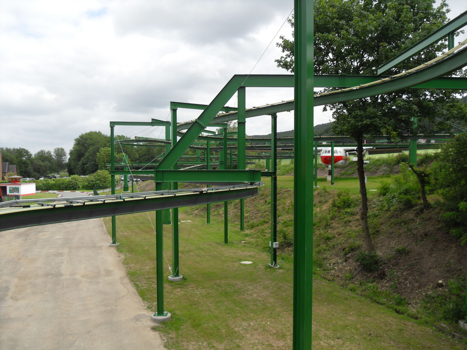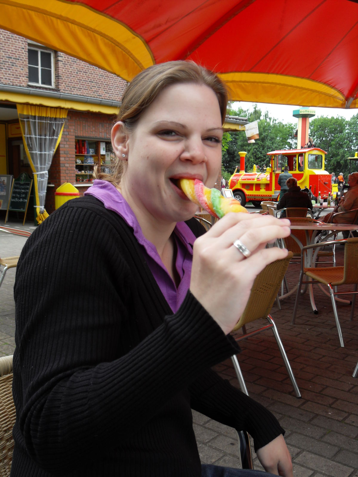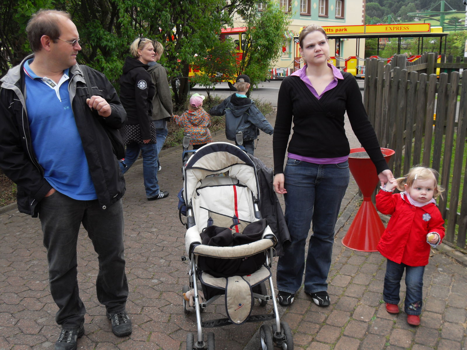 Anschließend tobten sich Jung und Alt wieder auf einem Spielplatz aus, um den herum auch eine merkwürdige Tret-Einschienen-Hängebahn fuhr, die natürlich auch angetestet wurde. Ganz schön anstrengend das Teil.