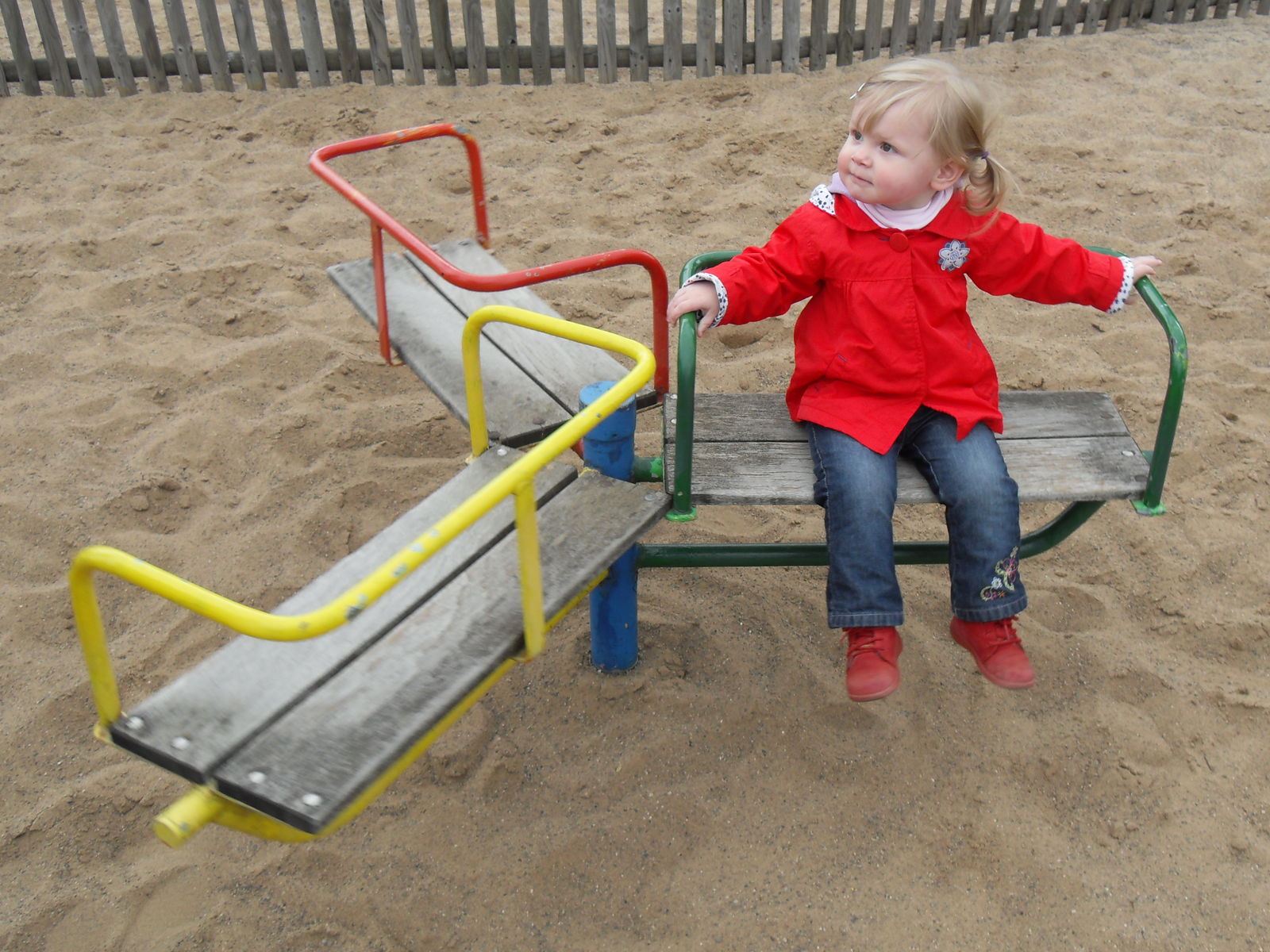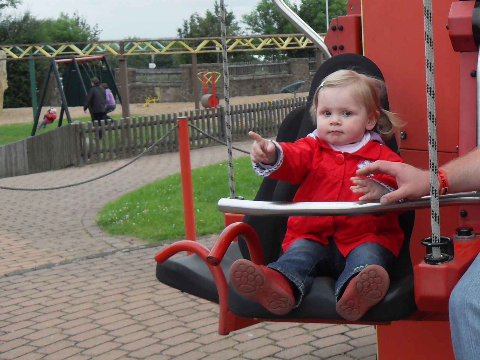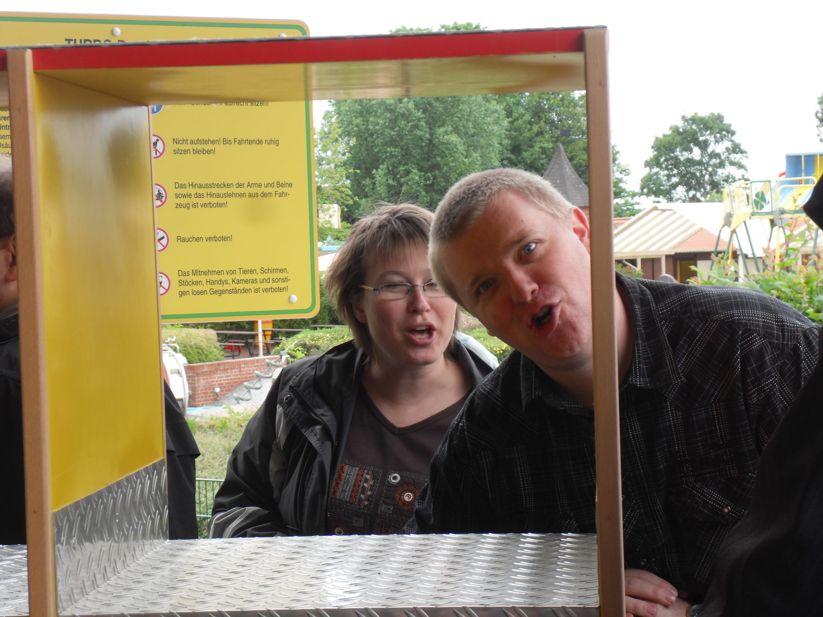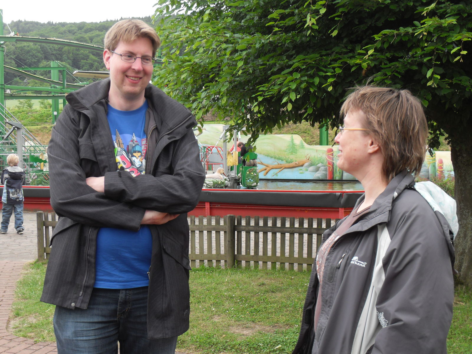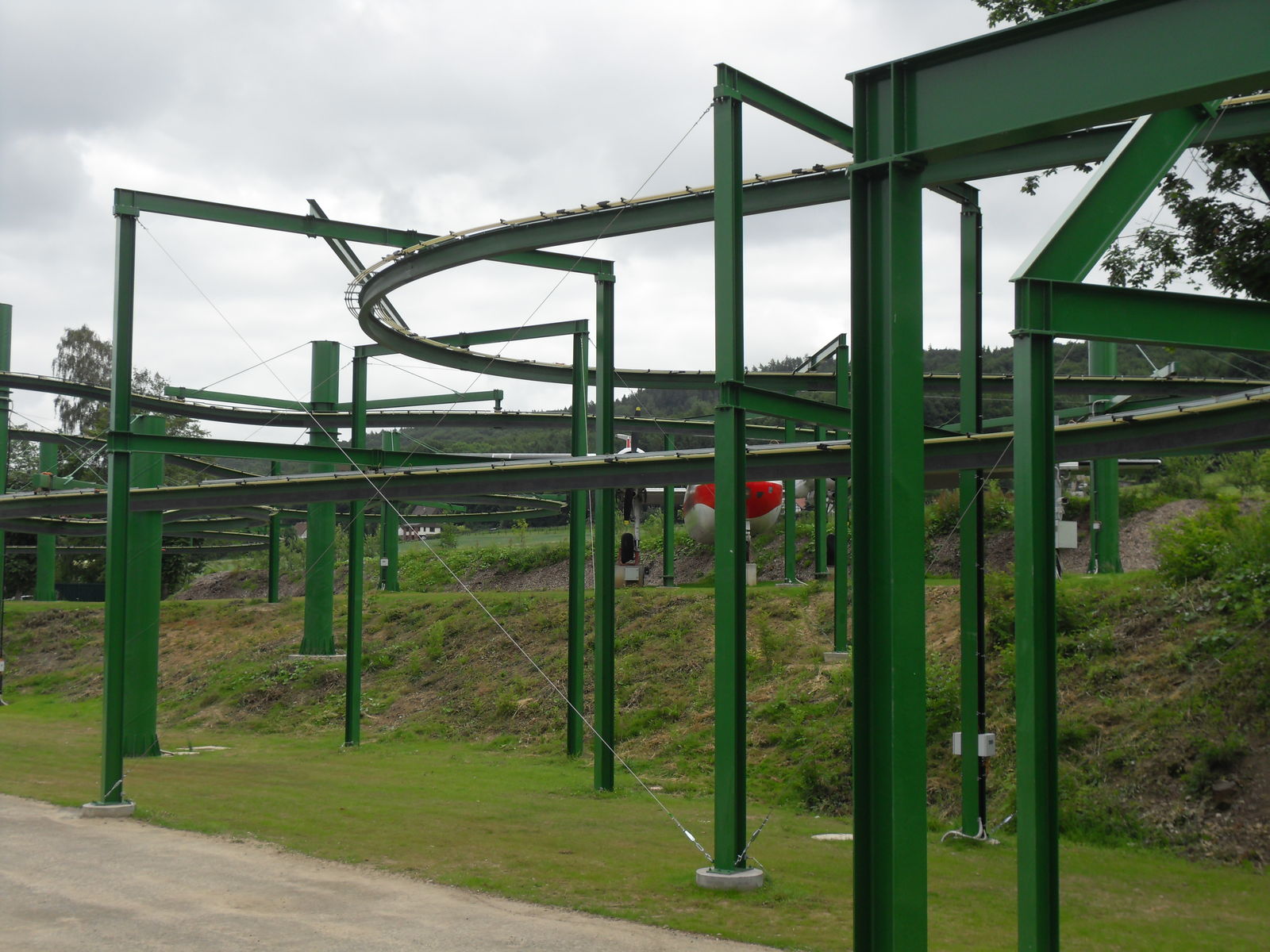 Anschließend tobten sich Jung und Alt wieder auf einem Spielplatz aus, um den herum auch eine merkwürdige Tret-Einschienen-Hängebahn fuhr, die natürlich auch angetestet wurde. Ganz schön anstrengend das Teil.
