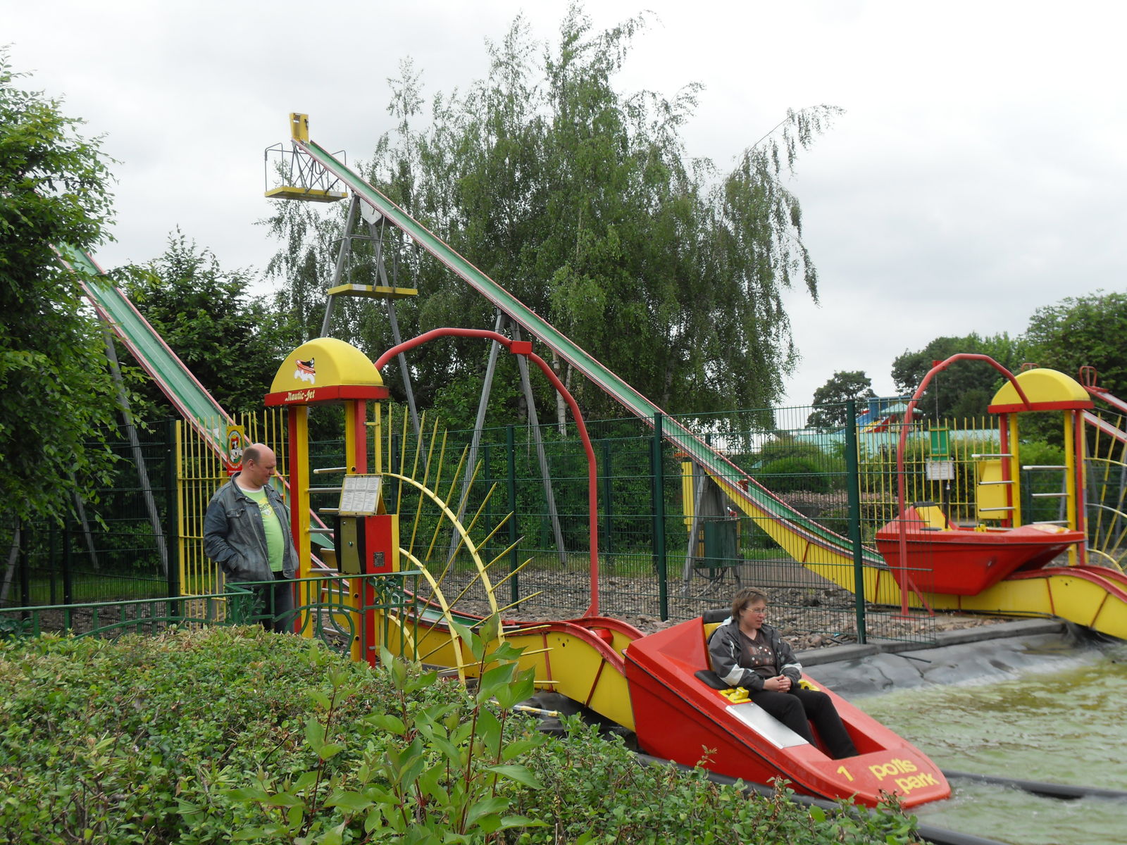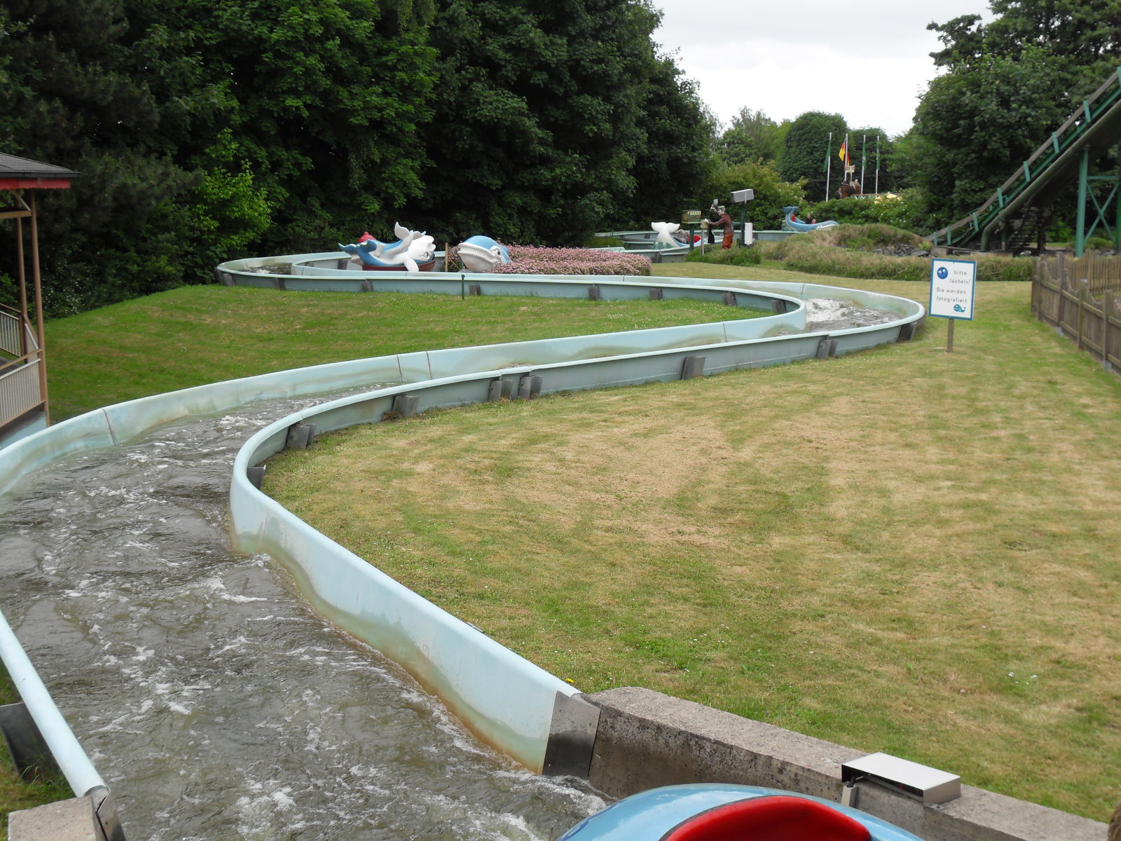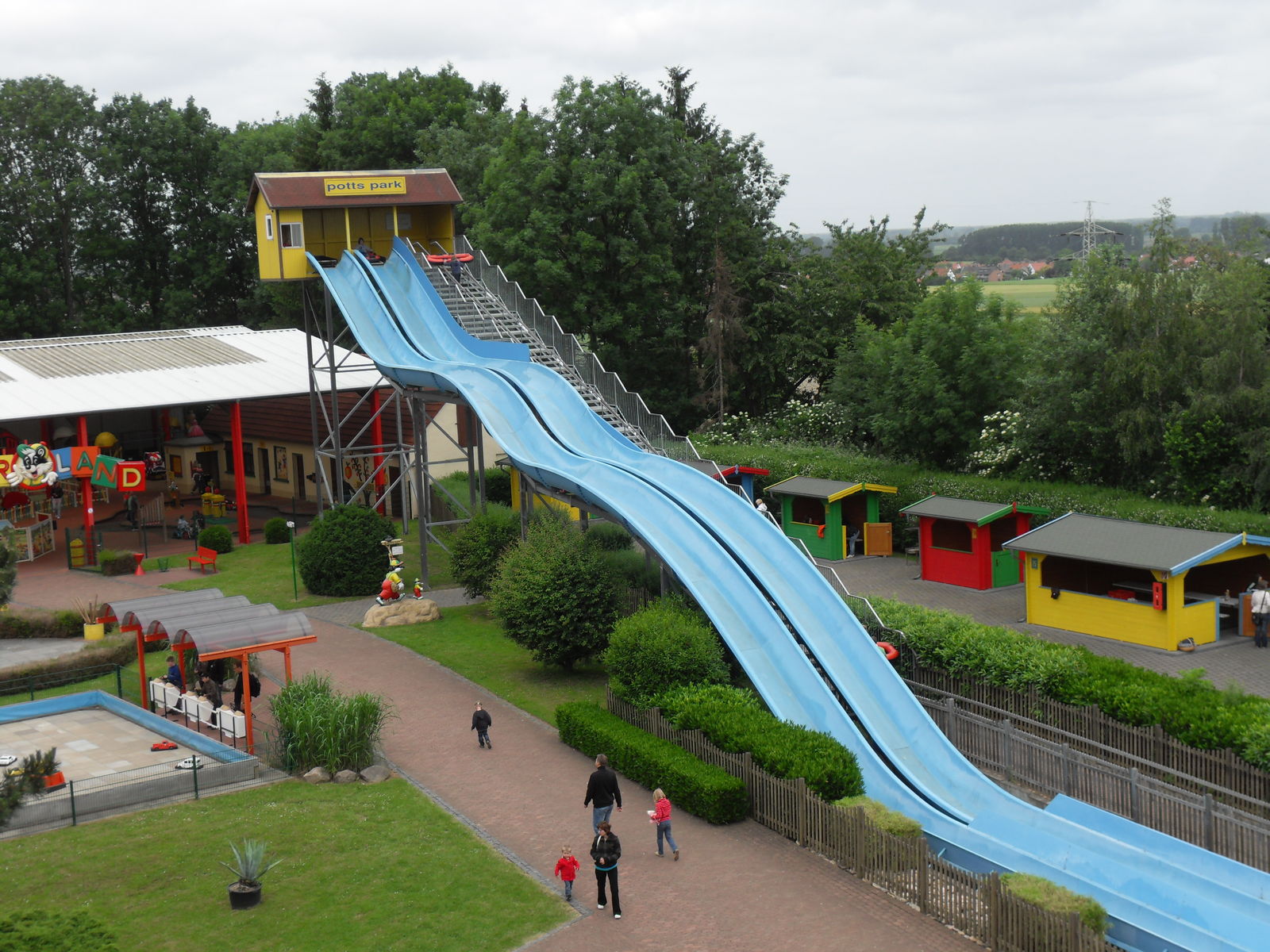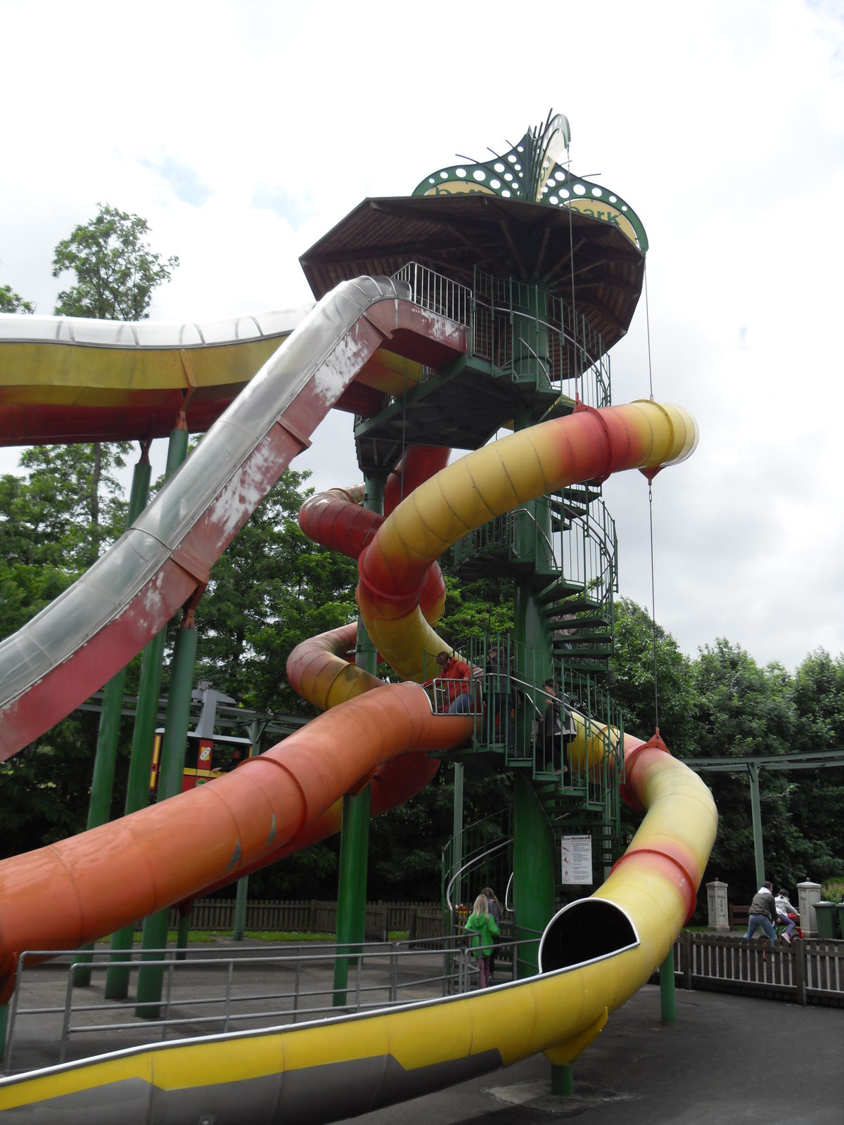 Als nächstes trafen wir auch eine Wasserrutsche. Nachdem wir uns ein paar Fahrten angesehen hatten, entschieden wir uns gegen eine Fahrt, da die Besucher teilweise wirklich komplett durchnässt da wieder ausstiegen. Da das Wetter sehr wechelshaft war an diesem Tag und es viele bewölkte und kältere Abschnitte gab verzichteten wir dankend und widmeten uns lieber dem Potzi Blick.