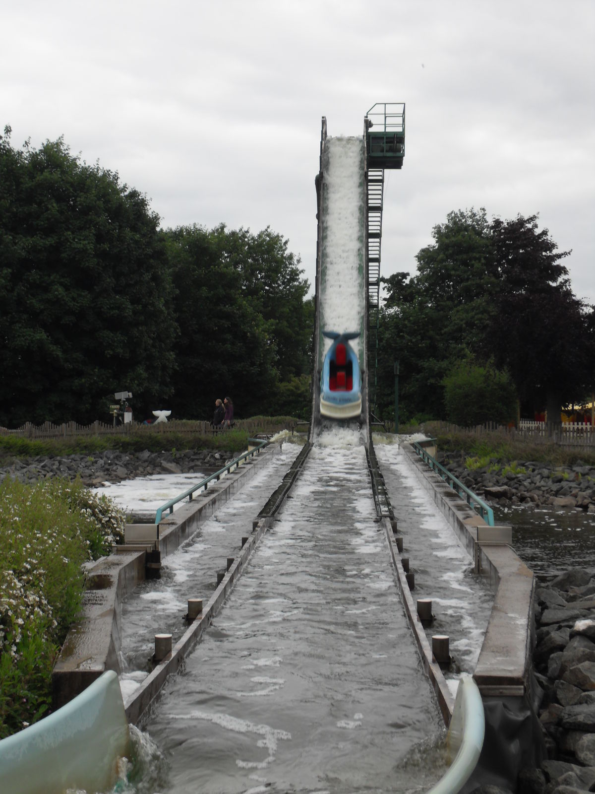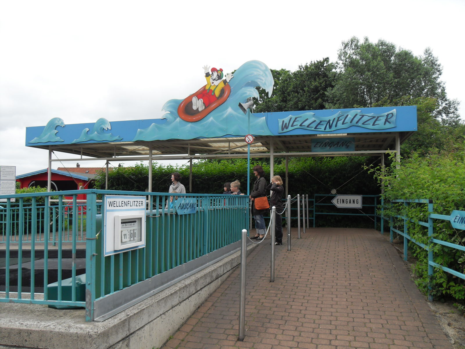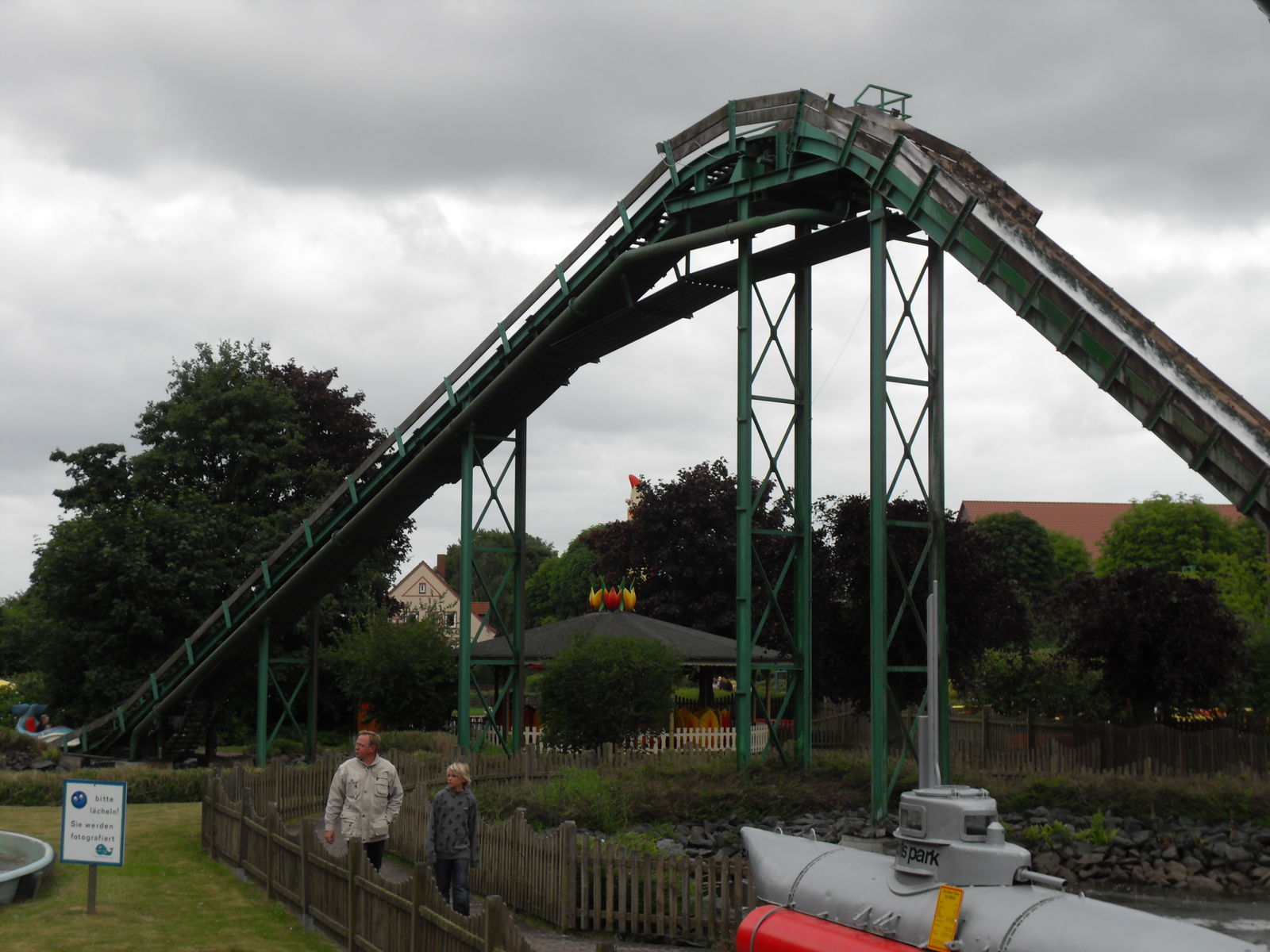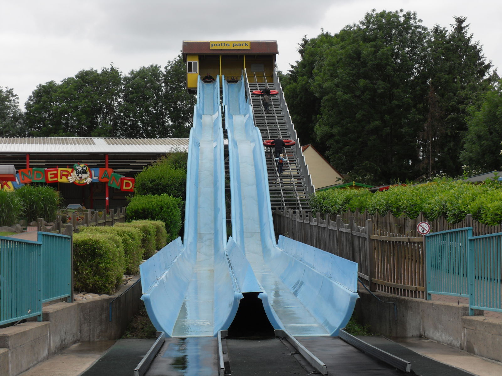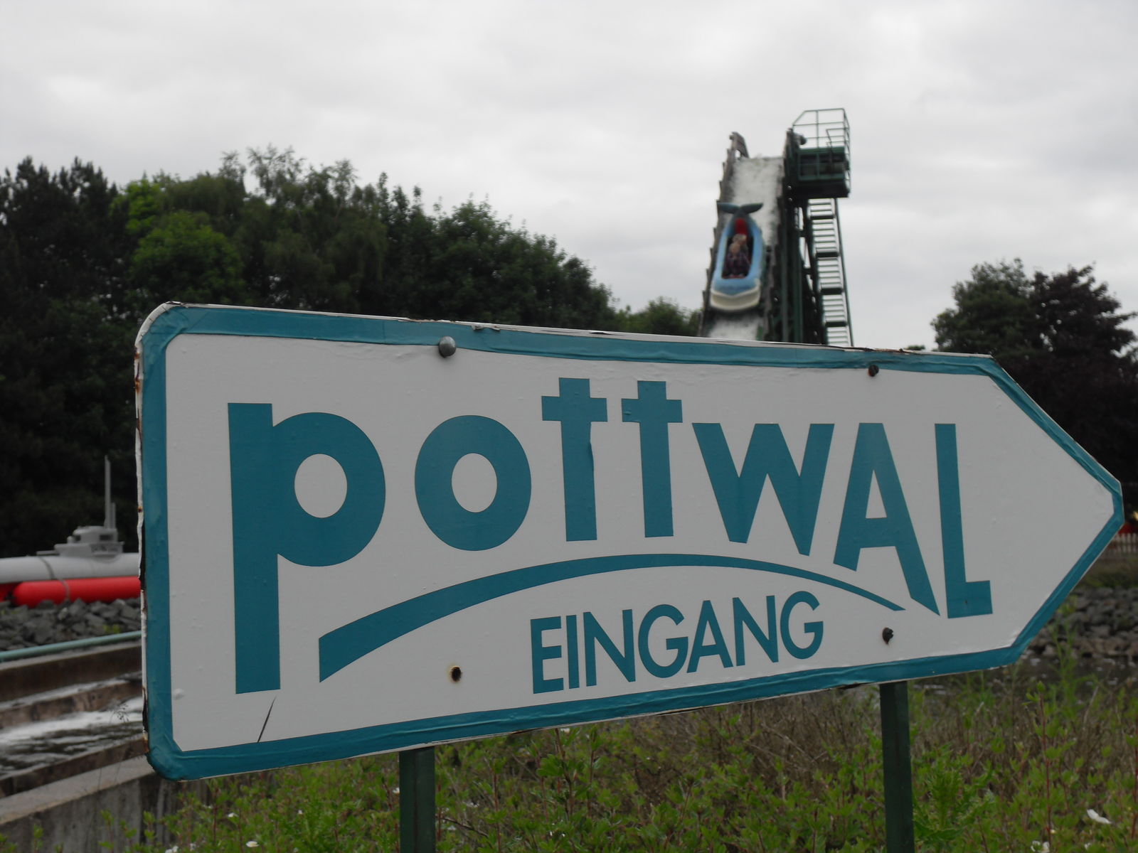 Als nächstes trafen wir auch eine Wasserrutsche. Nachdem wir uns ein paar Fahrten angesehen hatten, entschieden wir uns gegen eine Fahrt, da die Besucher teilweise wirklich komplett durchnässt da wieder ausstiegen. Da das Wetter sehr wechelshaft war an diesem Tag und es viele bewölkte und kältere Abschnitte gab verzichteten wir dankend und widmeten uns lieber dem Potzi Blick.