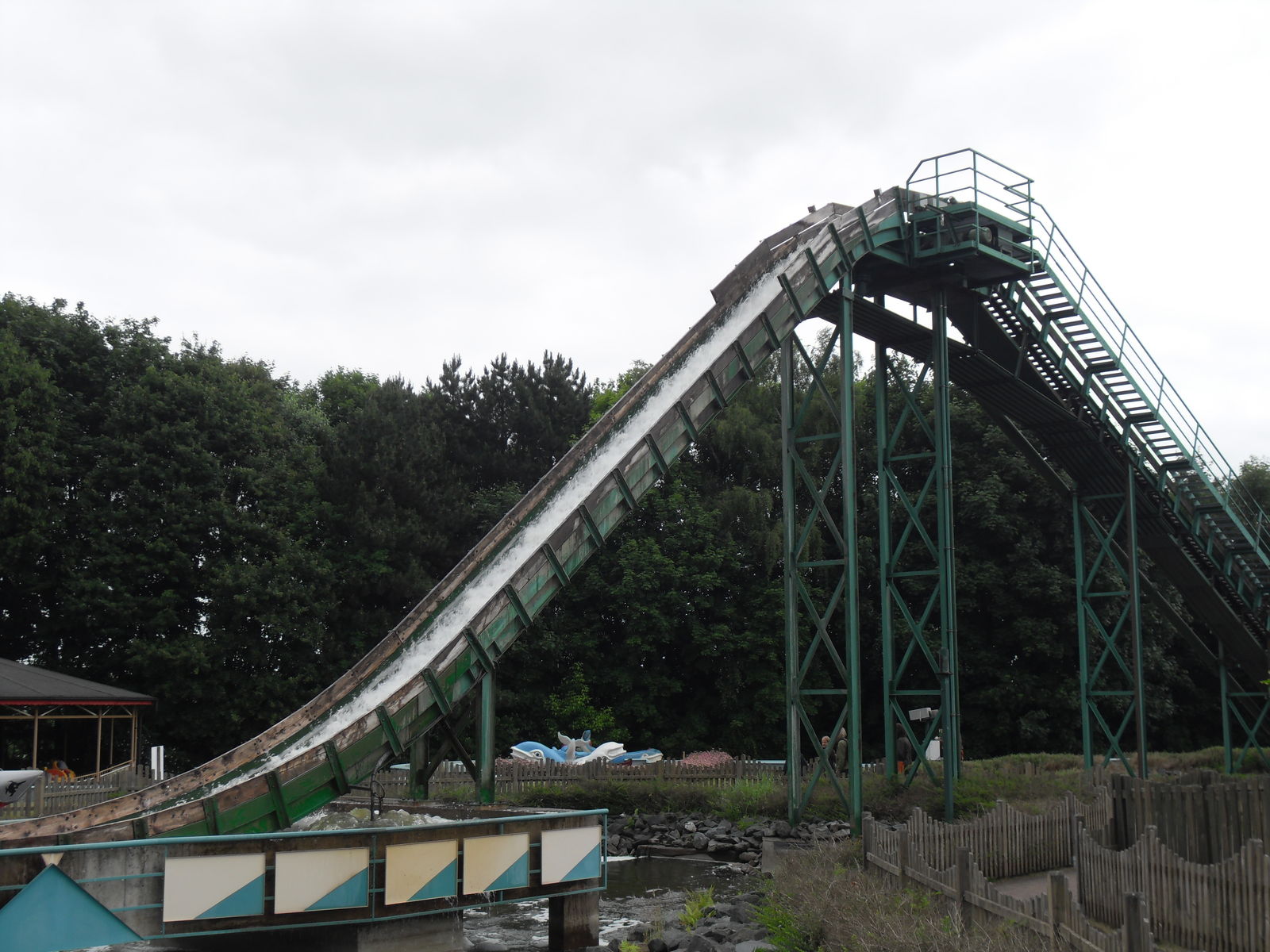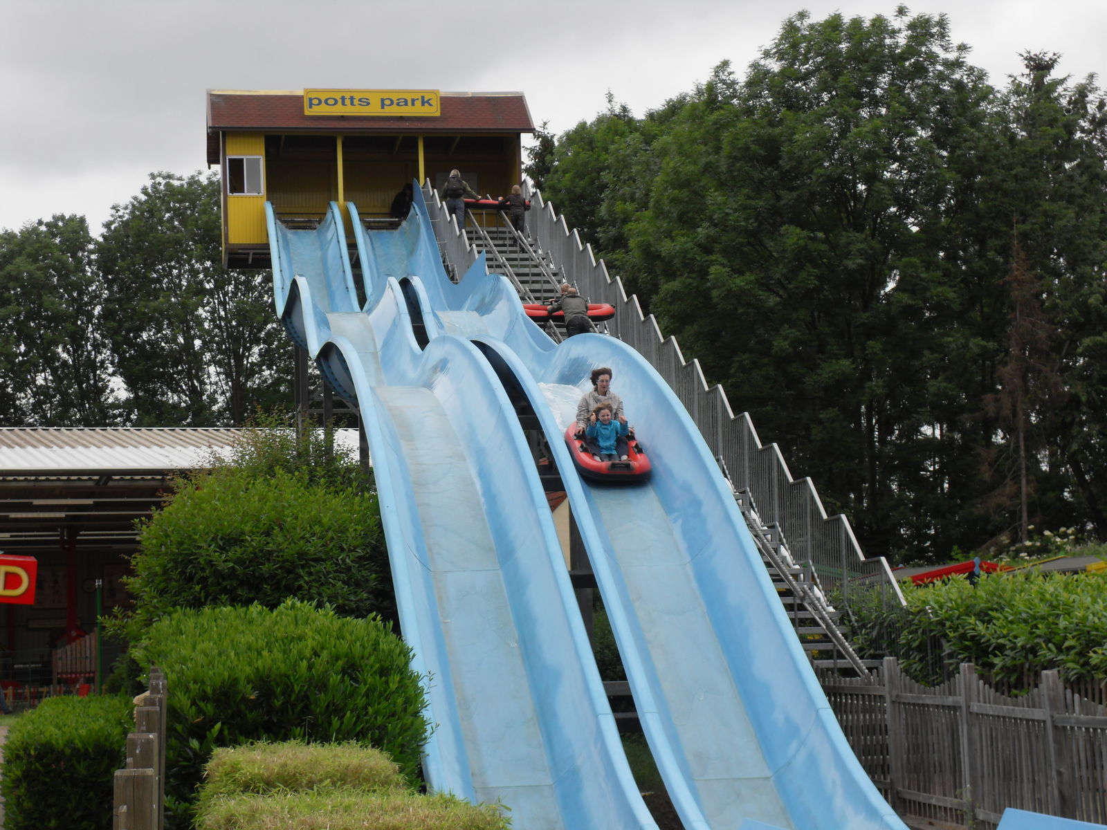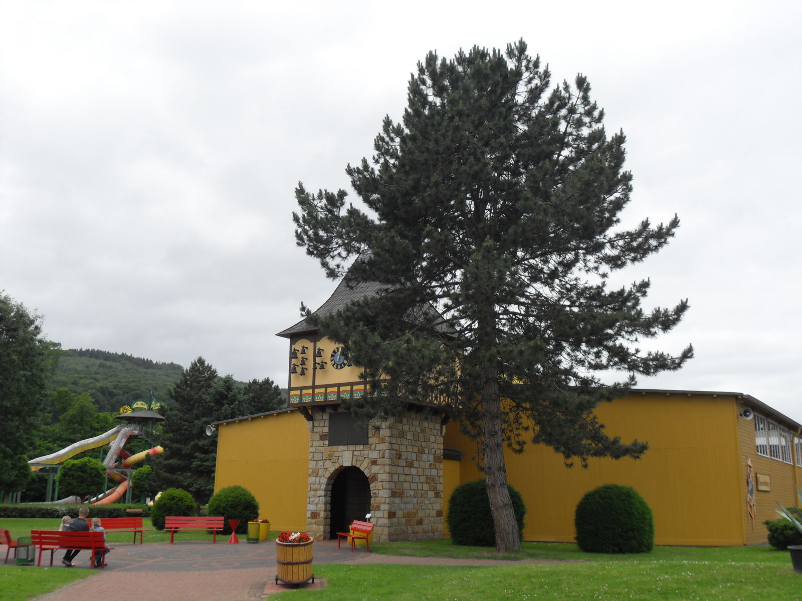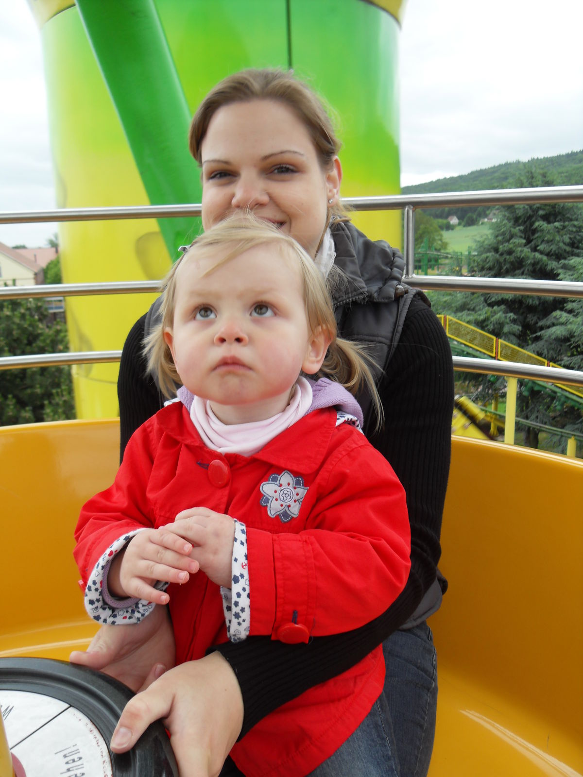 Als nächstes trafen wir auch eine Wasserrutsche. Nachdem wir uns ein paar Fahrten angesehen hatten, entschieden wir uns gegen eine Fahrt, da die Besucher teilweise wirklich komplett durchnässt da wieder ausstiegen. Da das Wetter sehr wechelshaft war an diesem Tag und es viele bewölkte und kältere Abschnitte gab verzichteten wir dankend und widmeten uns lieber dem Potzi Blick.