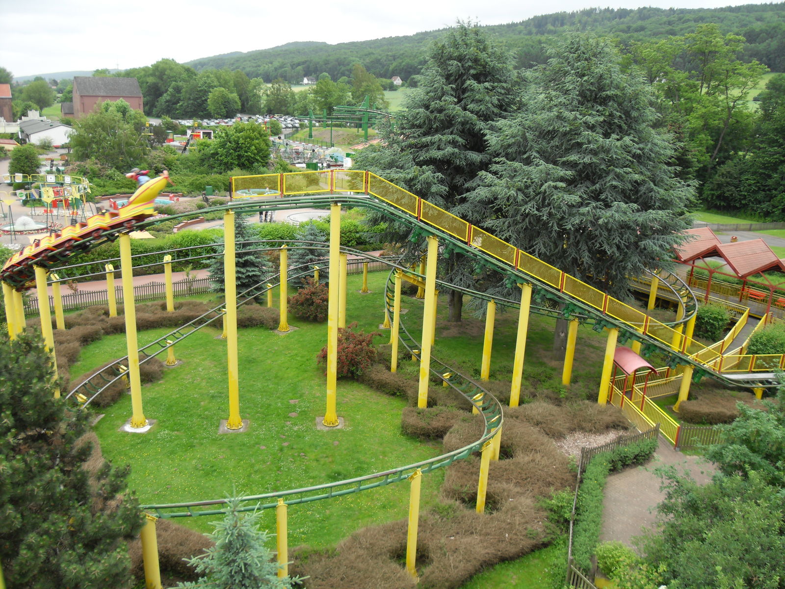 Den nun folgenden Count konnte die Kleine leider nicht mitnehmen, denn hier war sie dann leider doch zu klein. Der Turbo Drachen stand nun auf dem Programm und somit auch die längste Wartezeit des Tages. Ich war sehr gespannt auf diese Coaster Neuheit und wurde nicht enttäuscht. Die hängenden Wagen sind schnell auf der Strecke unterwegs und schauklen in den Kurven schon sehr weit aus. Voll Speed geben und genießen, das Teil macht richtig Spaß!
