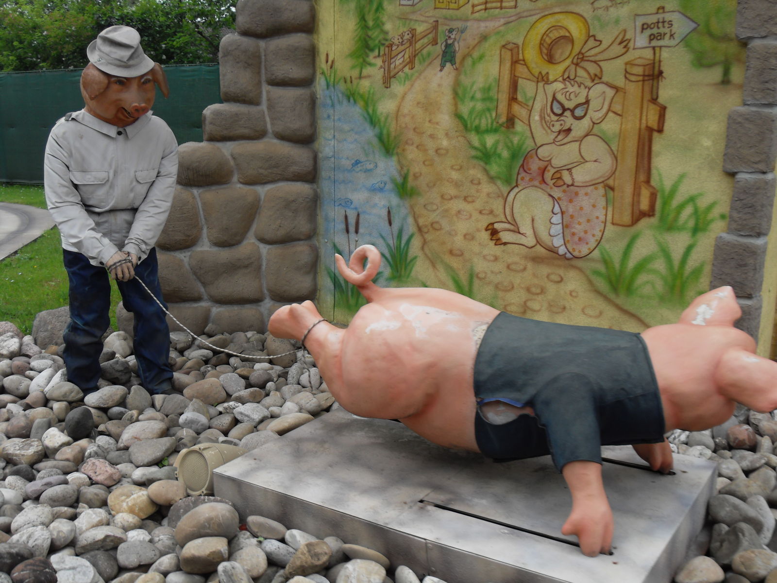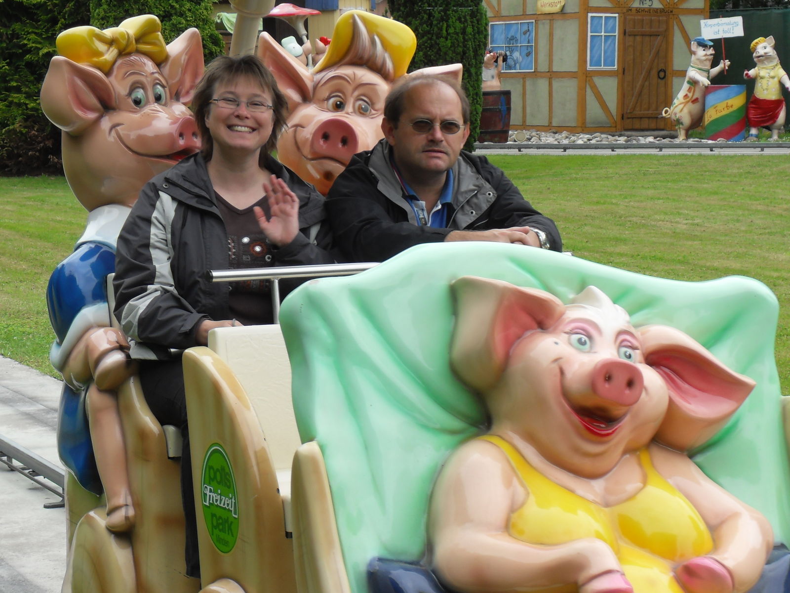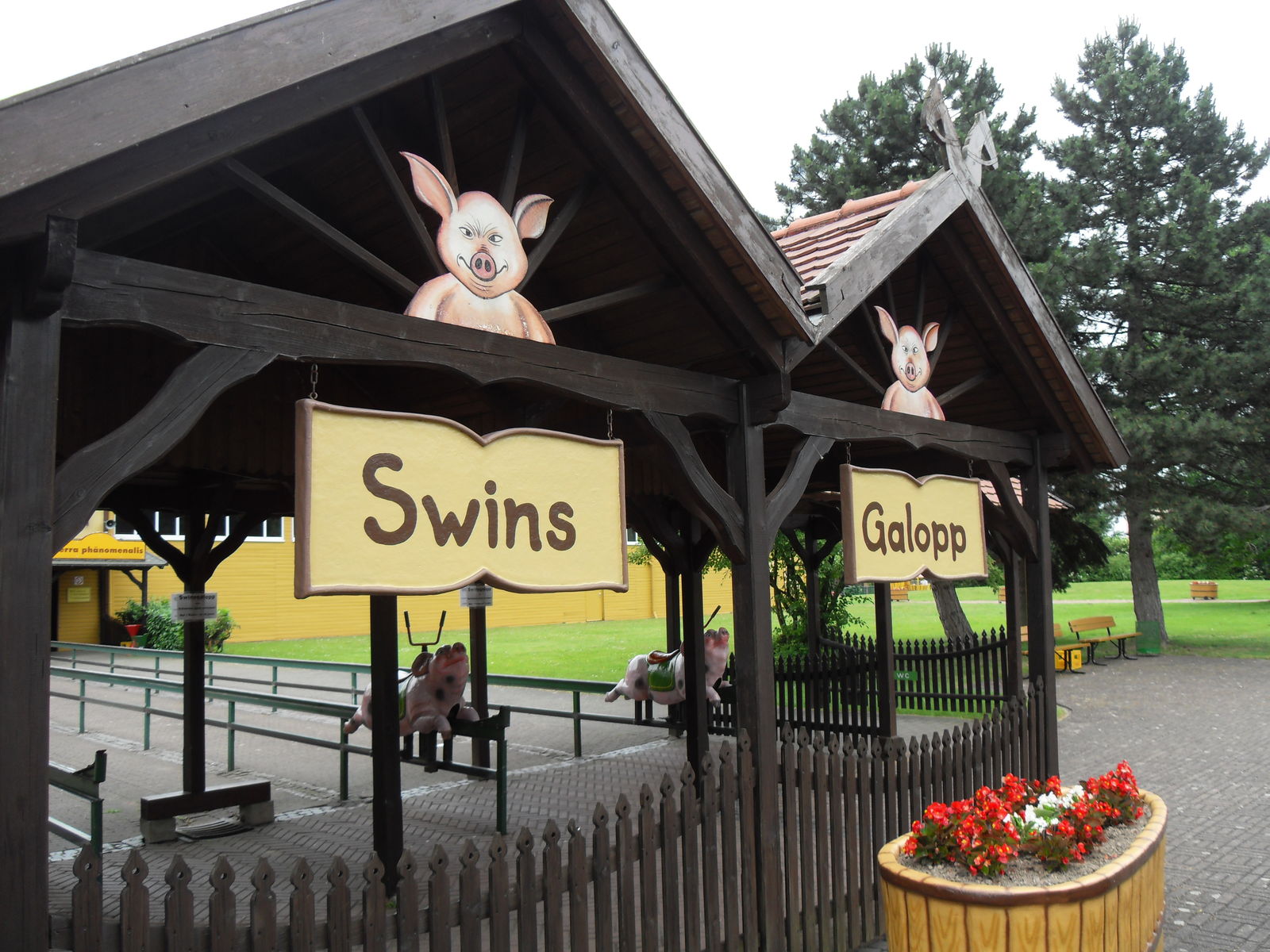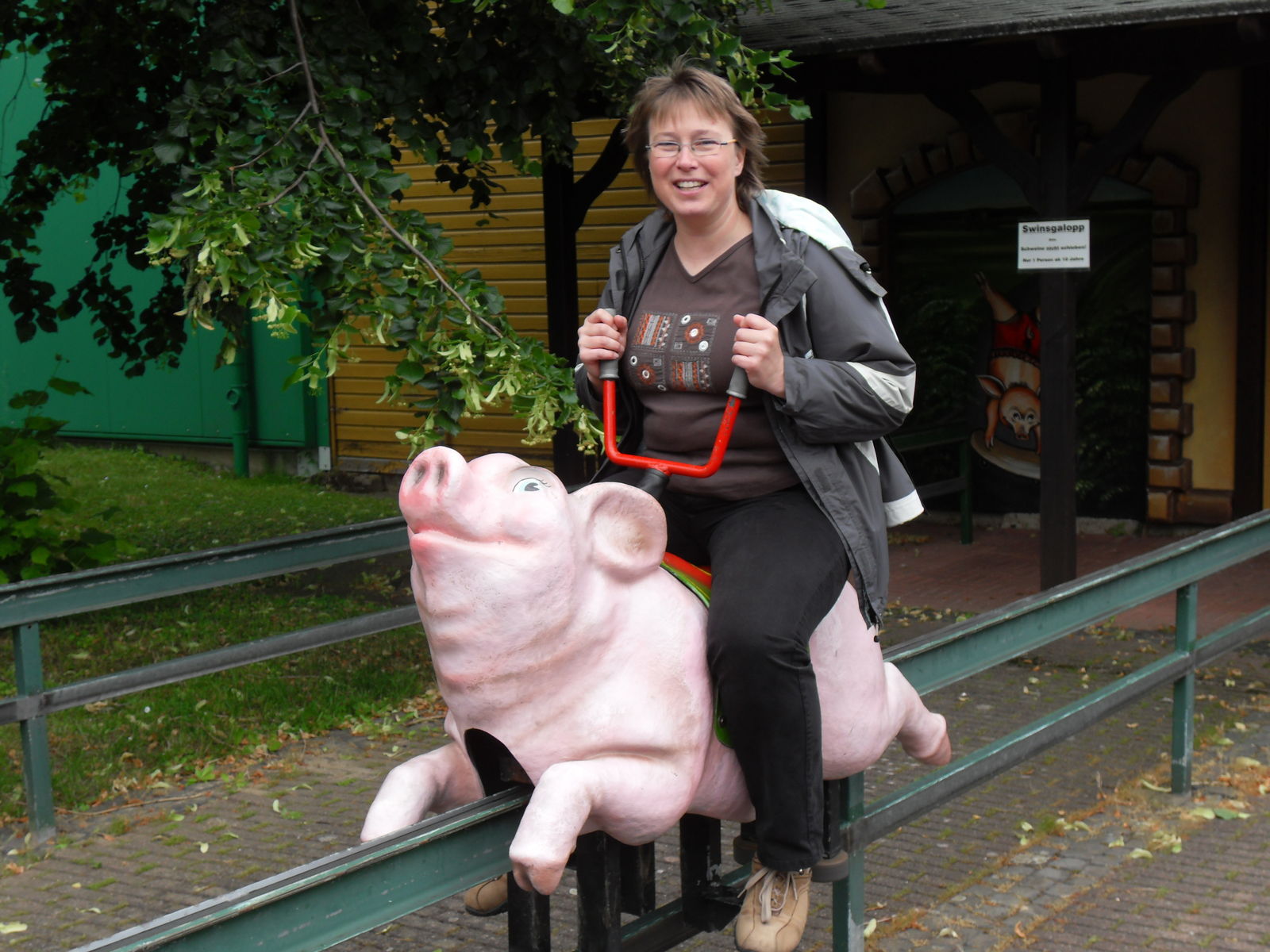 Danach wurde es schweinisch im Potts Park. Als erstes stand nun der "Swins Galopp" auf dem Programm, bei dem man sich mit seinen Freunden ein lustiges Schweinerennen liefern kann. Durch eine ausgeklügelte Hebeltechnik muss man auf einem Schwein sitzend vorwärts kommen um als erstes das Ziel zu erreichen. Sehr lustige Angelegenheit.