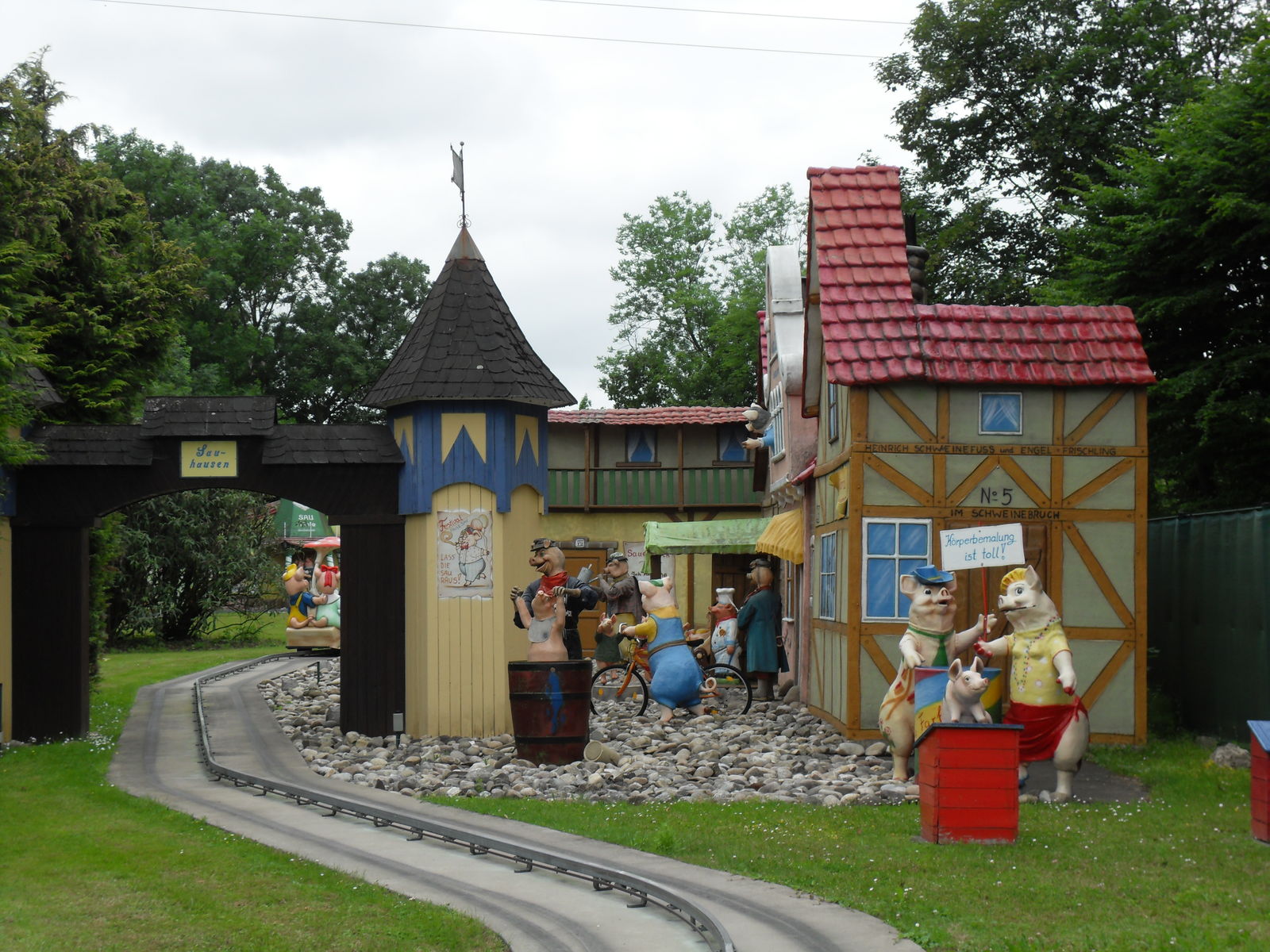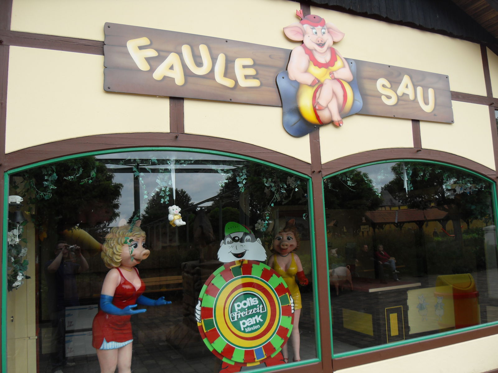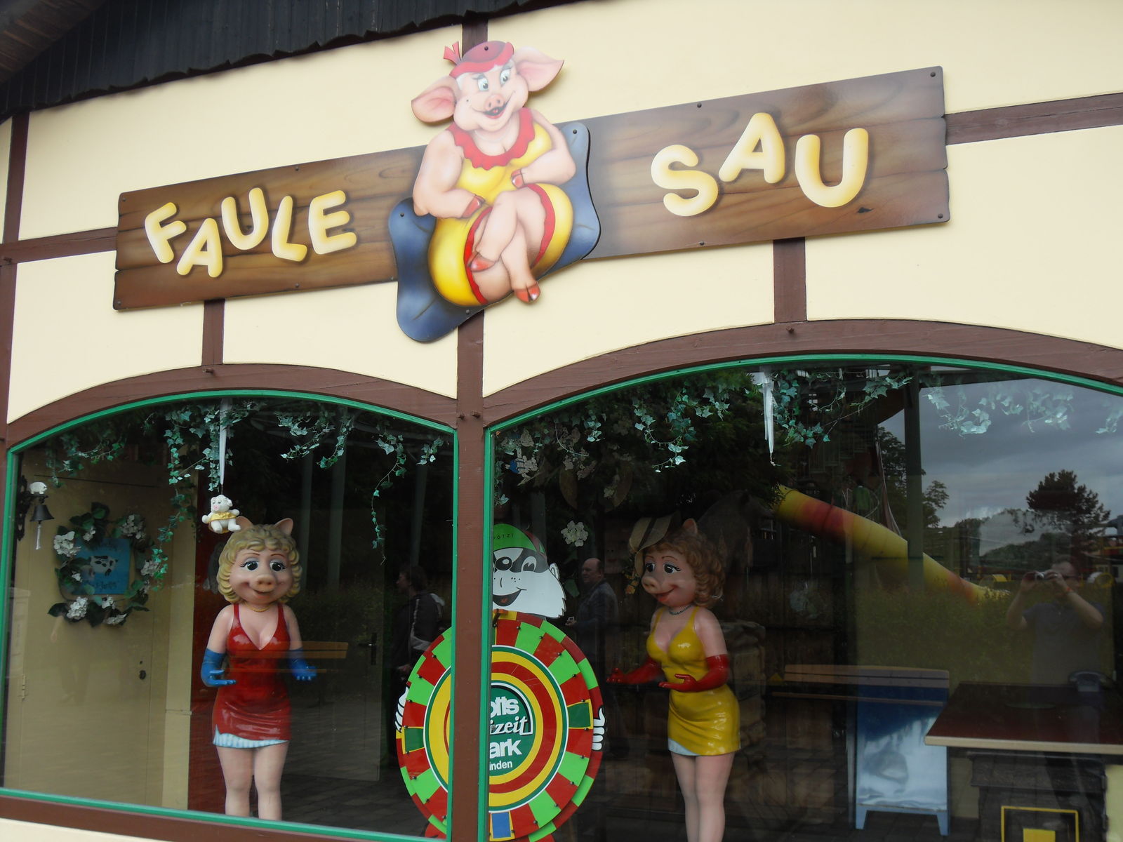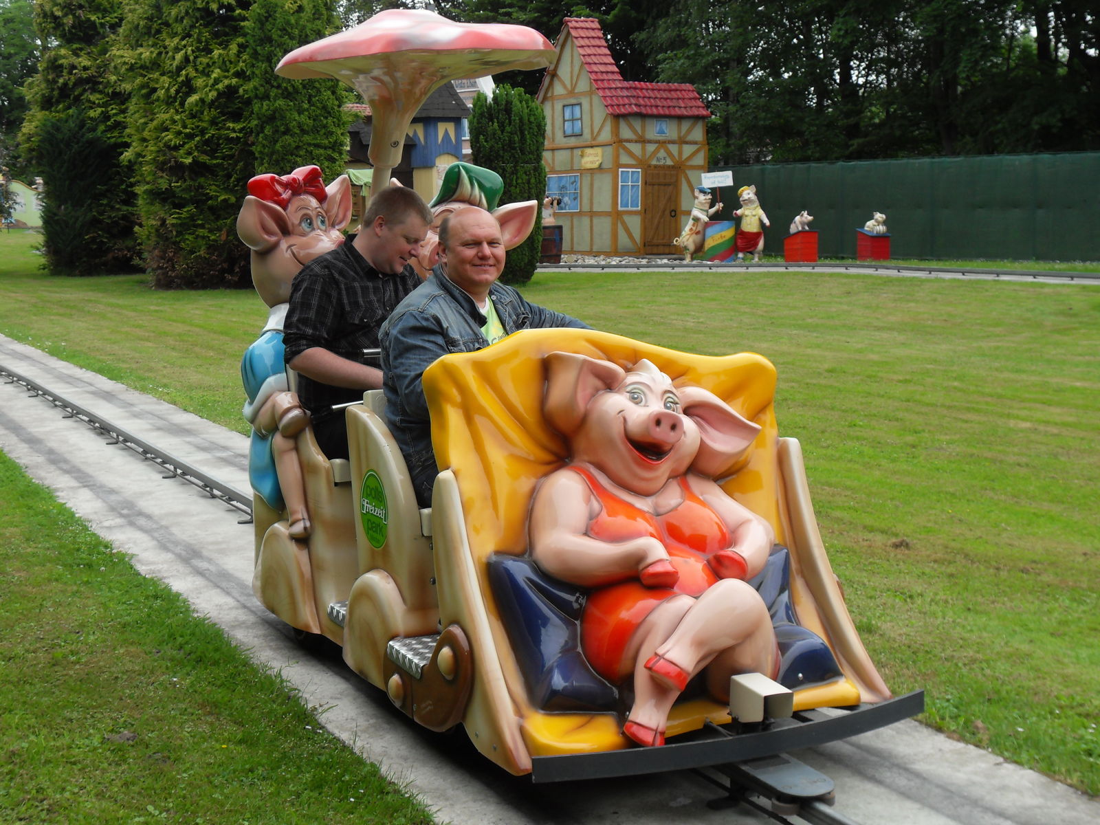 Dann wurde es nicht nur schweinisch sondern richtig versaut. Als nächstes wartete die Outdoor Themfahrt "Faule Sau" auf uns. Nach einem lustigen Eingangsbereich geht es mit Schweinewagen durch ein Dorf voller Schweine und Säue, wo so richtig gefeiert, gefaulenzt und rumgesaut wird. Lustige Idee, die auch sehr gut umgesetzt wurde. Zwischendurch leider etwas Leerlauf, vor allen Dingen im Schlussbereich. Da hätte man noch mehr rausholen können. Aber im großen und ganzen eine lustige kleine Themenfahrt.