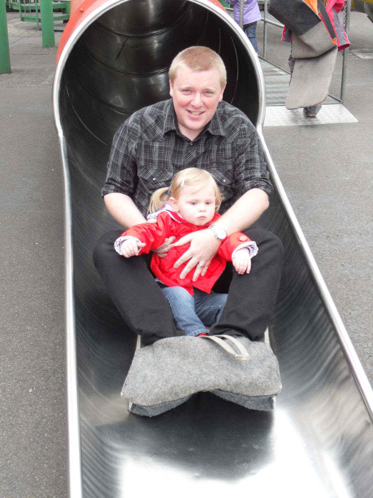 Direkt unter der Moorbottichbahn befand sich ein großer Spielplatz. Der musste natürlich ersteinmal von Mia ausgiebig getest werden. Aber auch die Erwachsenen ließen sich vom Spieltrieb der Kleinen anstecken und tobten sich mal wieder so richtig auf dem Spielplatz aus. Weder Rutsche noch Wippe noch Karussell waren vor uns sicher und wir hatten einen Heidenspaß!