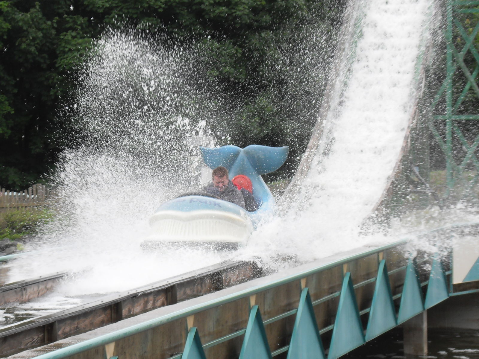 Als nächstes stand die Wildwasserbahn Pottwal auf dem Programm. Mal etwas anderes als die normalen Baumstammrutschen, denn hier wurden die Boote entsprechend thematisiert und zwar als Wal. Sogar Mia durfte mitfahren, im Potts Park waren die Begrenzung ziemlich weit nach unten geschraubt und somit erlebte Mia ihren ersten feucht fröhlichen Water Count. Die Bahn ansich ist unspektakulär, es gibt nur einen Splash, der es bei entsprechender Besetzung des Bootes aber in sich hat.