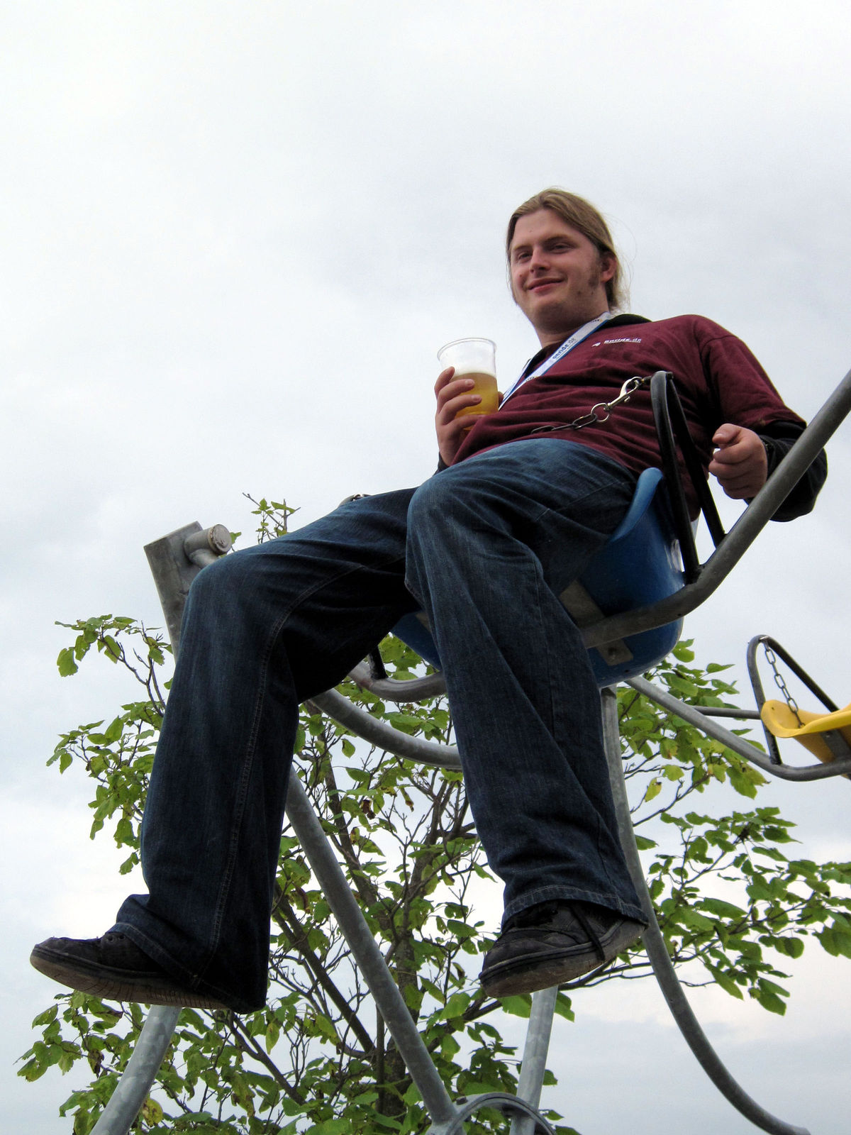 Auf dem Mini-Riesenrad... Man achte auf das volle Bier...
