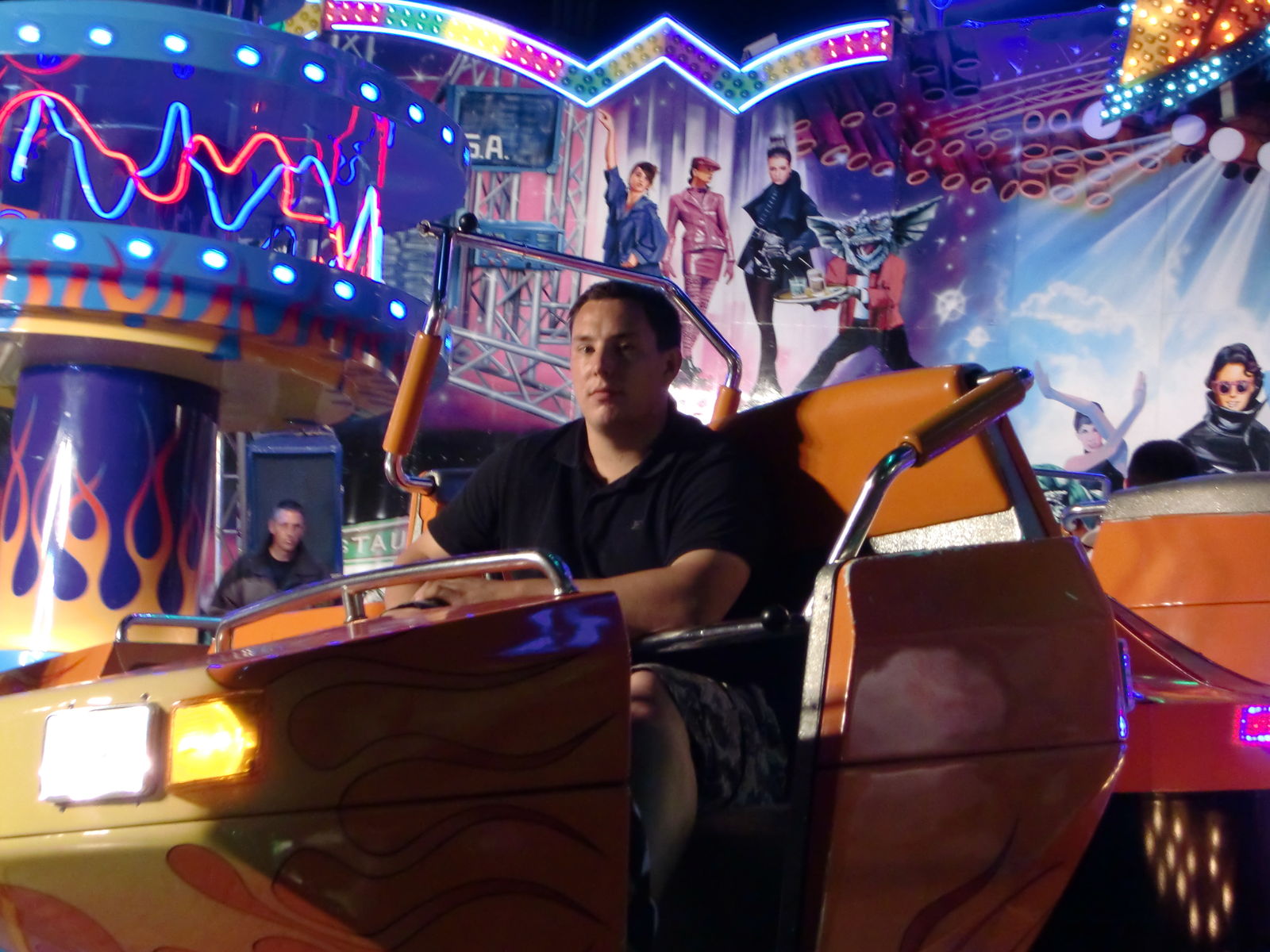 Nun, irgendwann kamen wir am Platz an, den man schon von Weitem anhand des über die Straße drehenden Booster Maxxx erkennen konnte. Parken konnten wir kostenlos auf gewöhnlichen Parkplätzen nicht weit vom Platz bzw. der Kirmesstraße. Die ganzen Geschäfte reihten sich nämlich entlang einer Straße und das ziemlich im Inneren der Stadt parallel zu einer viel befahrenen Straße.