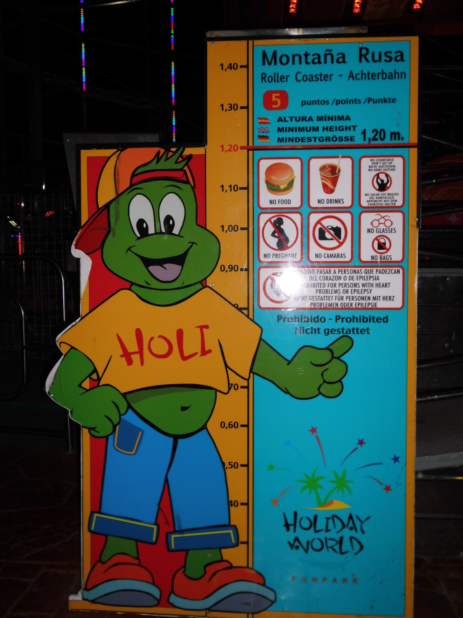 in den letzten zwei Wochen war ich auf Gran Canaria im Urlaub. Unser Hotel war in Maspalomas, das liegt ganz im Süden der Insel, und war in der "nähe" vom Holiday World "Freizeitpark". Der Eintritt in den Park war kostenlos aber um mit den Bahnen zu fahren musste man sich Punkte kaufen. Für 10€ gab es 25 Punkte. Eine Fahrt mit dem Riesenrad kostete 4 Punkte, mit Centrox 5 Punkte (weiß leider nicht wie sich die art Fahrgeschäft nennt), und die Achterbahn ebenfalls 5 Punkte.