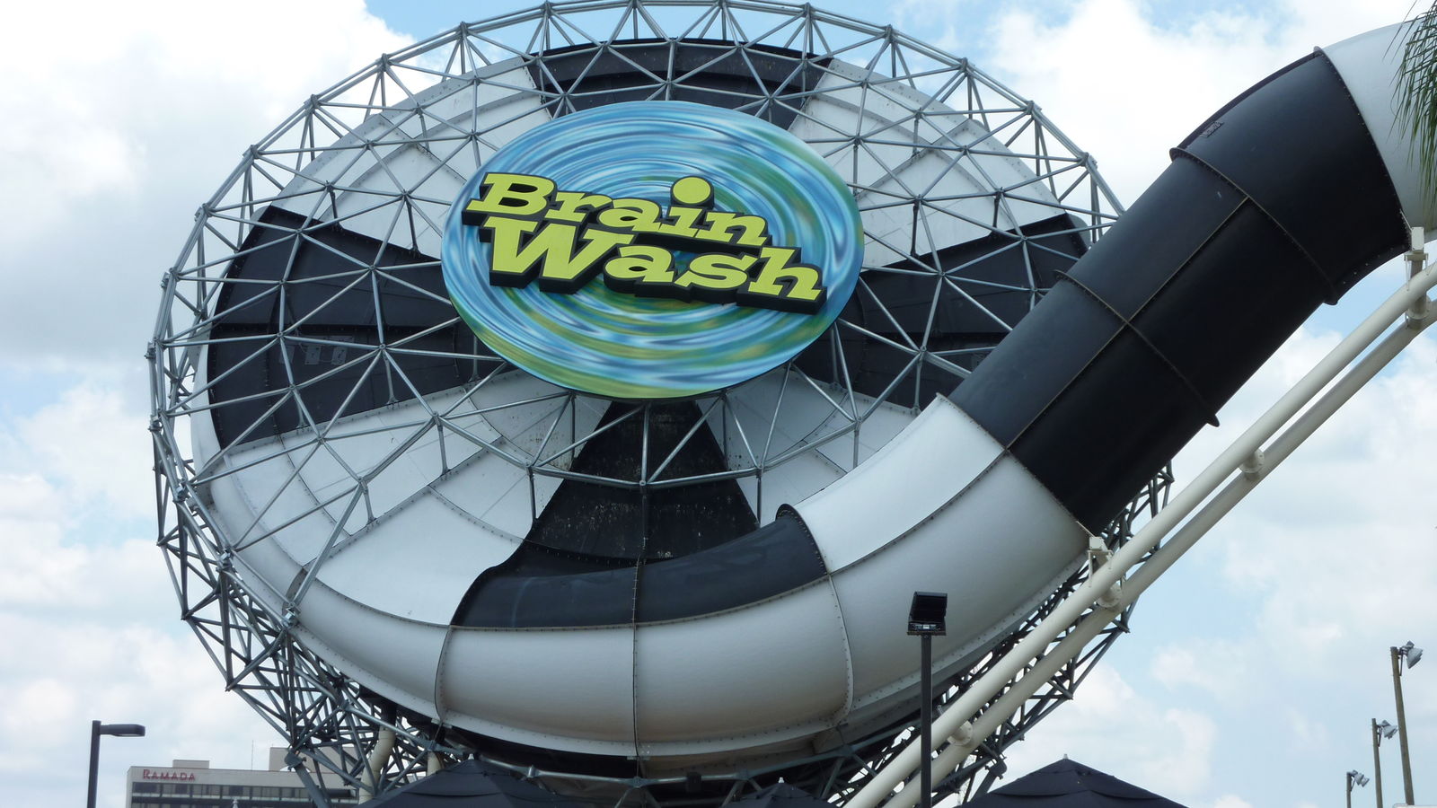 Brain Wash: komplett verdunkelt. Man hat kein Gefühl für Rutschrichtung, Geschwindigkeit oder Höhe. Ist allerdings nur beim ersten Mal wirklich spektakulär.