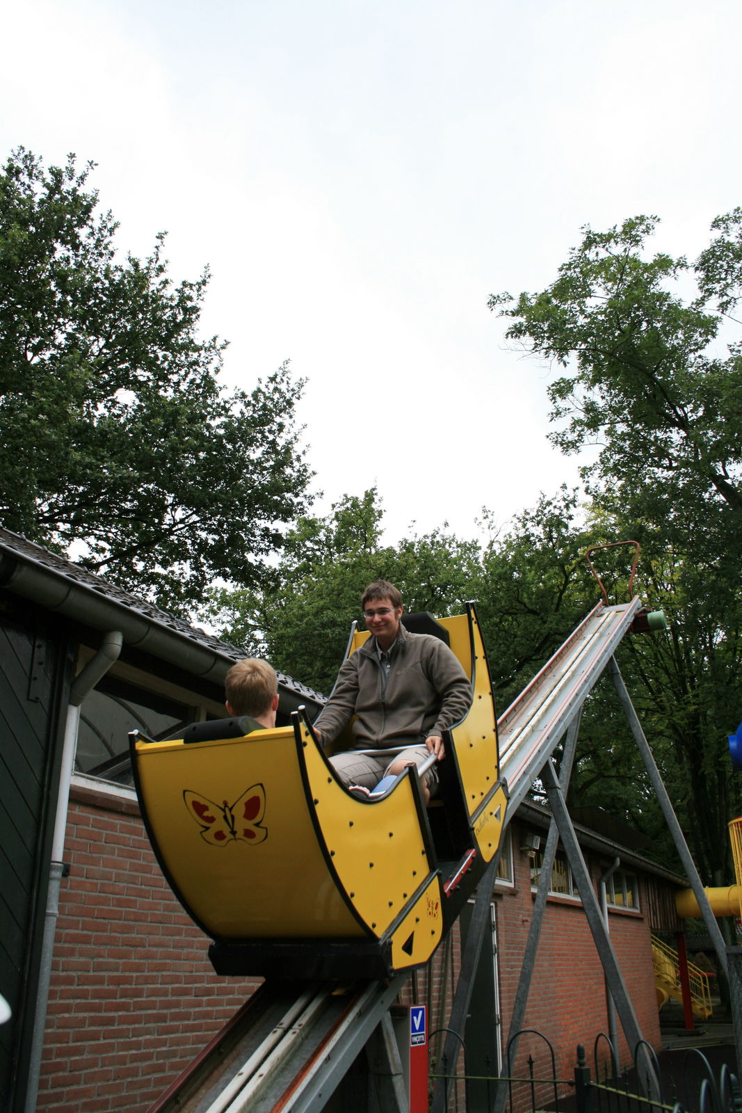 Nach unserem besuch im Familiepretpark De Waarbeek kammen wir zum Hoge Boekel Speelpark.Dort wurden wir von dem Freundlichen Parkbesitzer begrüßt.Er wußte sofort das wir nur wegen seinem Butterfly da waren.Nach seiner Begrüßung ging es dann in seinem kleinen sehr schönen gepflegten Park hinein.Schade das das Wetter leider nicht mitgespielt hat,aber trozdem ließen wir uns nicht davon abhalten etwas spaß in dem Park zu verbringen.
