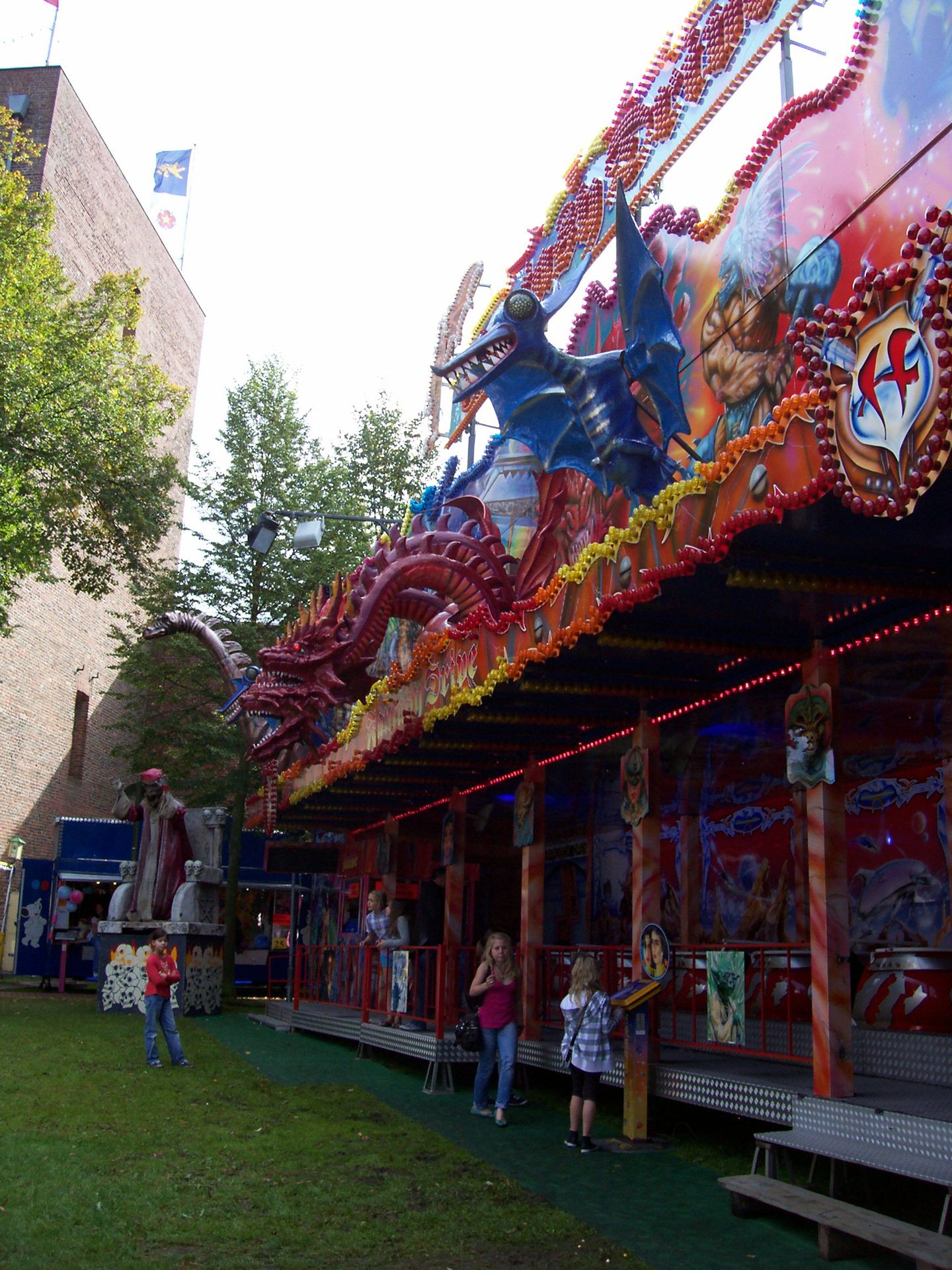 Gerstern habe ich mir zum ersten mal die Burgkirmes in Erkelenz angesehen. Die Kirmes befindet sich auf mehreren kleinen Plätzen die wie der Name schon sagt um eine Burg angeordnet sind. Auf den ersten Platz gab es dann zunächst auf der linken Seite die Achterbahn High Explosive zu sehen.
