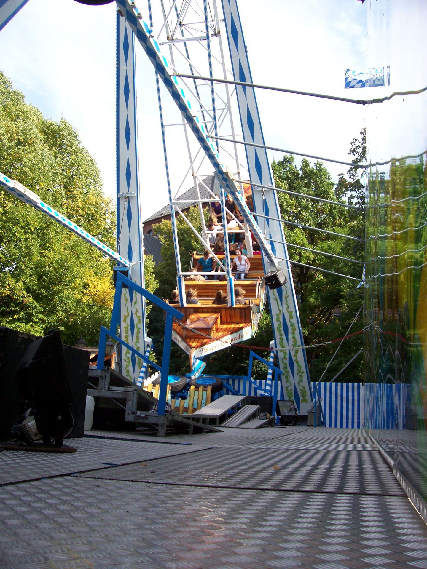 Wenn man nun wie auf diesem Kirmesplatz die Möglichkeit hat um die Bahn herum zu gehen bekommt man schließlich auch etwas von der eigentlichen Achterbahn zu sehen.