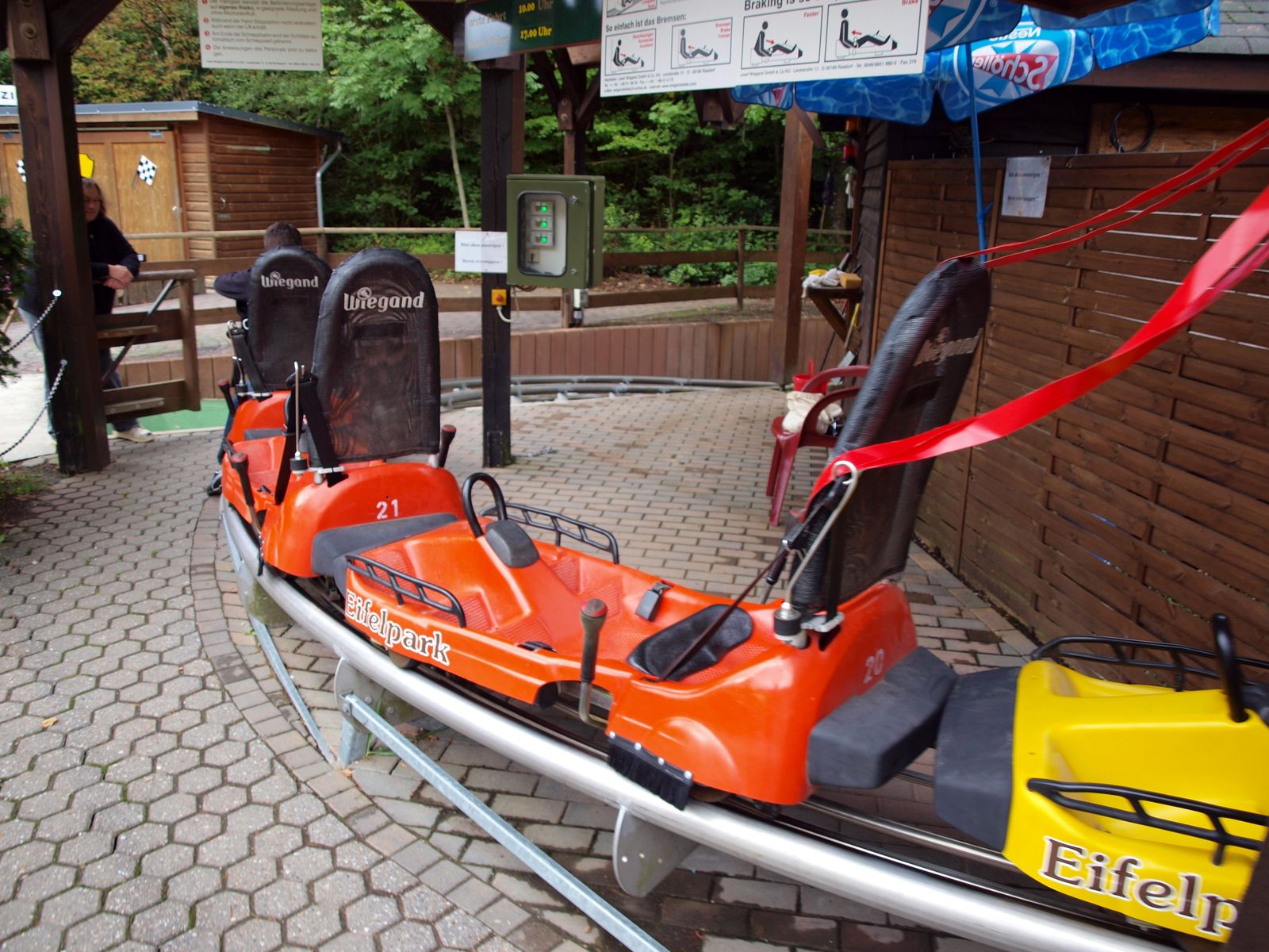 Pünktlich um 8 sind wir los und waren dann auch genau nach Zeitplan um 10 im Eifel Park. Wir waren so ziemlich die einzigen Besucher im Park und mussten uns erstmal Mitarbeiter suchen die uns die Bahnen auf machen. Besagte Mitarbeiter waren aber alle sehr freundlich und haben uns auch bereitwillig alles auf gemacht.