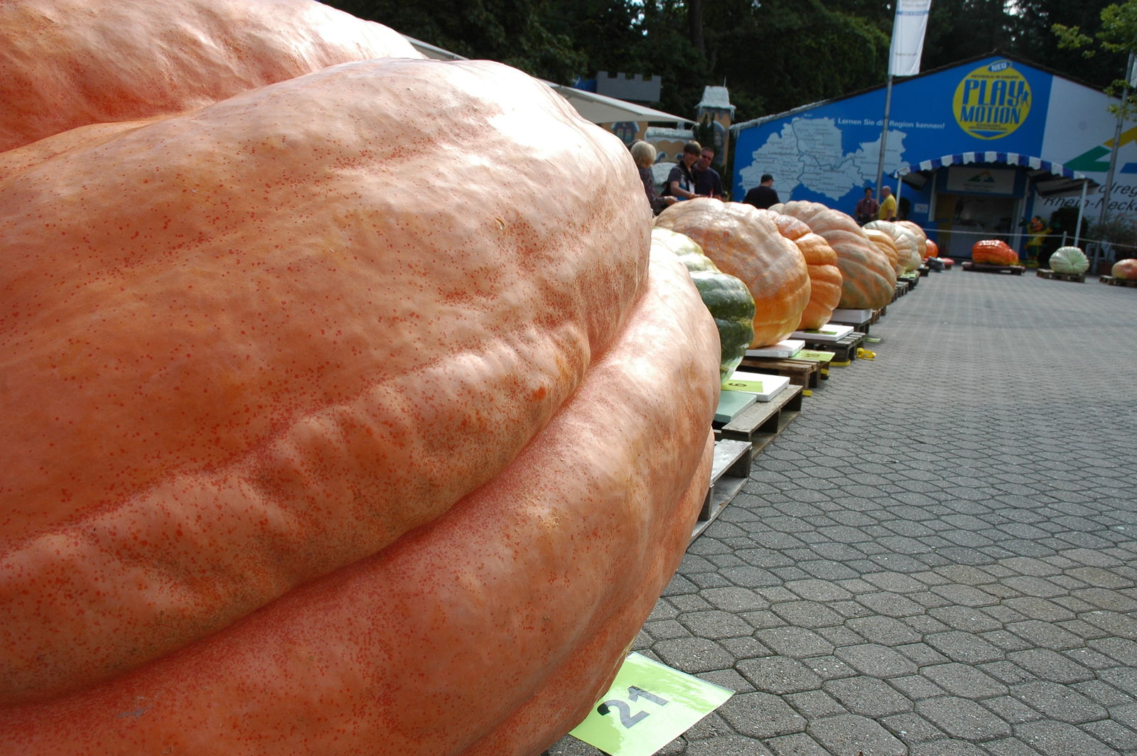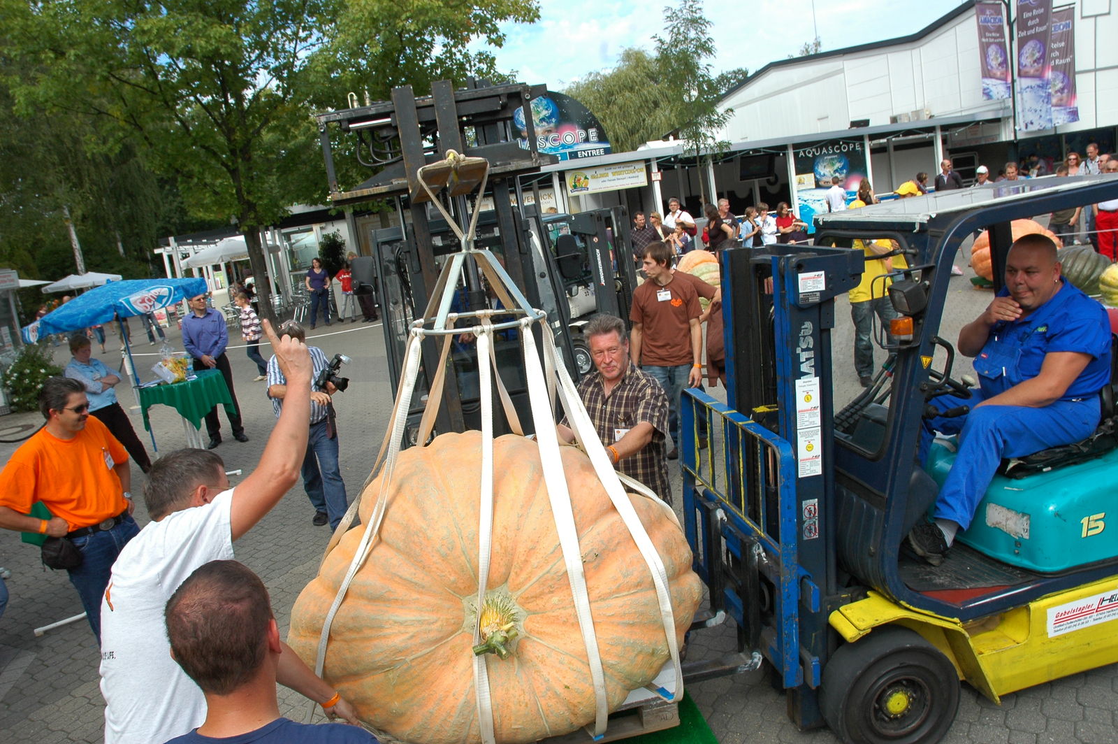 23 Riesenkürbiszüchter kämpften bei den „2. Internationale Meisterschaften im Kürbiswiegen“ im Holiday Park um Kilos, Ruhm und Ehre